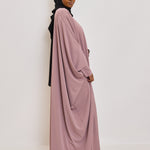 The Manar abaya is a classic and timeless abaya, with its high-end Medina silk material and its butterfly cut and front zip to facilitate breastfeeding.