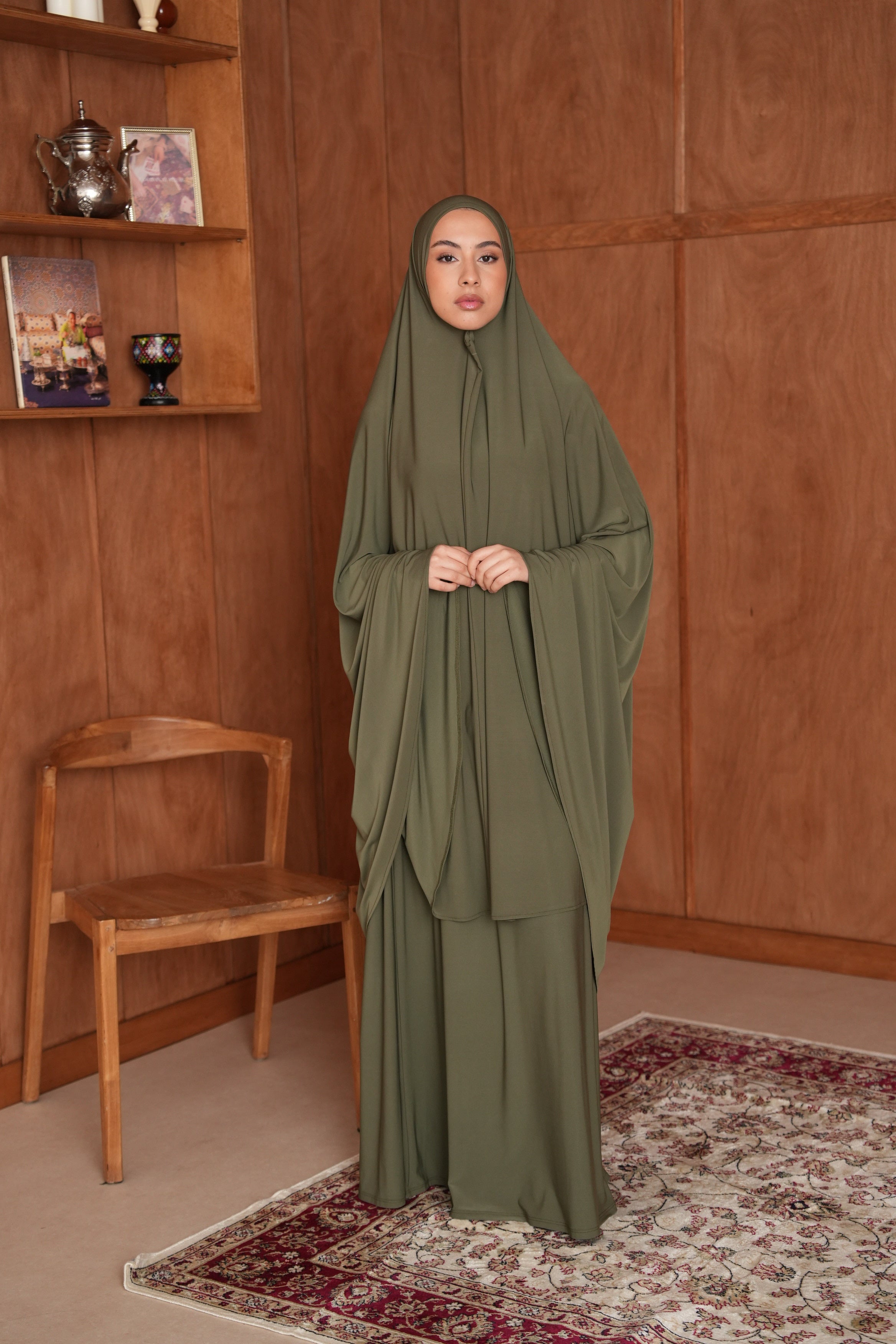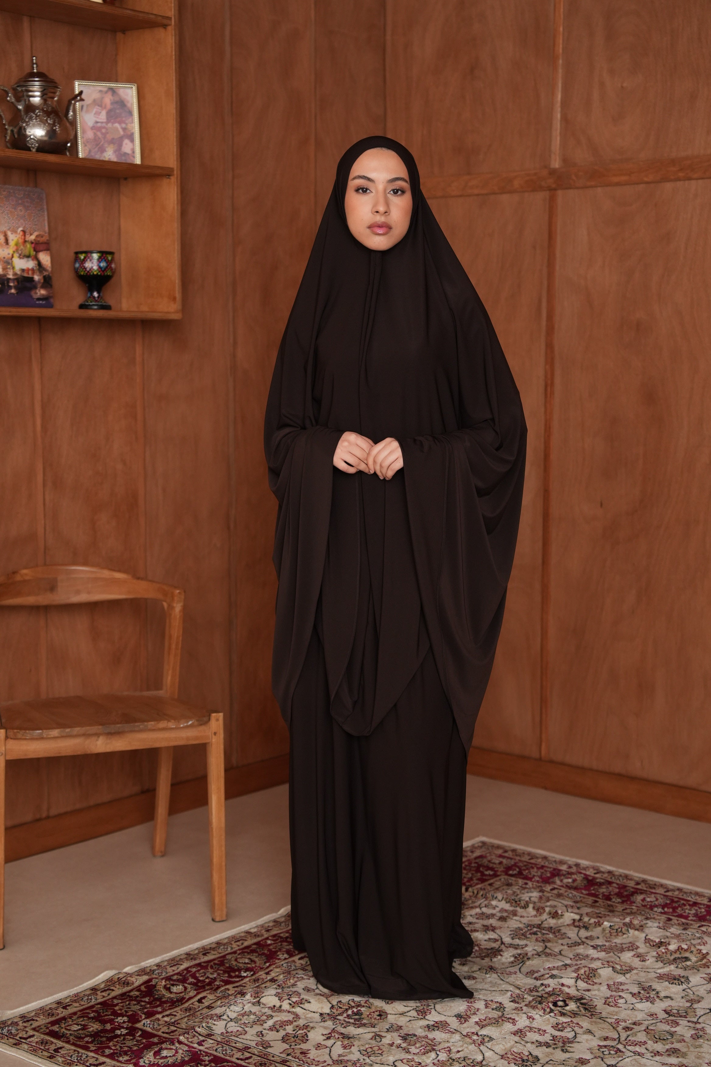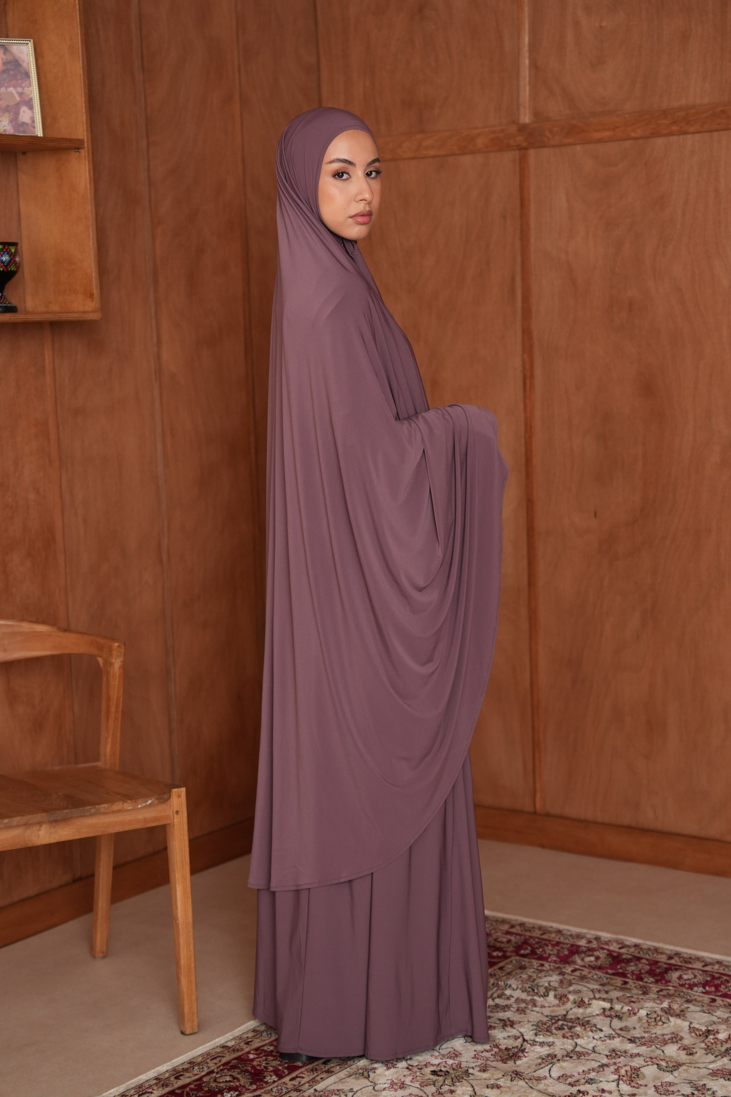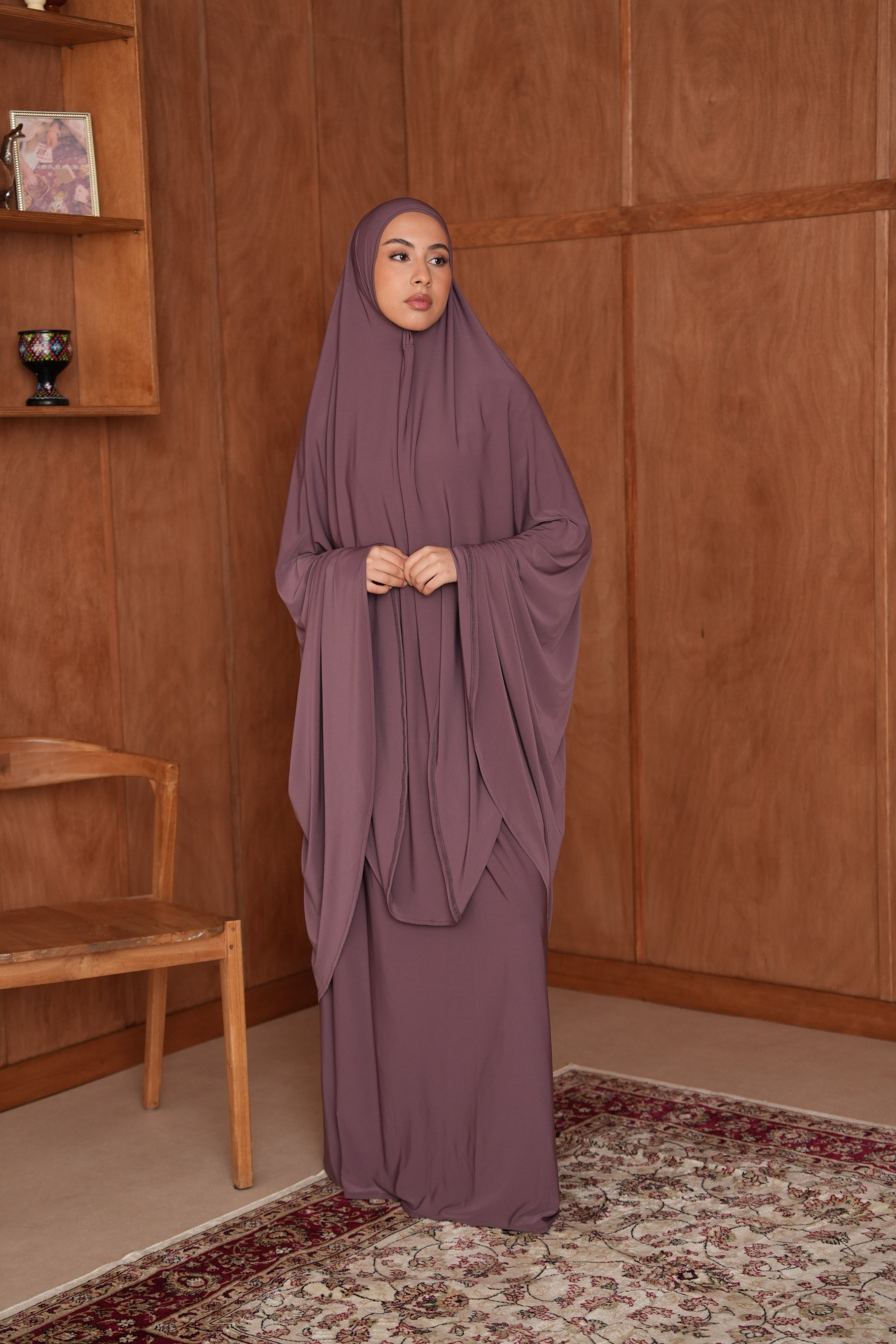 L’ensemble de prière Iman allie confort et élégance pour vos moments de recueillement. Conçu dans un tissu doux et léger, il offre liberté de mouvement et respirabilité, tout en assurant une coupe modeste.