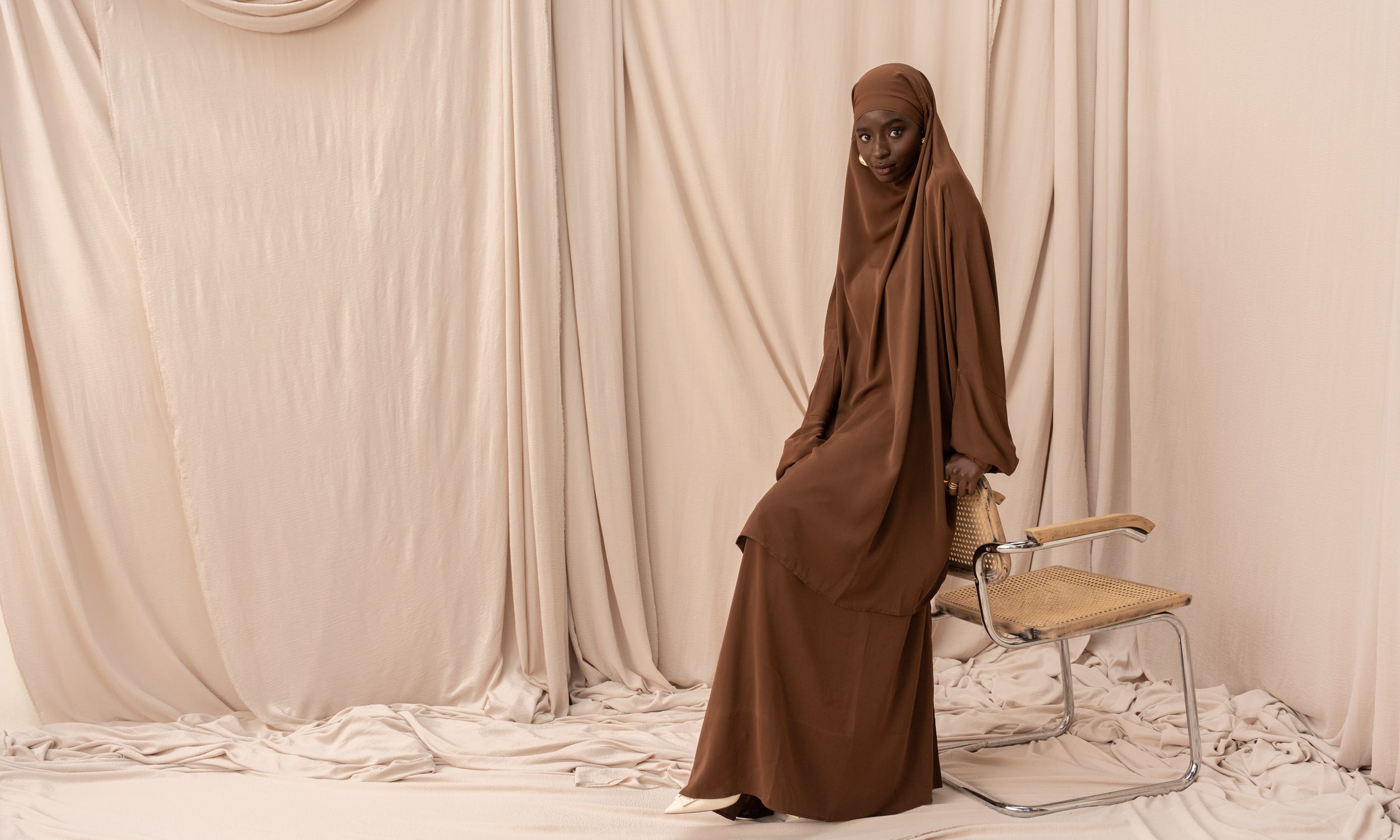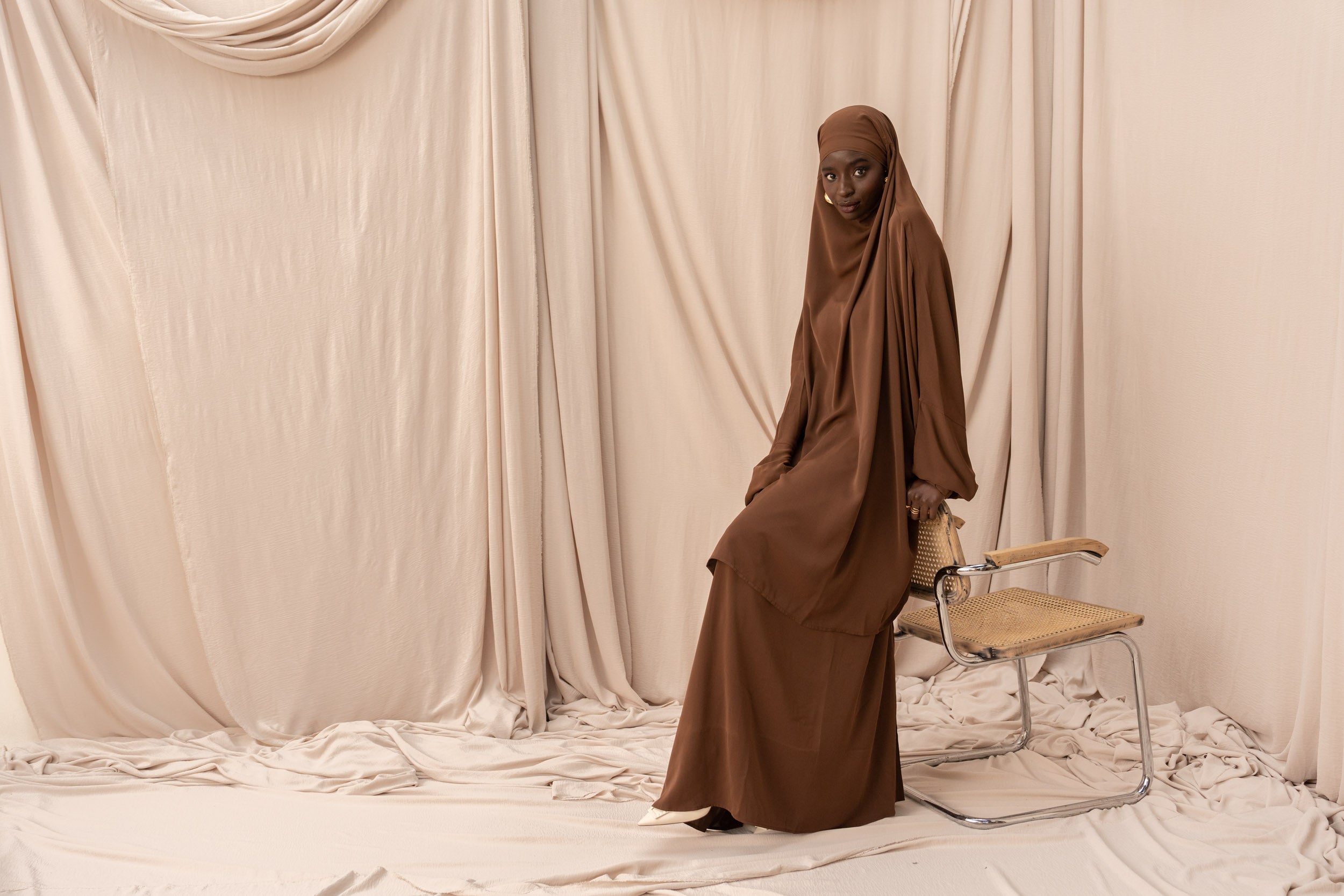 Créée en 2015 dans notre petit atelier en France, Veijab est née de notre passion pour la mode et la confection. Mon mari, coupeur, et moi, créatrice, avons décidé de lancer une marque modeste en utilisant notre propre savoir-faire. Nous étions déterminés à créer des vêtements haut de gamme avec les meilleurs tissus du marché. Nous avons importé des tissus de toute l'Europe, toujours à la recherche de la meilleure qualité pour offrir une fluidité et un confort irréprochables.