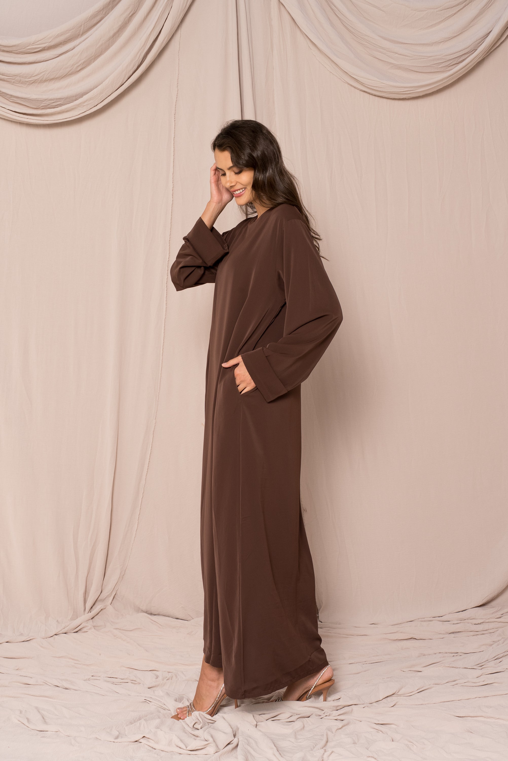 Découvrez notre Abaya Amra, une abaya droite confectionnée en soie de Médine premium, reconnue pour son tombé fluide, son opacité parfaite et son toucher doux. Sa coupe droite, minimaliste et moderne en fait une pièce incontournable pour les femmes recherchant une tenue élégante, pratique et facile à porter au quotidien.