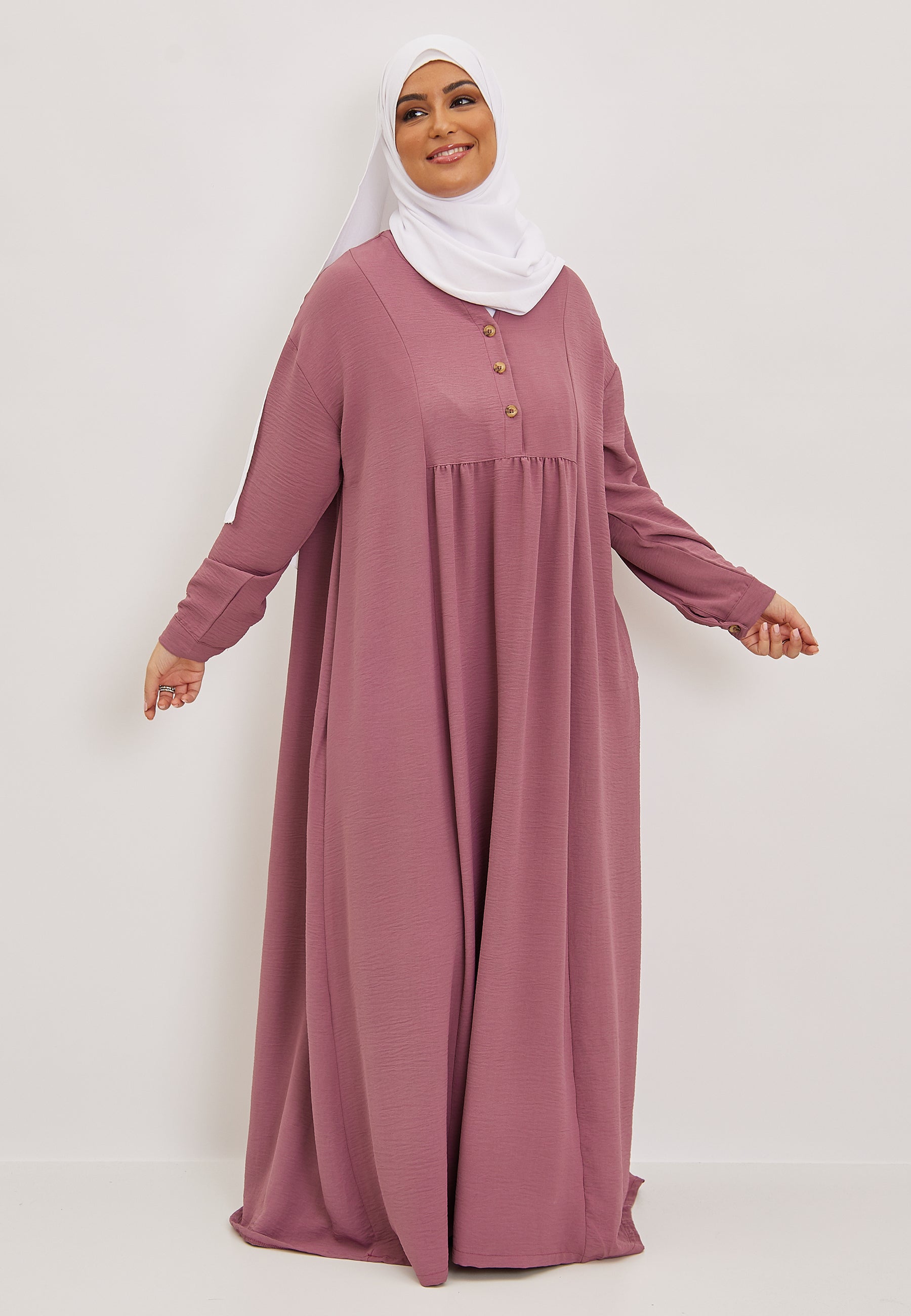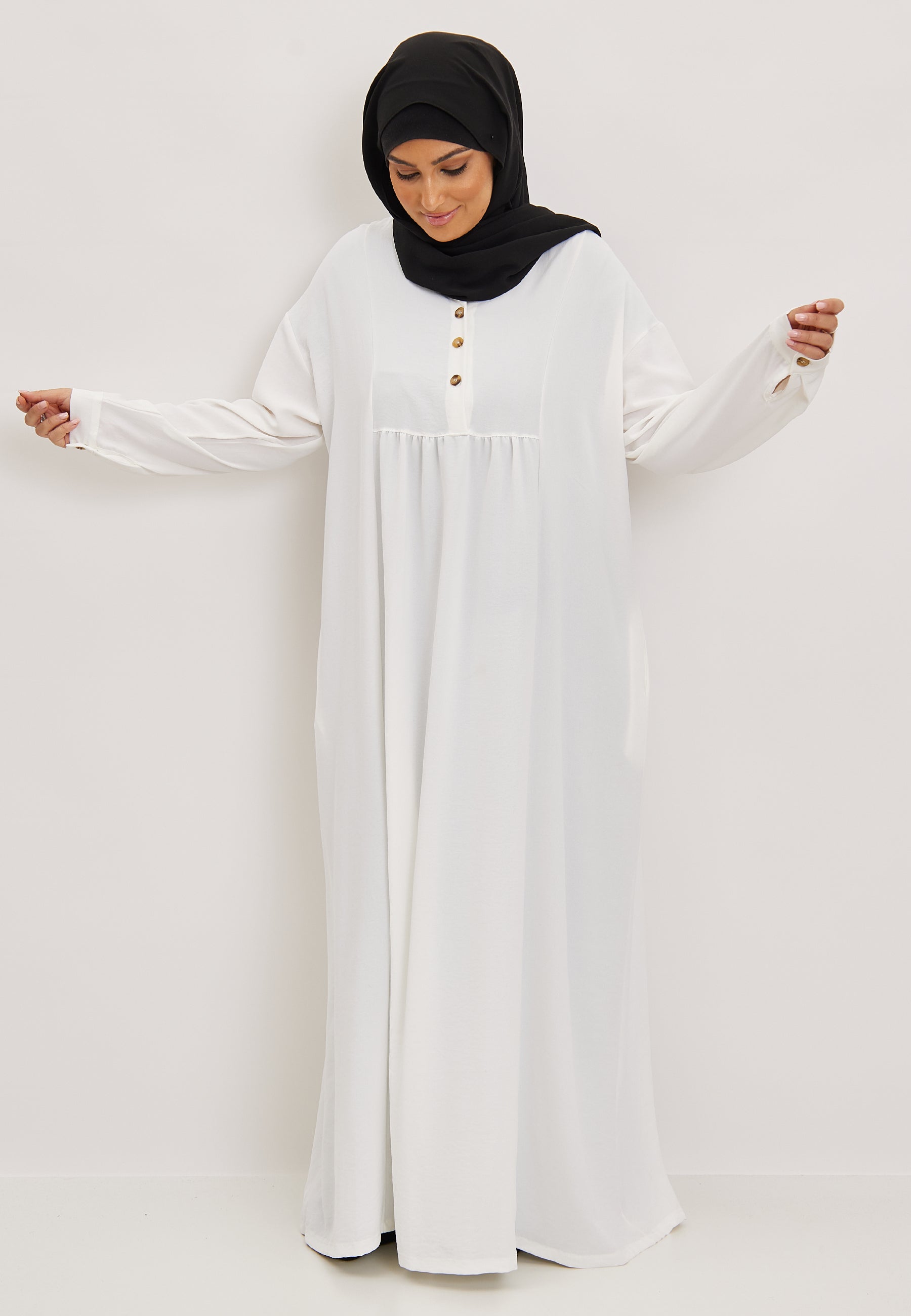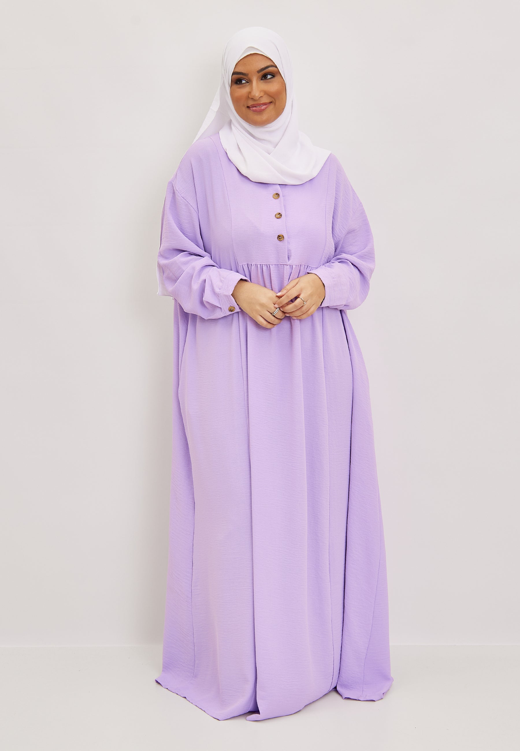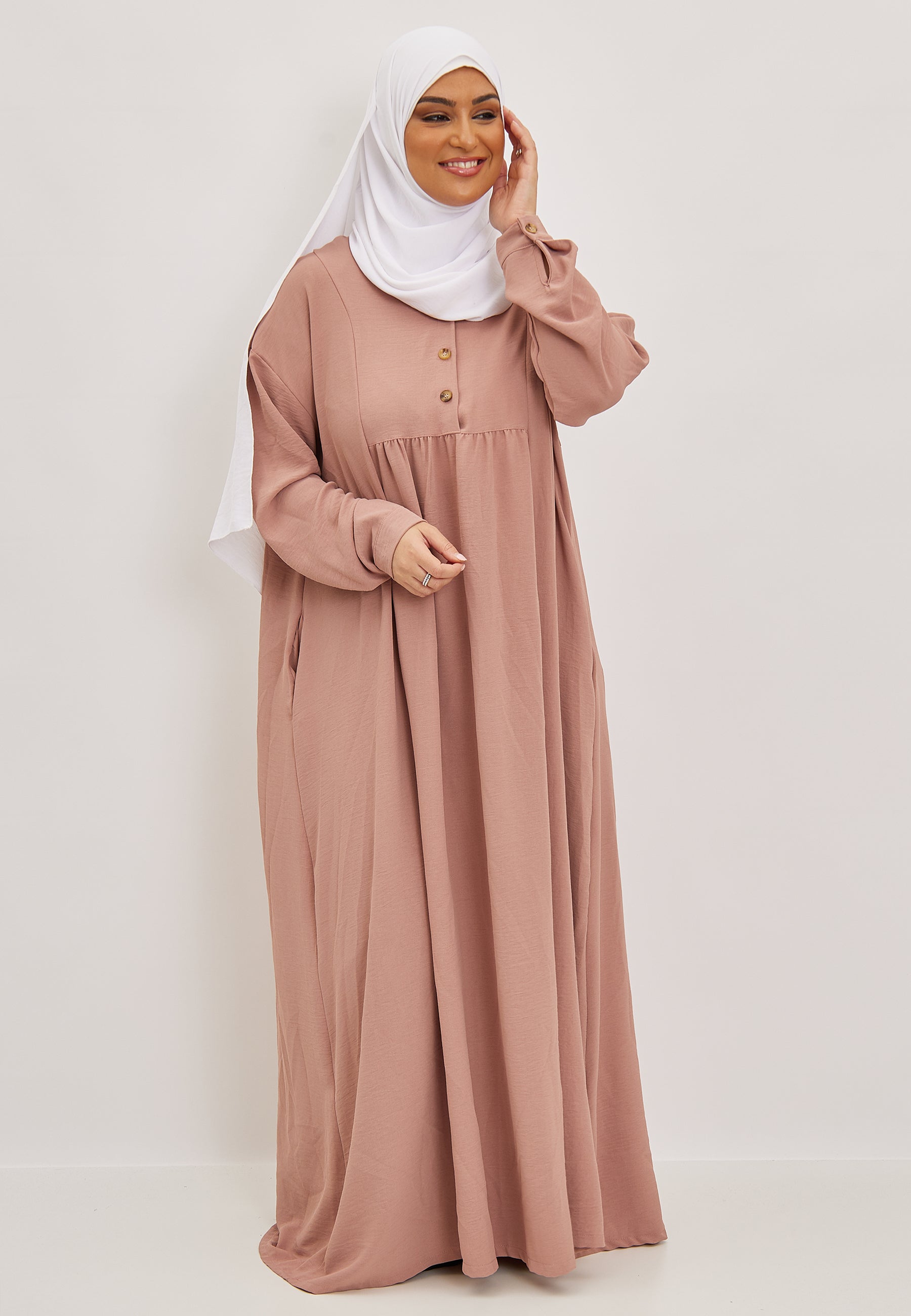 L’Abaya Jazia, séduit par sa coupe droite et ses manches plissées boutonnées. Une pièce pensée pour le quotidien.