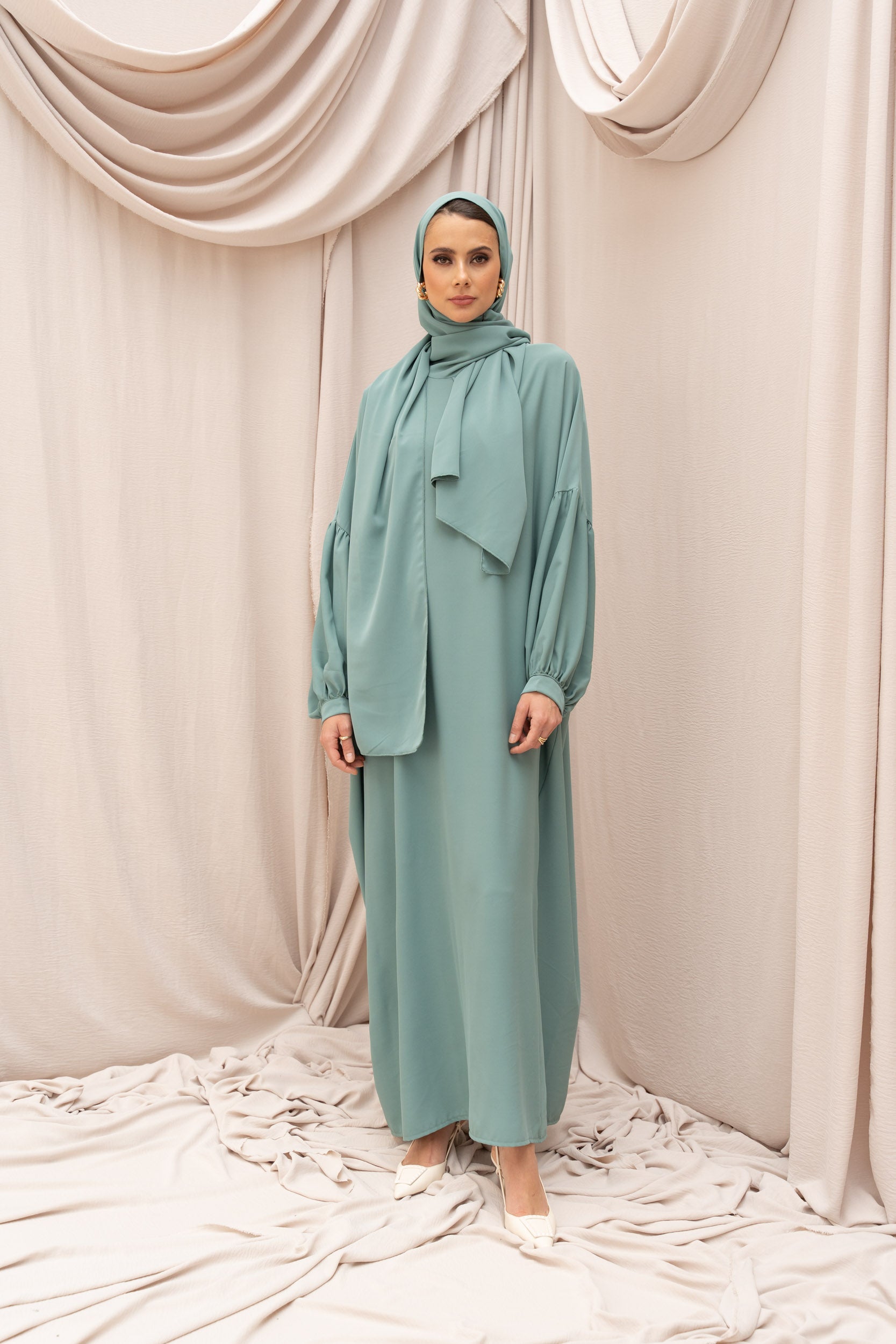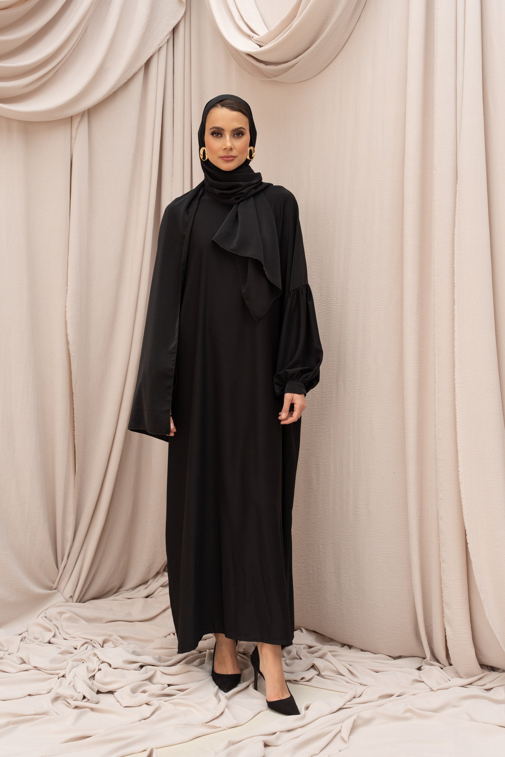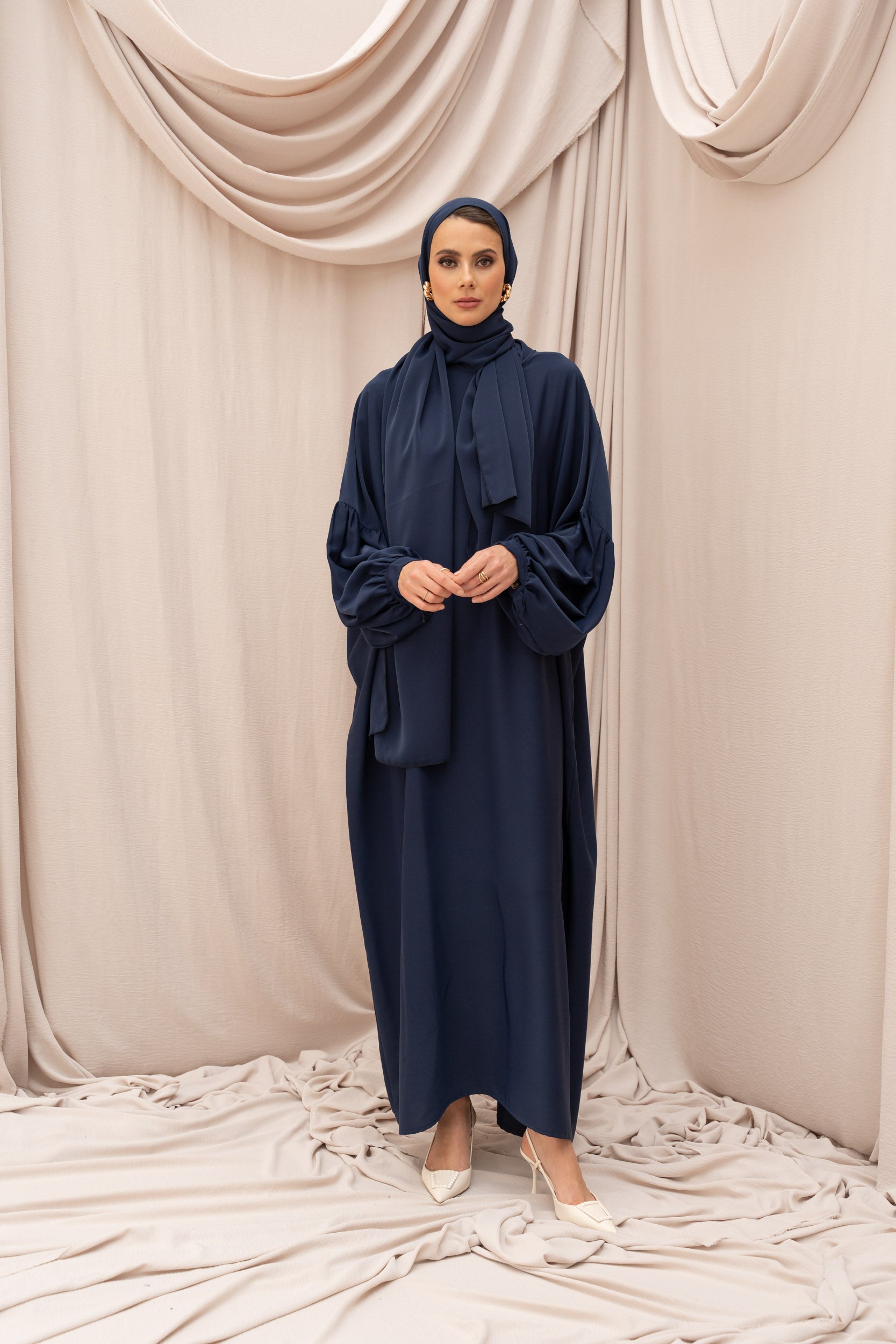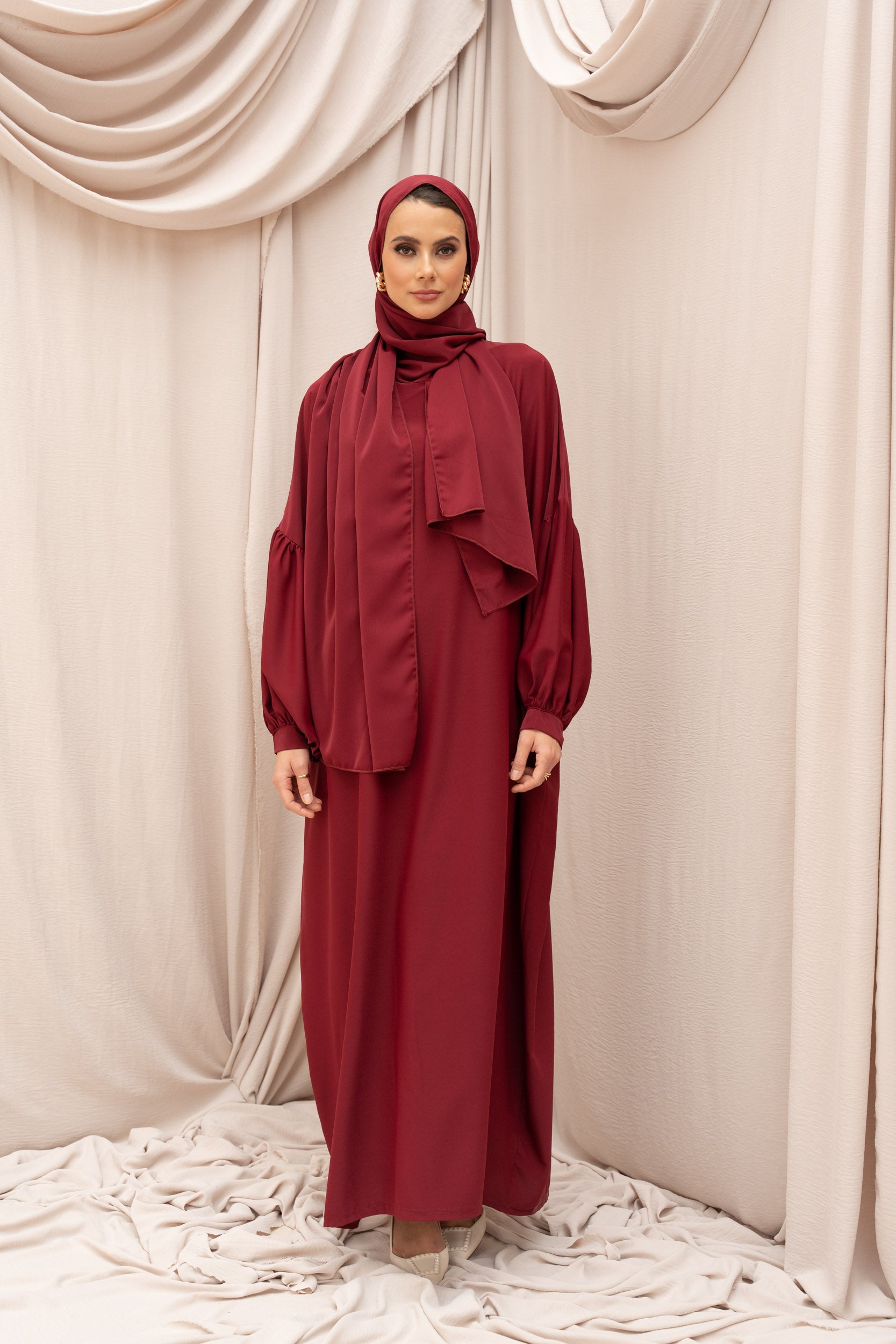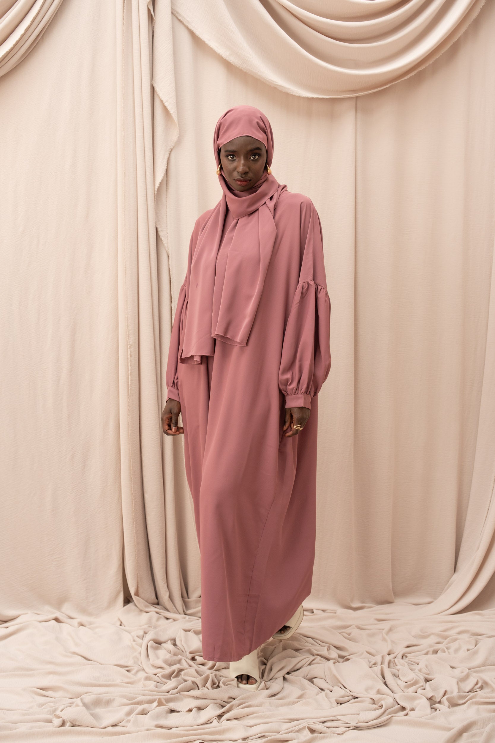 L'Abaya Mourida, en soie de médine, est un incontournable de votre garde-robe, grâce à sa simplicité et son voile intégré pratique. Les manches boutonnées ajoutent une touche d'harmonie à cette pièce.