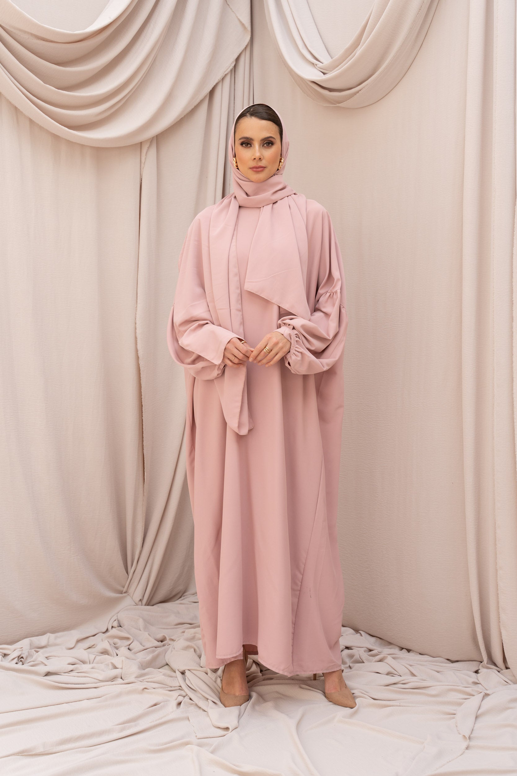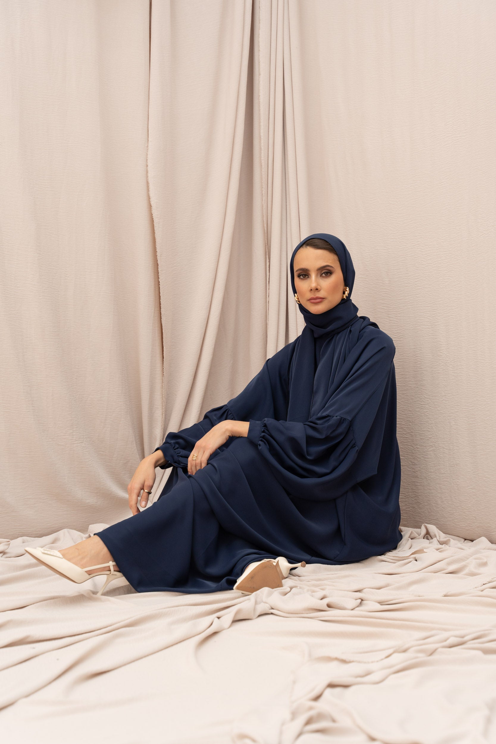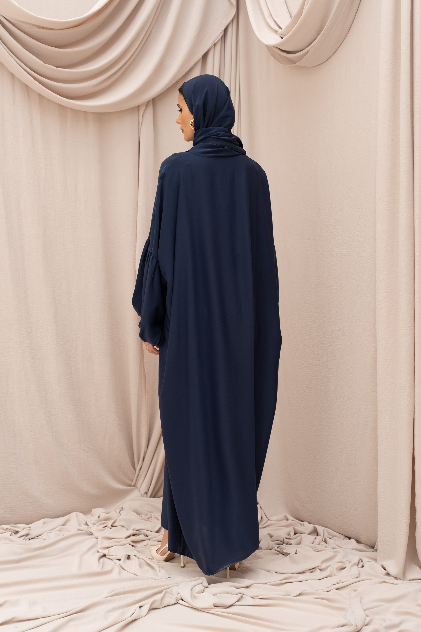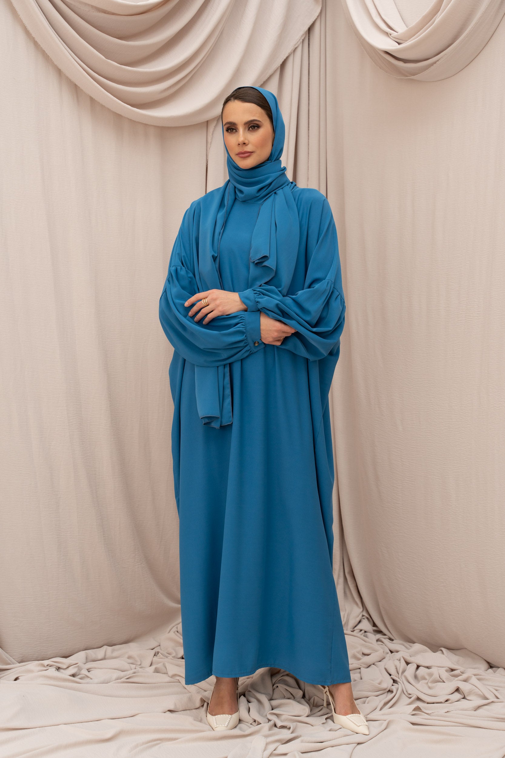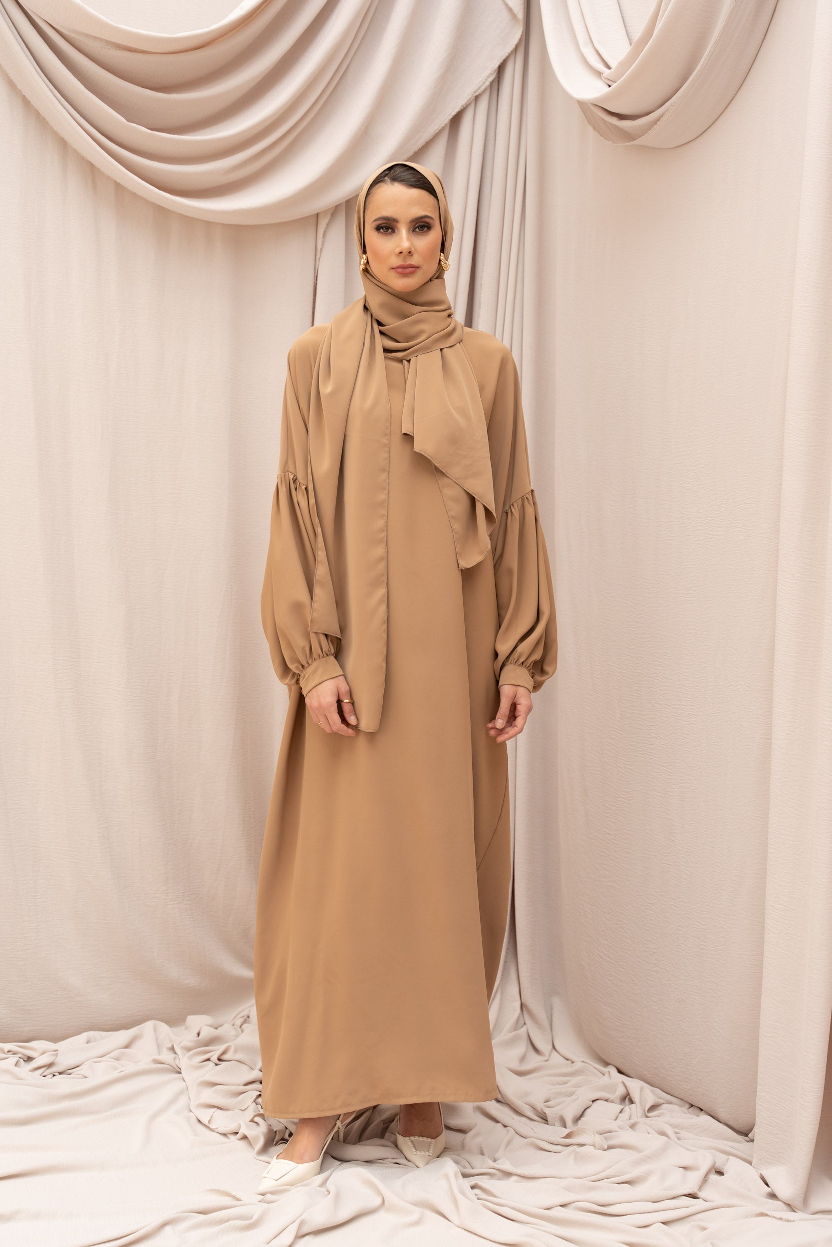 L'Abaya Mourida, en soie de médine, est un incontournable de votre garde-robe, grâce à sa simplicité et son voile intégré pratique. Les manches boutonnées ajoutent une touche d'harmonie à cette pièce.
