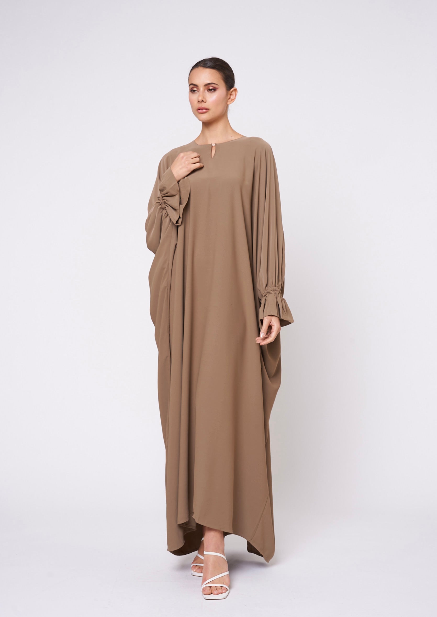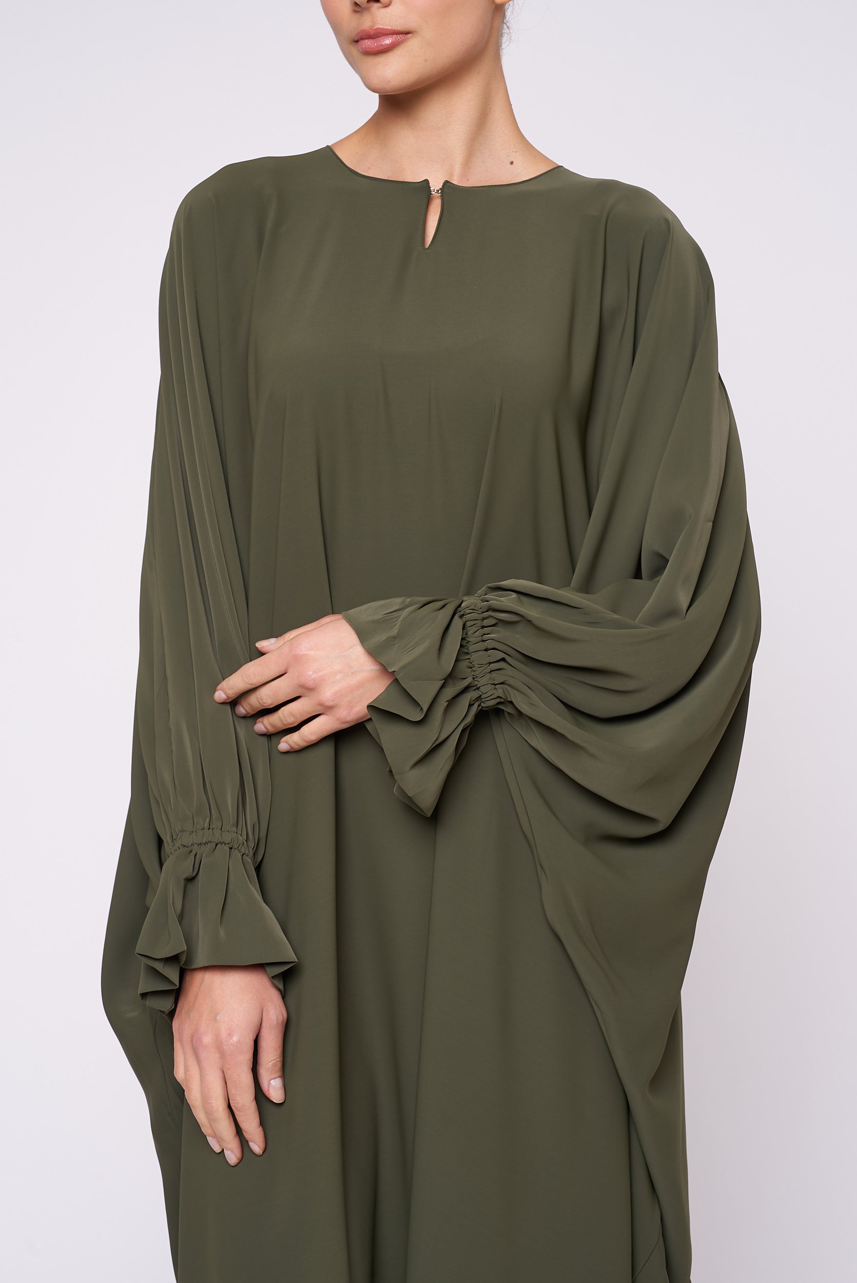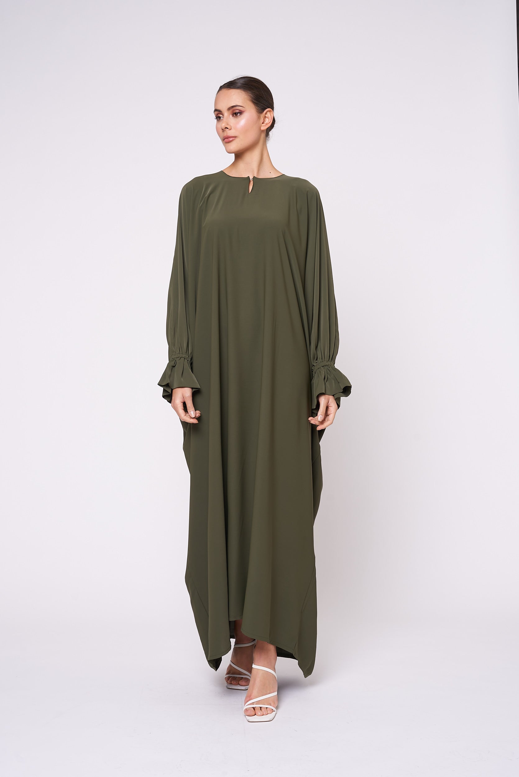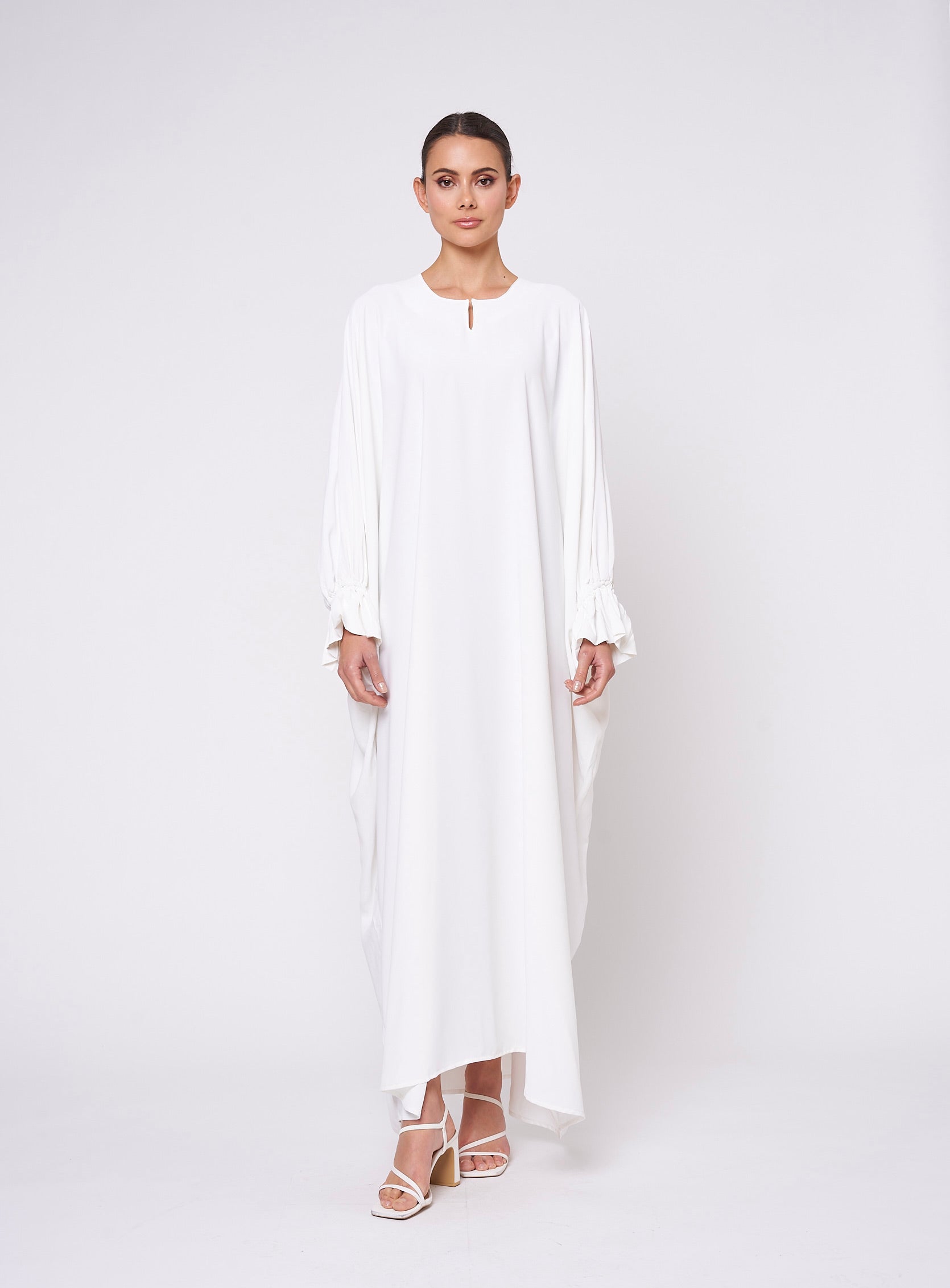 La robe Missa, en soie de médine, allie une coupe en papillon et des manches tulipe élastiques pour un look chic et léger, idéal pour l’été.