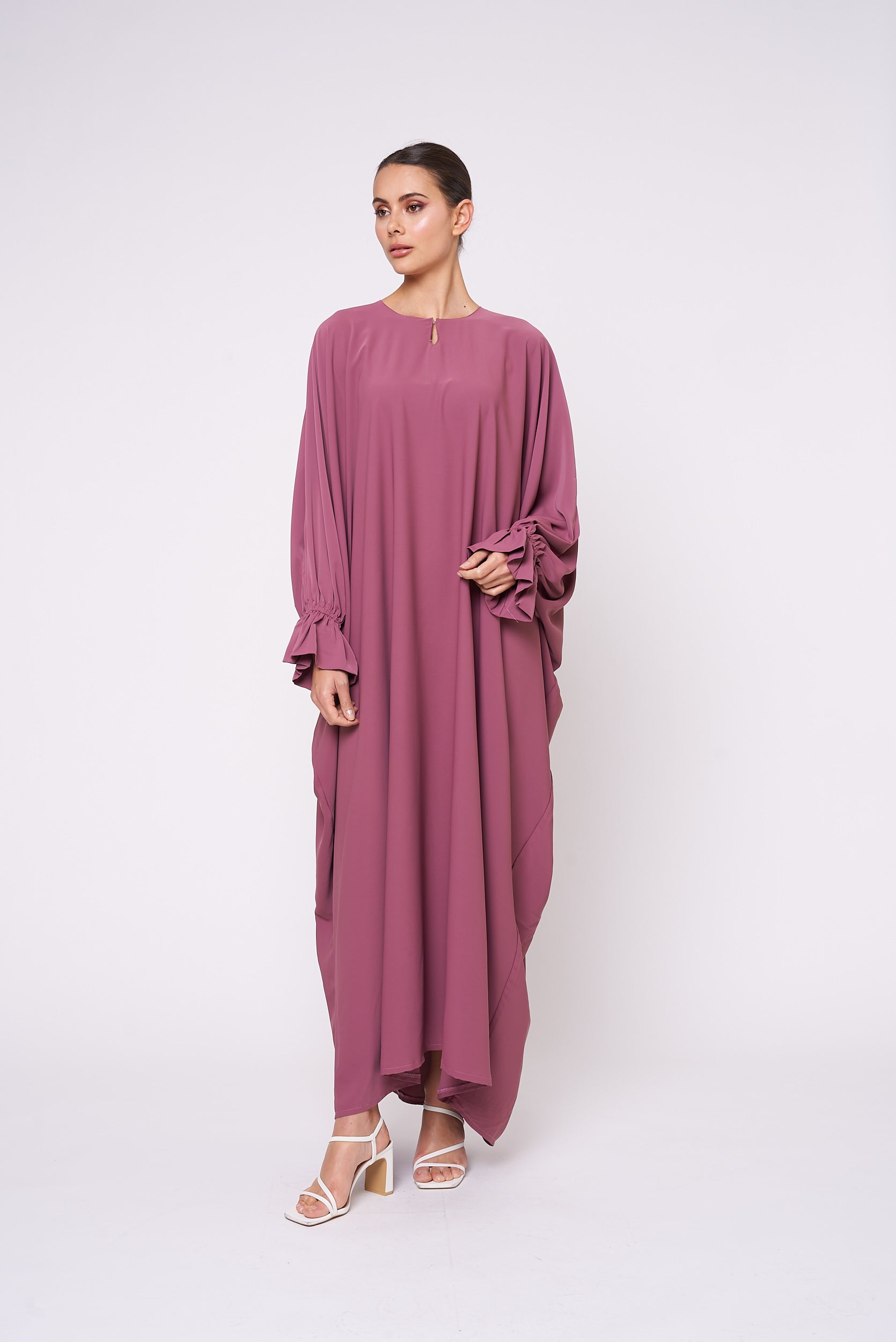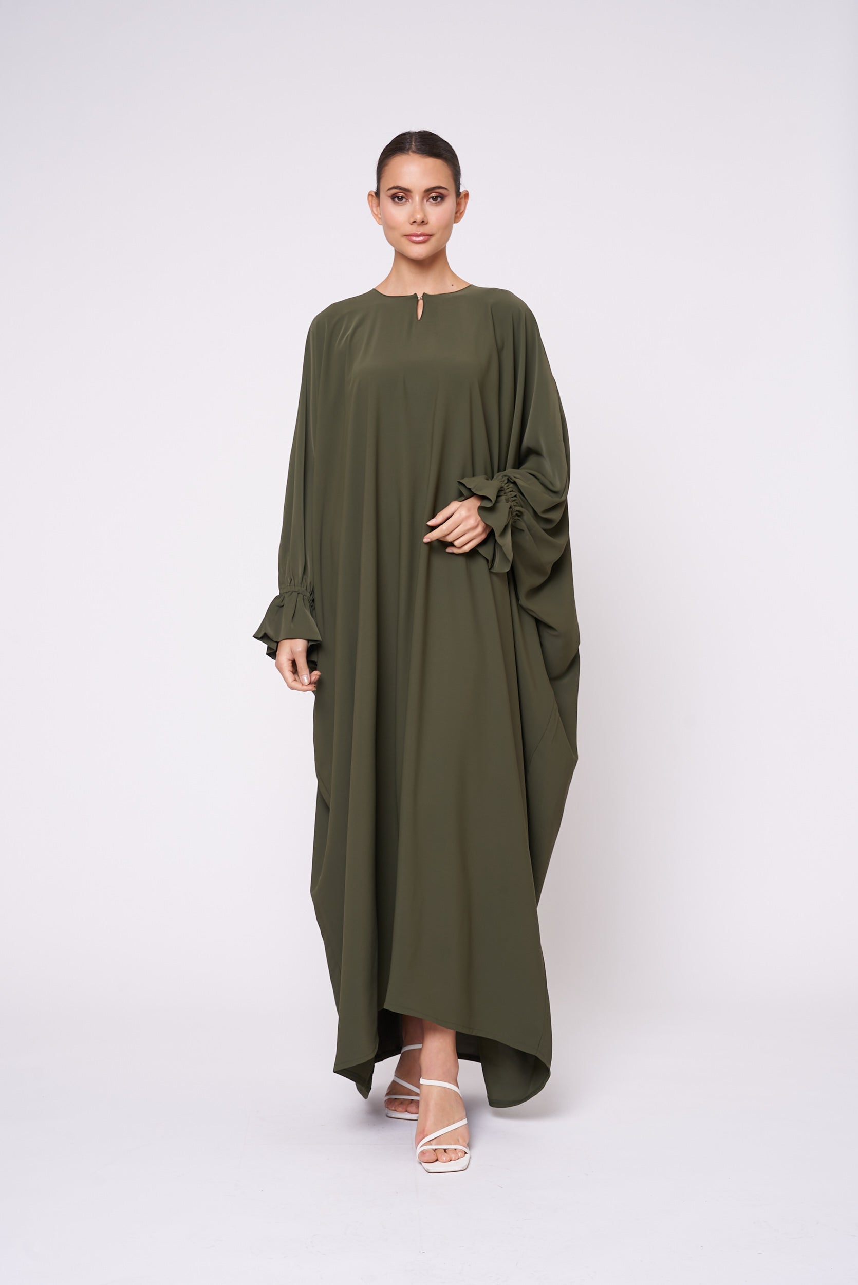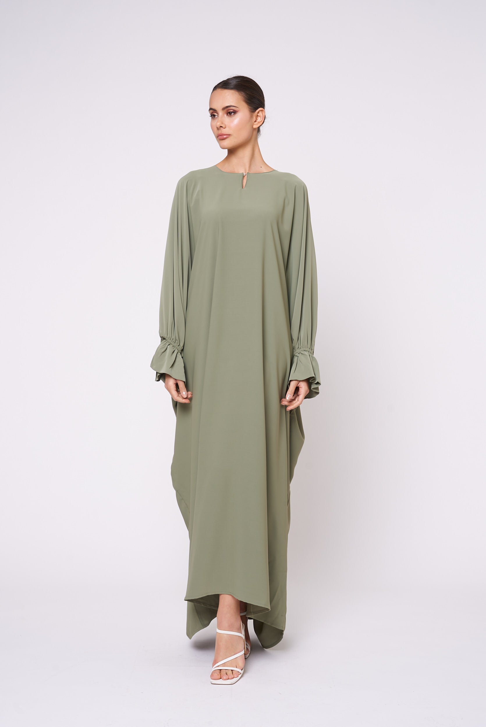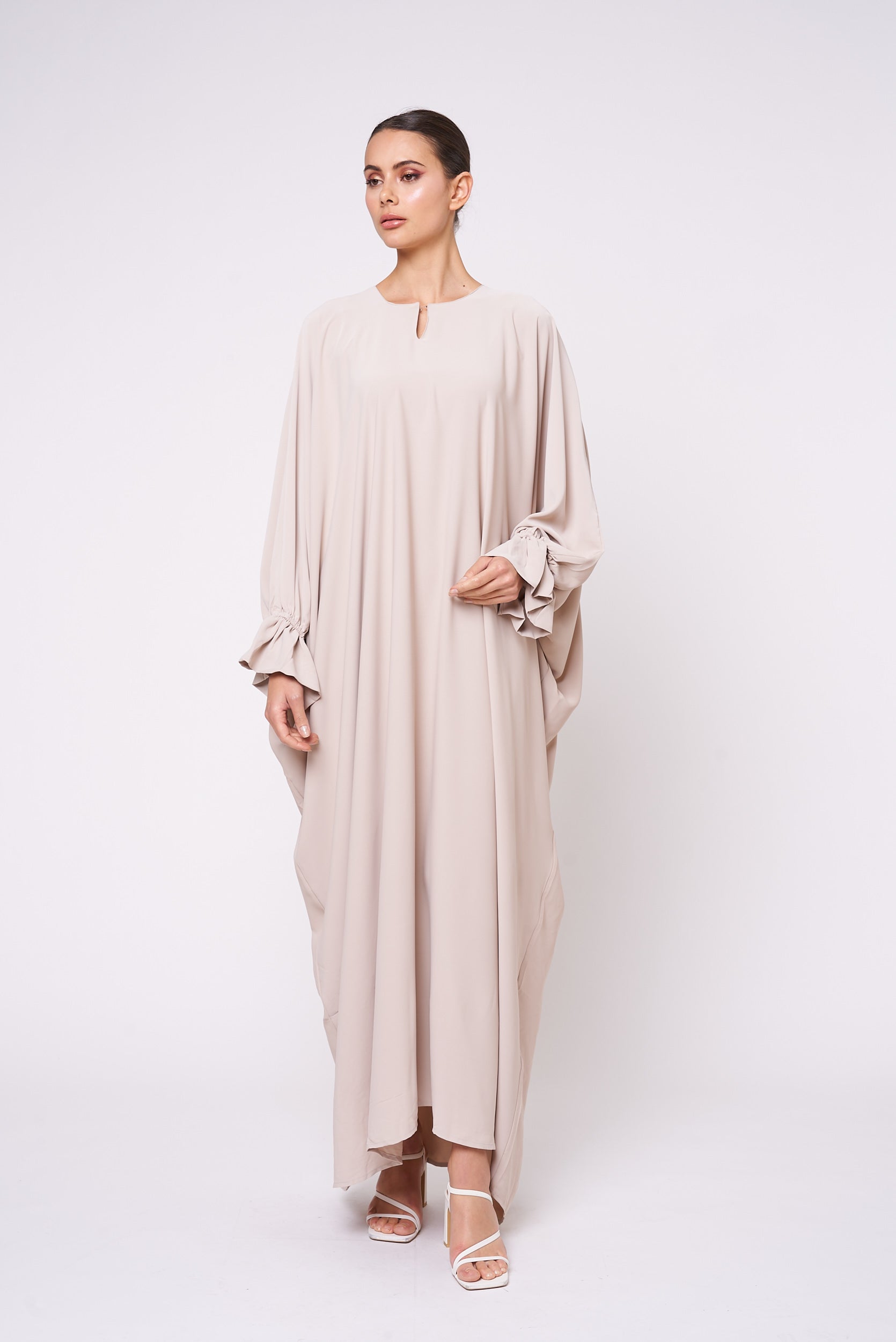 La robe Missa, en soie de médine, allie une coupe en papillon et des manches tulipe élastiques pour un look chic et léger, idéal pour l’été.