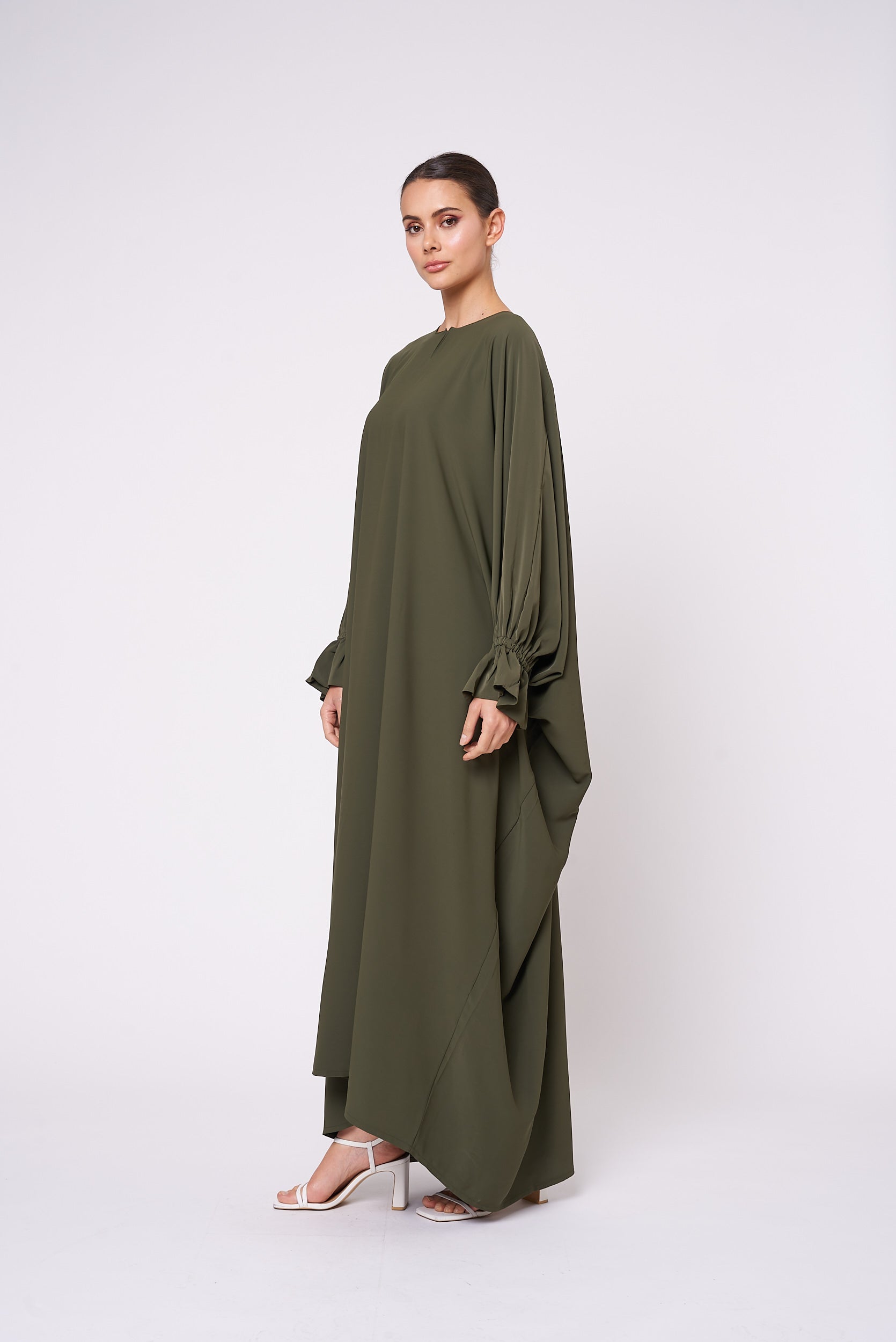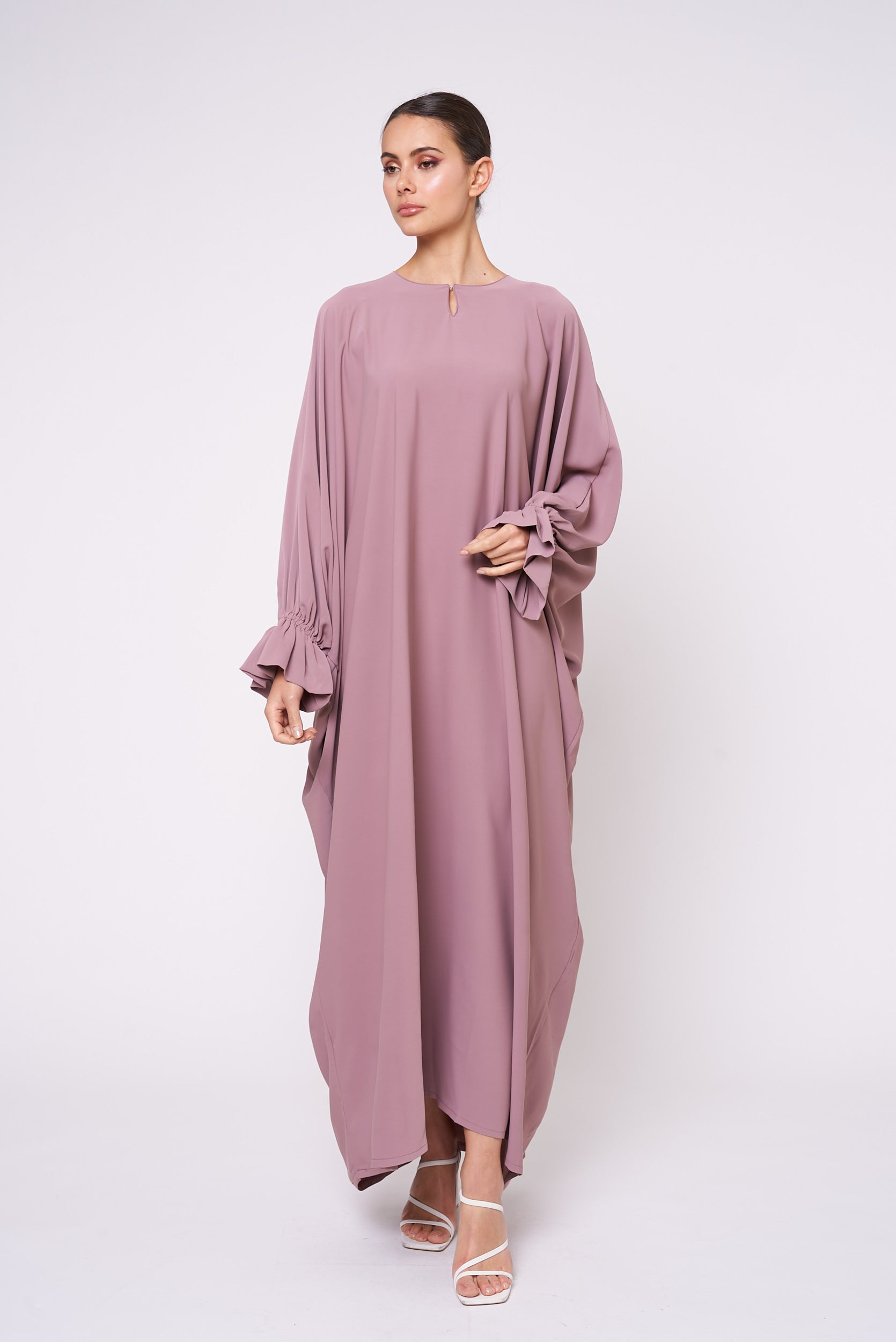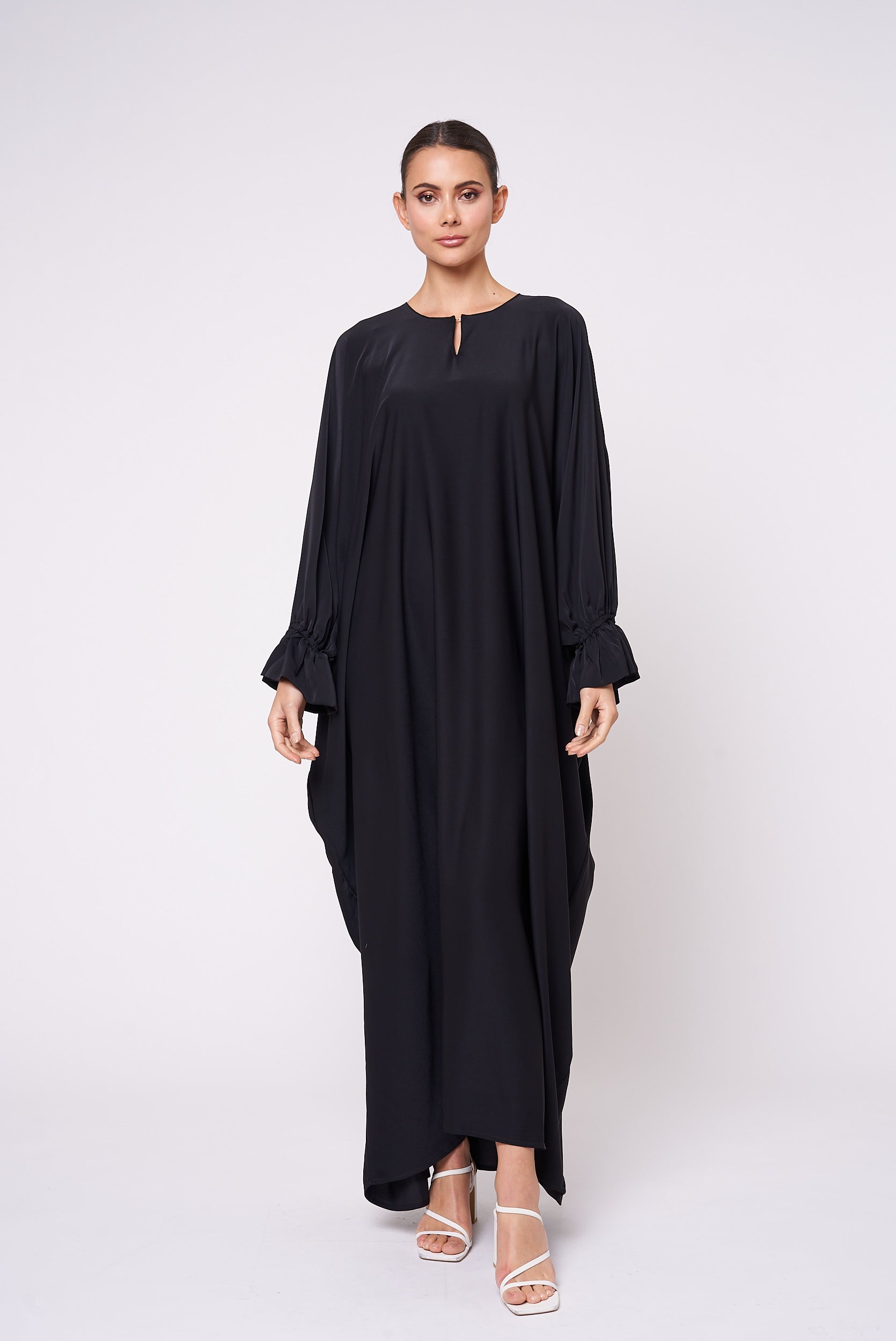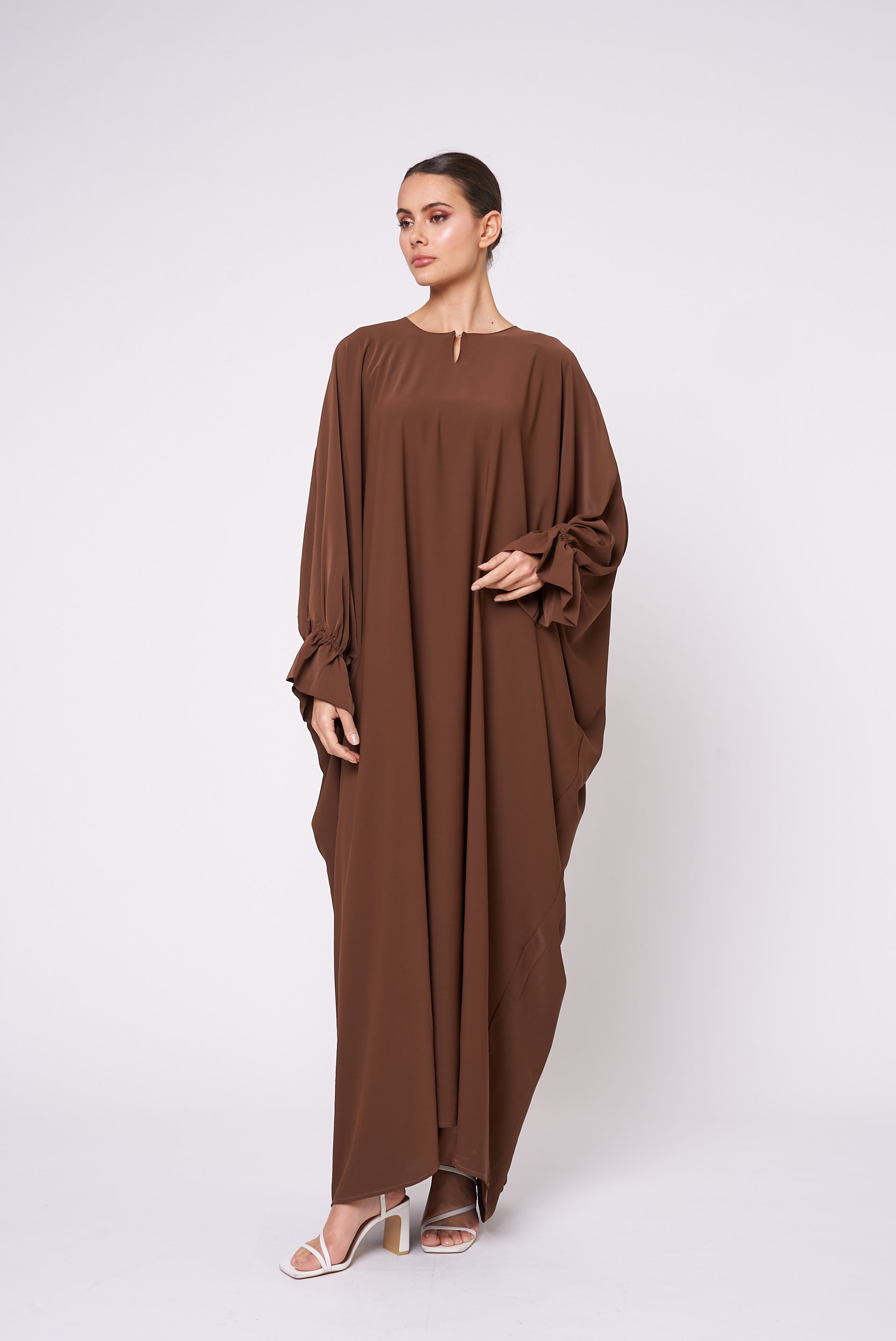 La robe Missa, en soie de médine, allie une coupe en papillon et des manches tulipe élastiques pour un look chic et léger, idéal pour l’été.