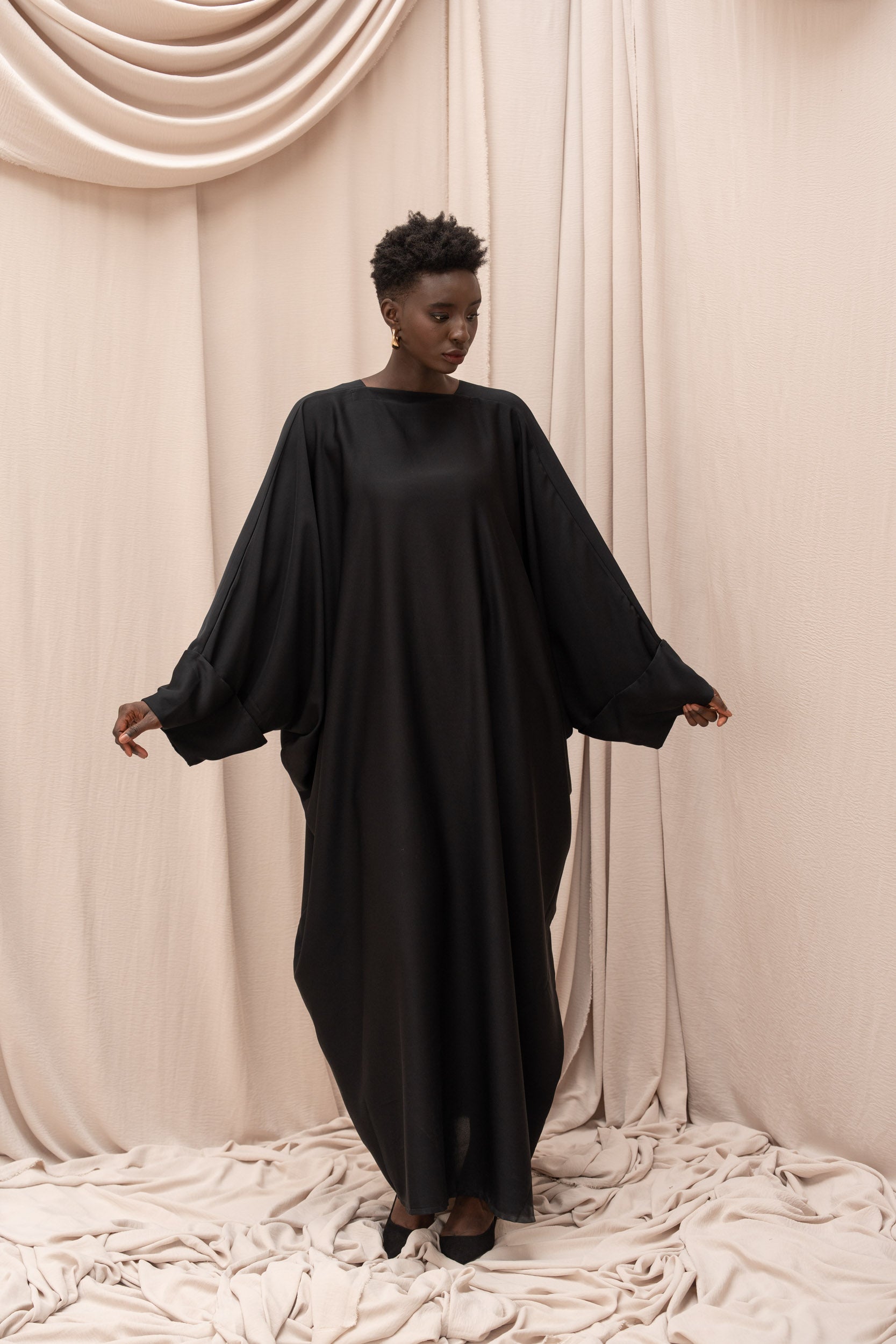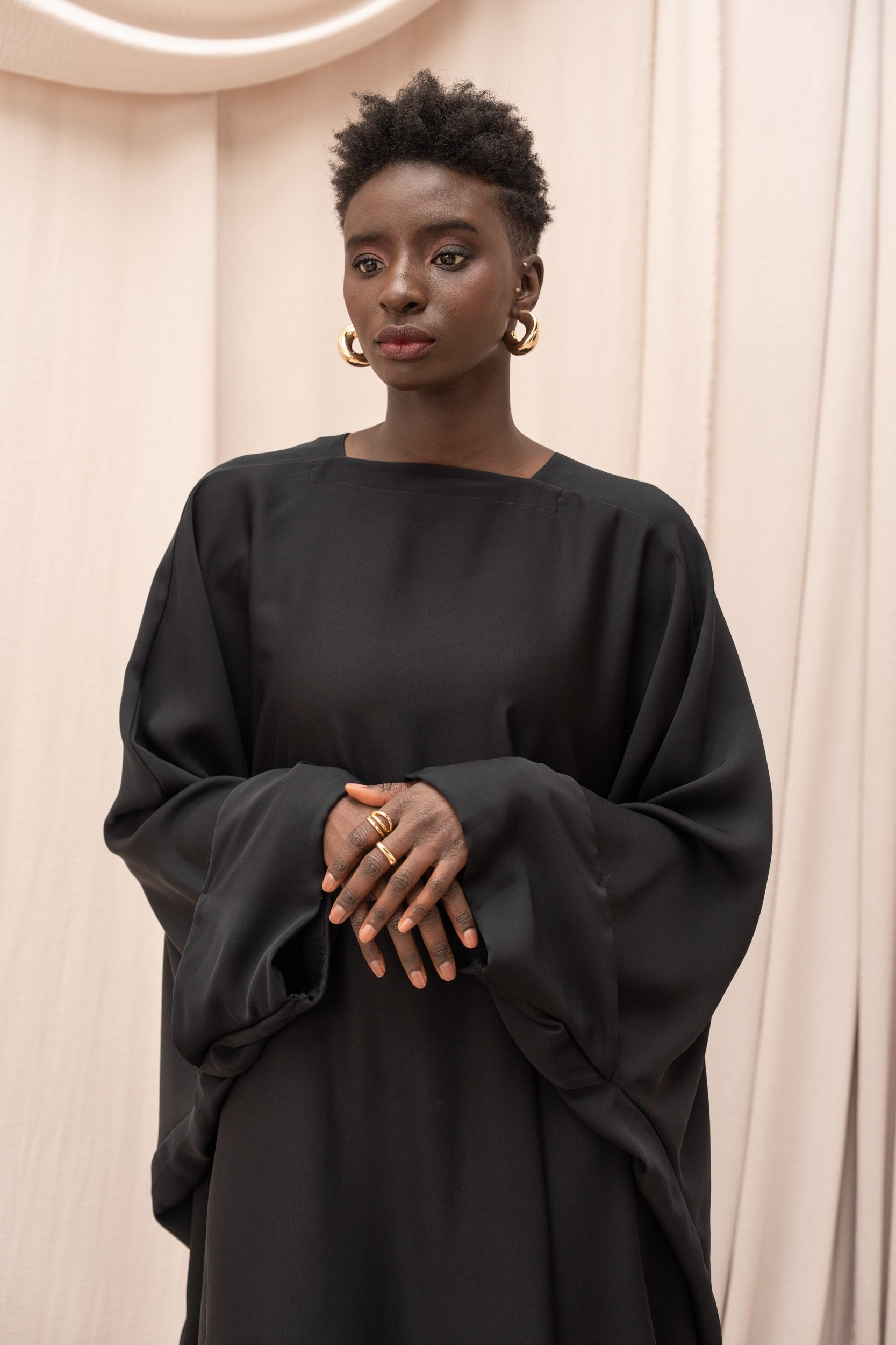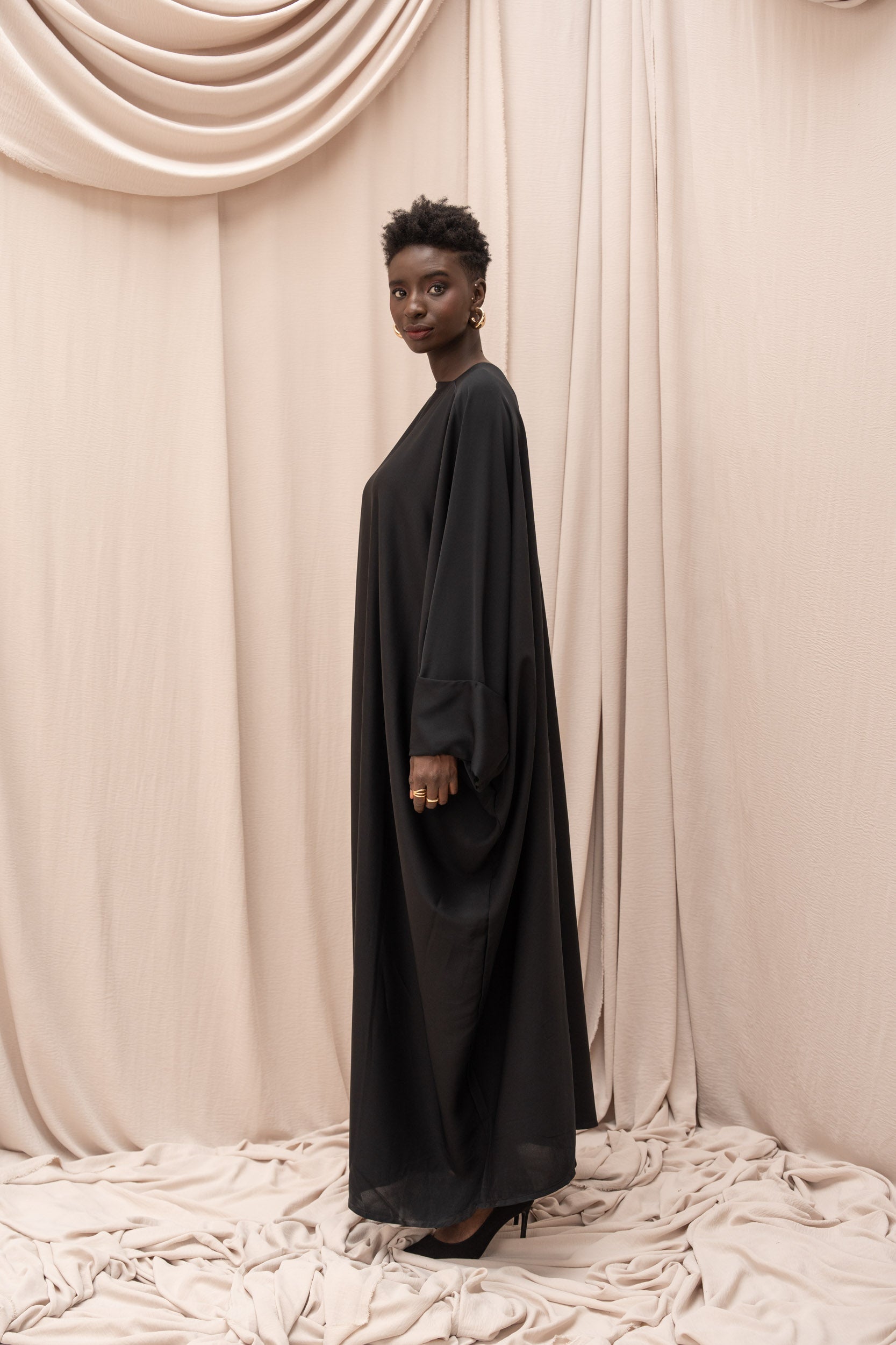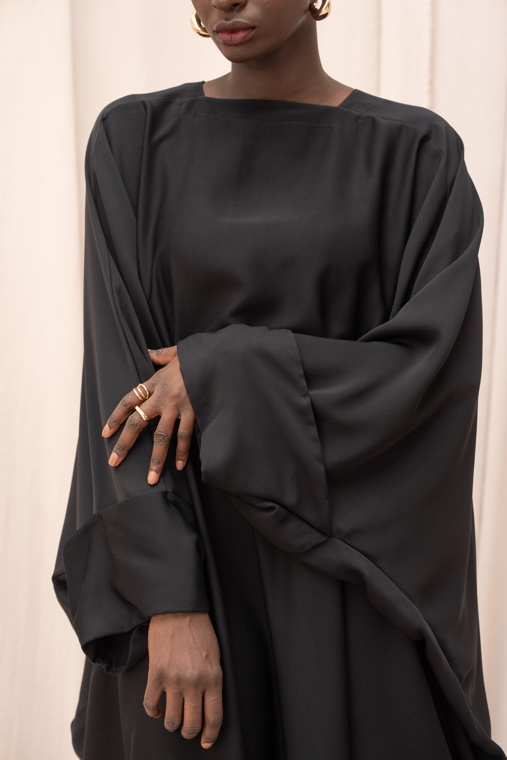 L'Abaya Nour, en nidha, combine élégance et confort avec sa coupe fluide. Ses manches kimono ajoutent une touche minimaliste à la tenue.