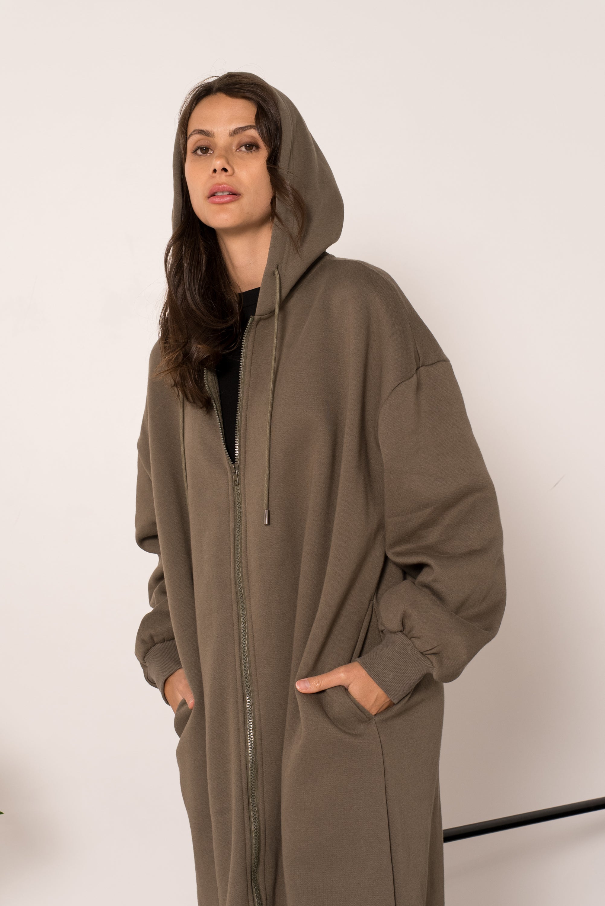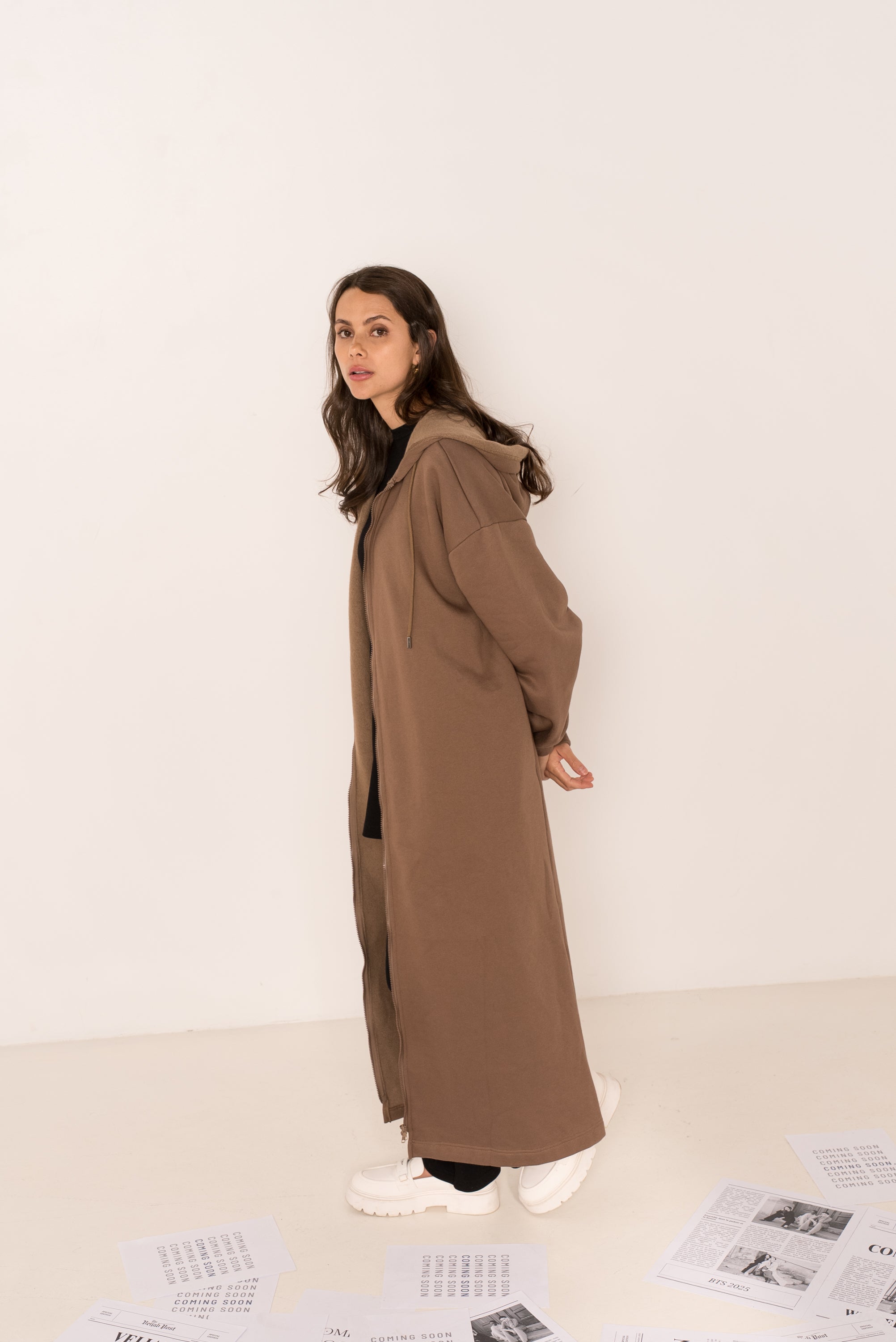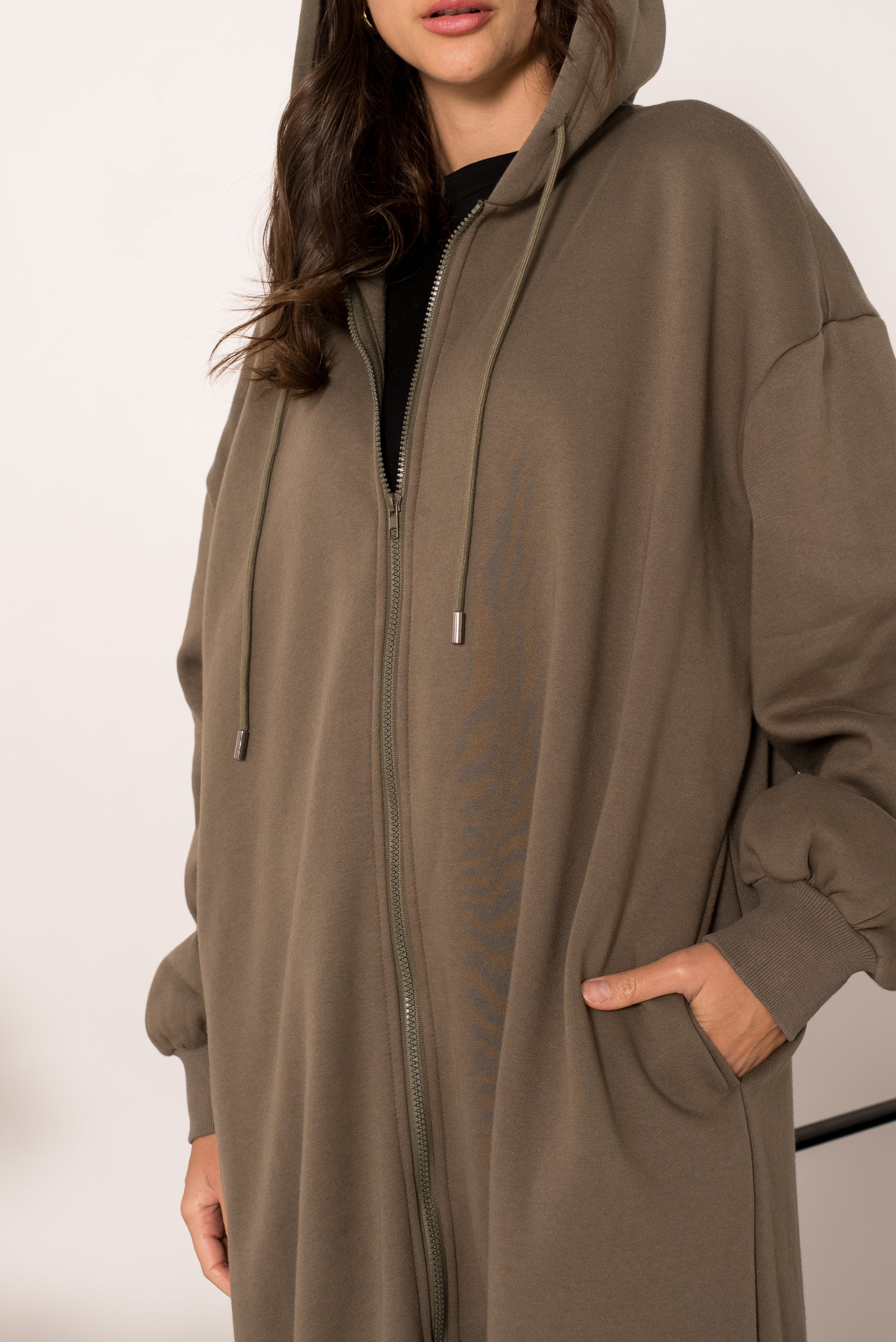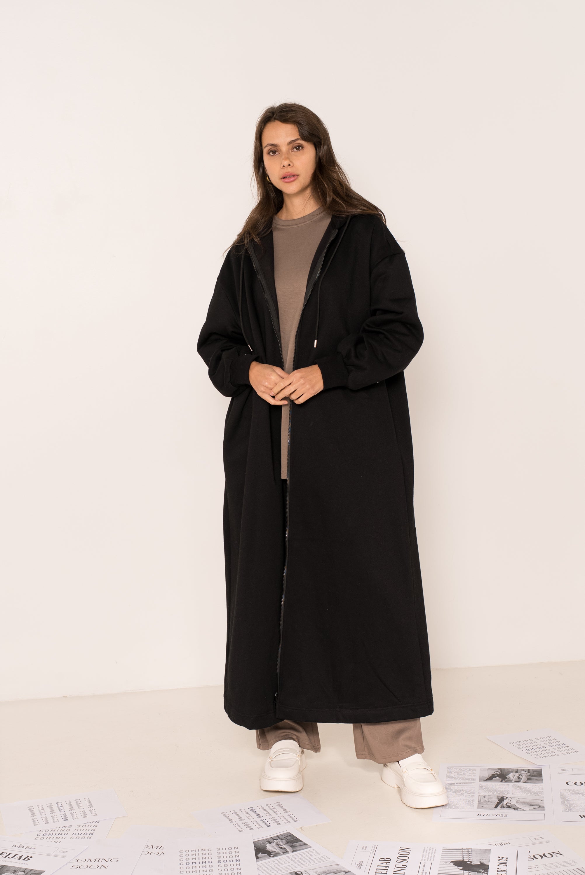 Sweat Hadia allie confort et modernité avec son zip intégral et sa capuche pratique, elle est idéale pour l’hiver. À porter seule ou sur une abaya, elle apporte chaleur, élégance et style décontracté.