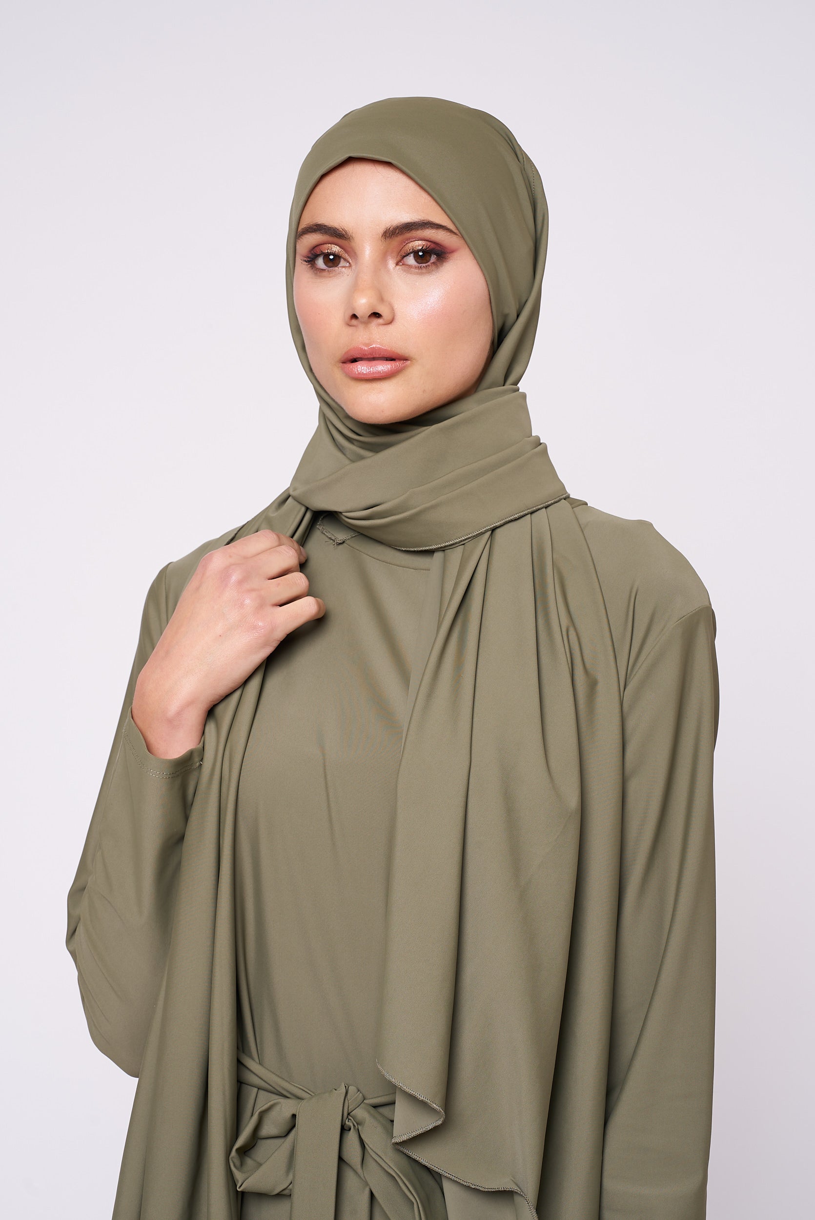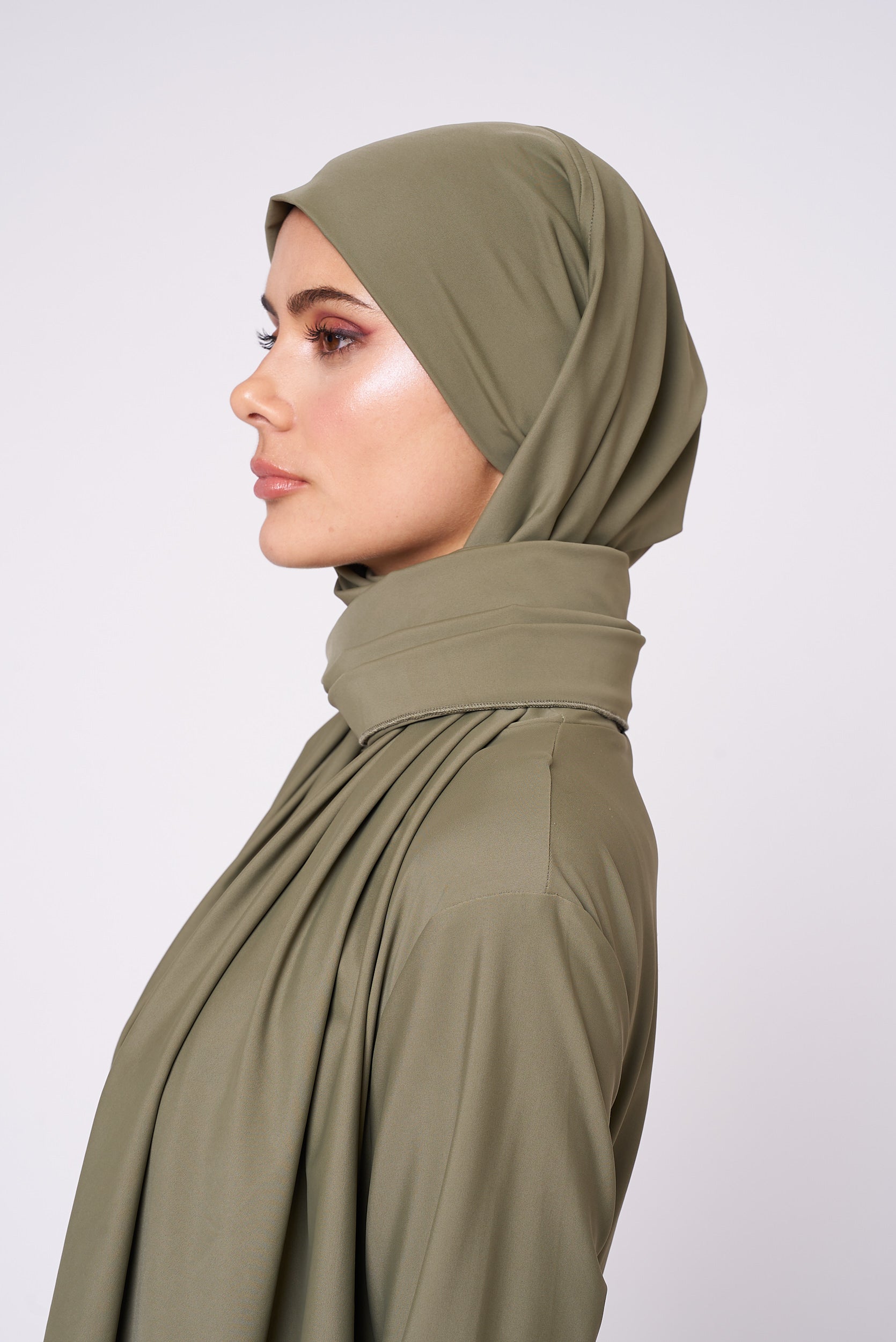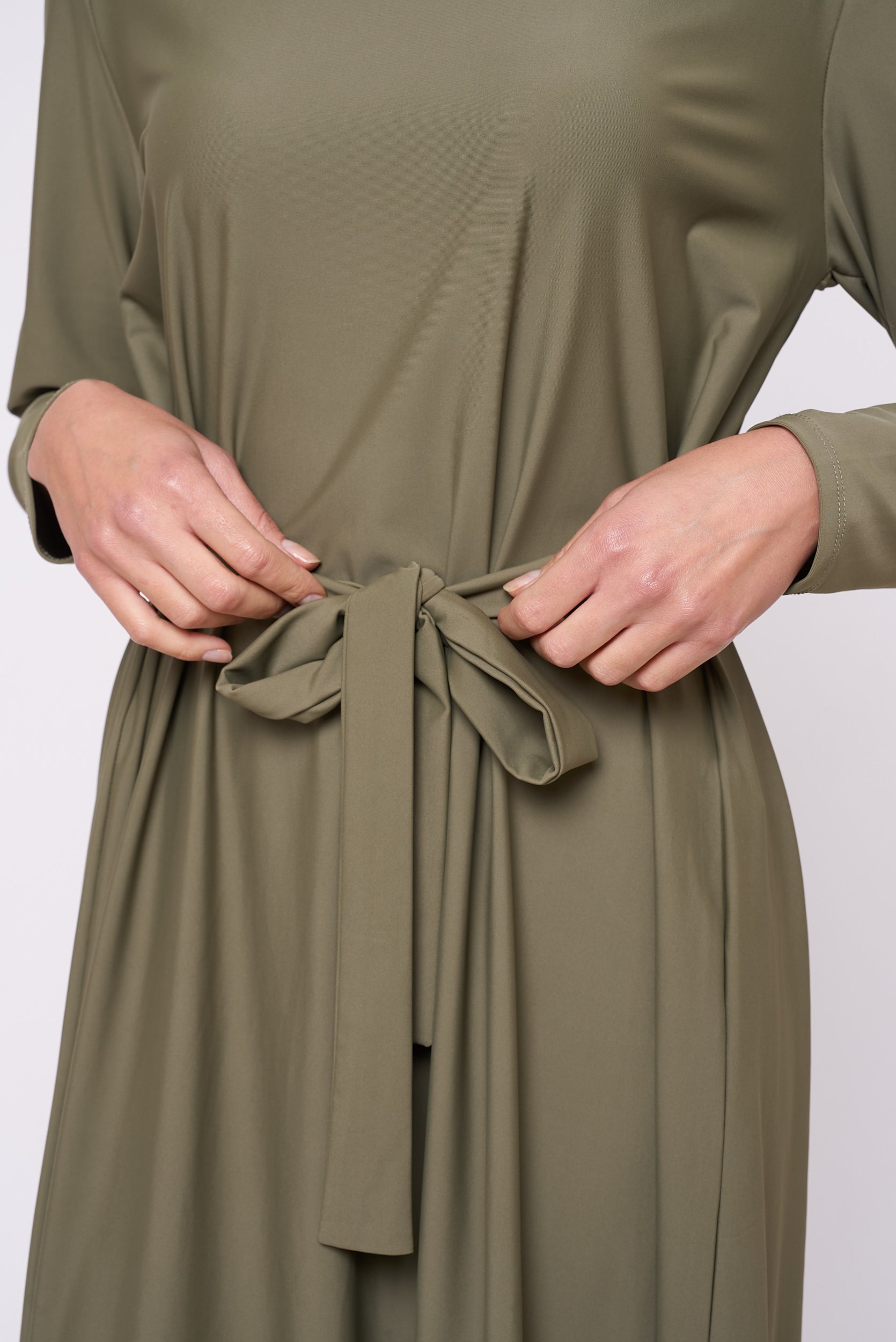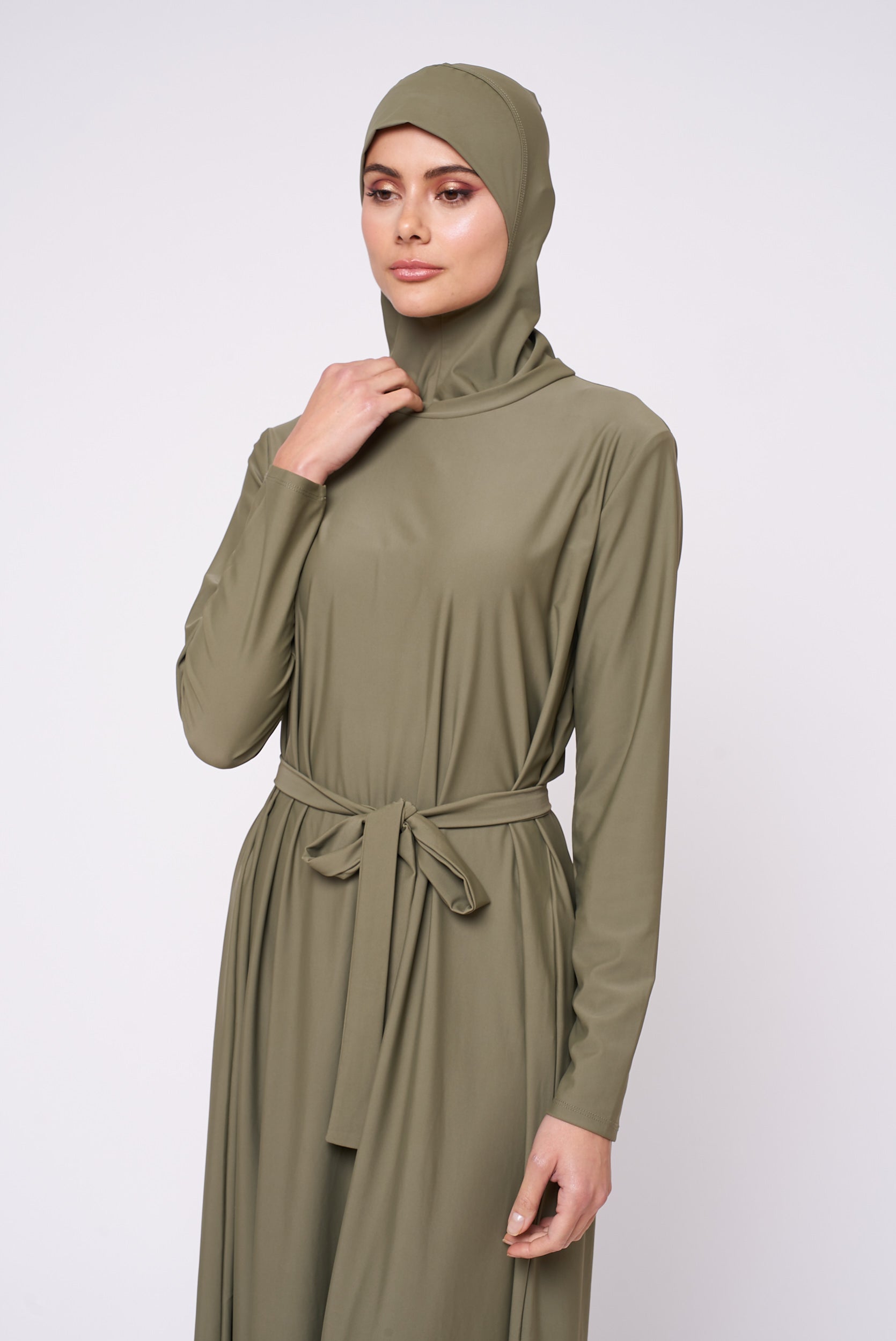 Le Burkini Baki dispose de deux façons d'attacher son voile. Premièrement, un voile à enfiler (pratique pour la natation) et un hijab qui s'attache à l'arrière de la tête. Le burkini à manches longues vous offre une protection optimale. Un système d'élastique de maintien à l'intérieur du jupon vous assure tranquillité.