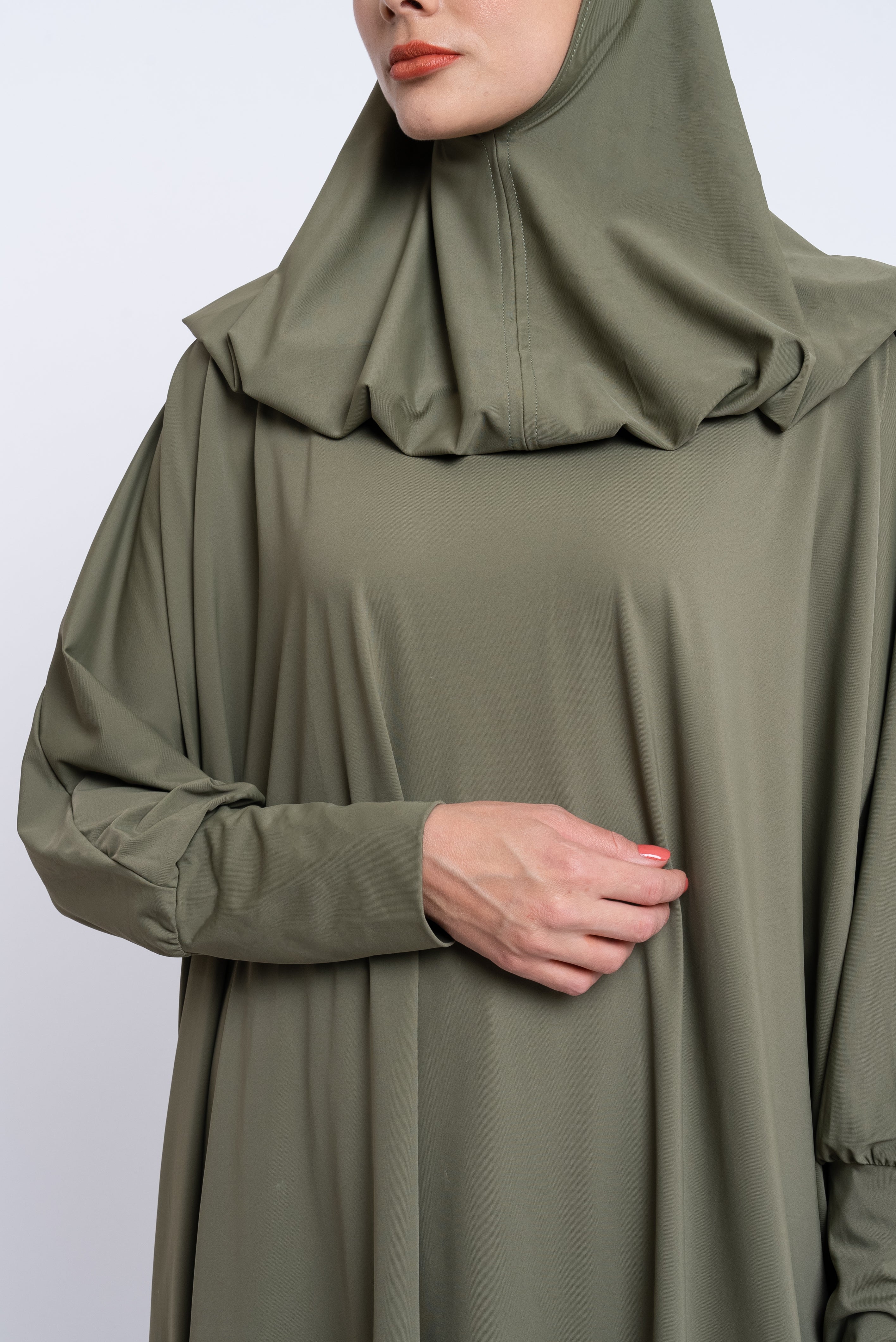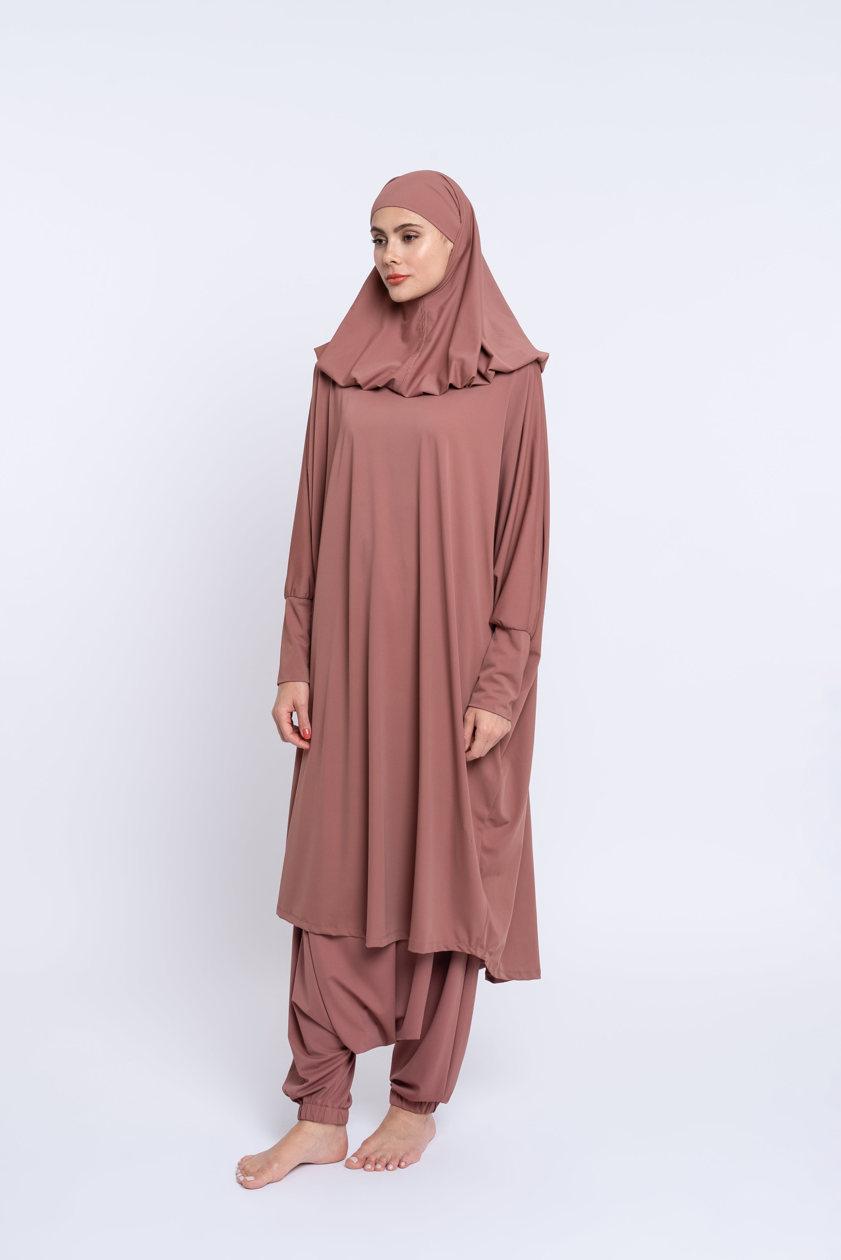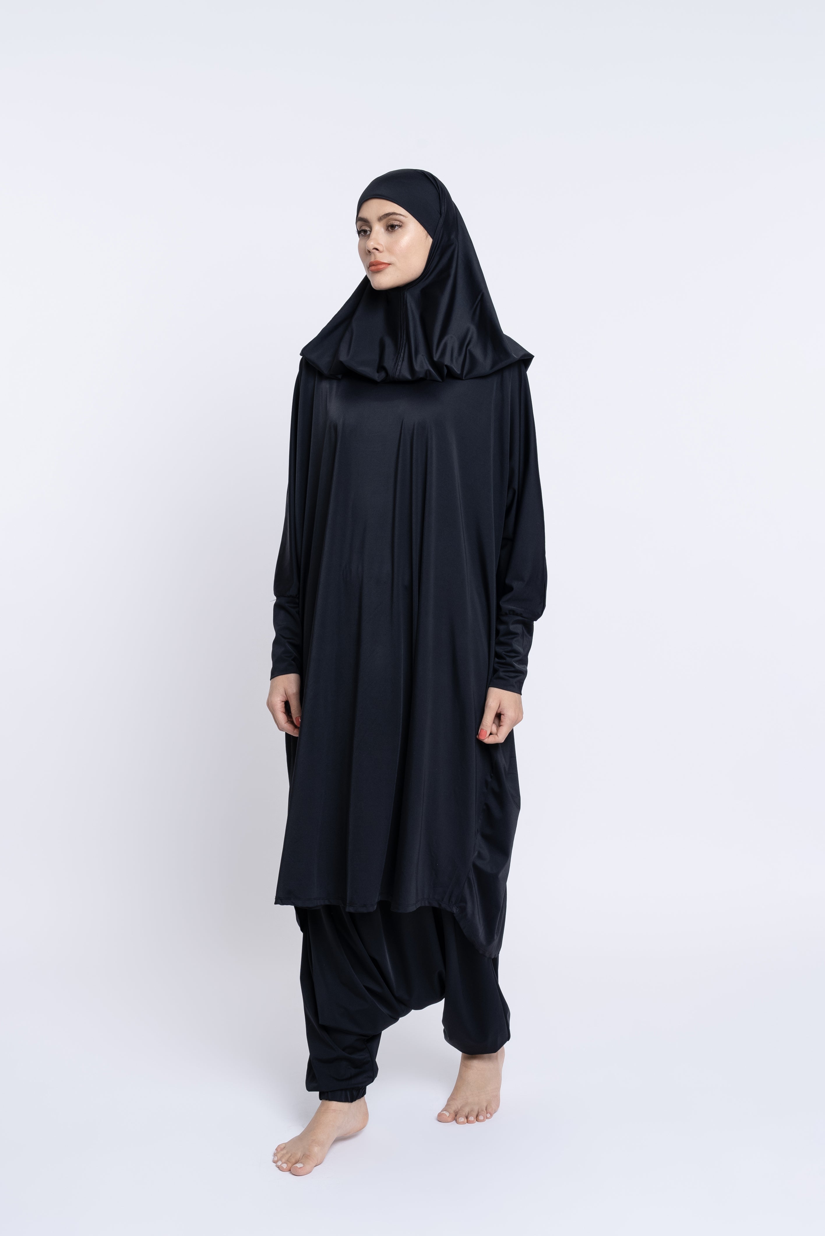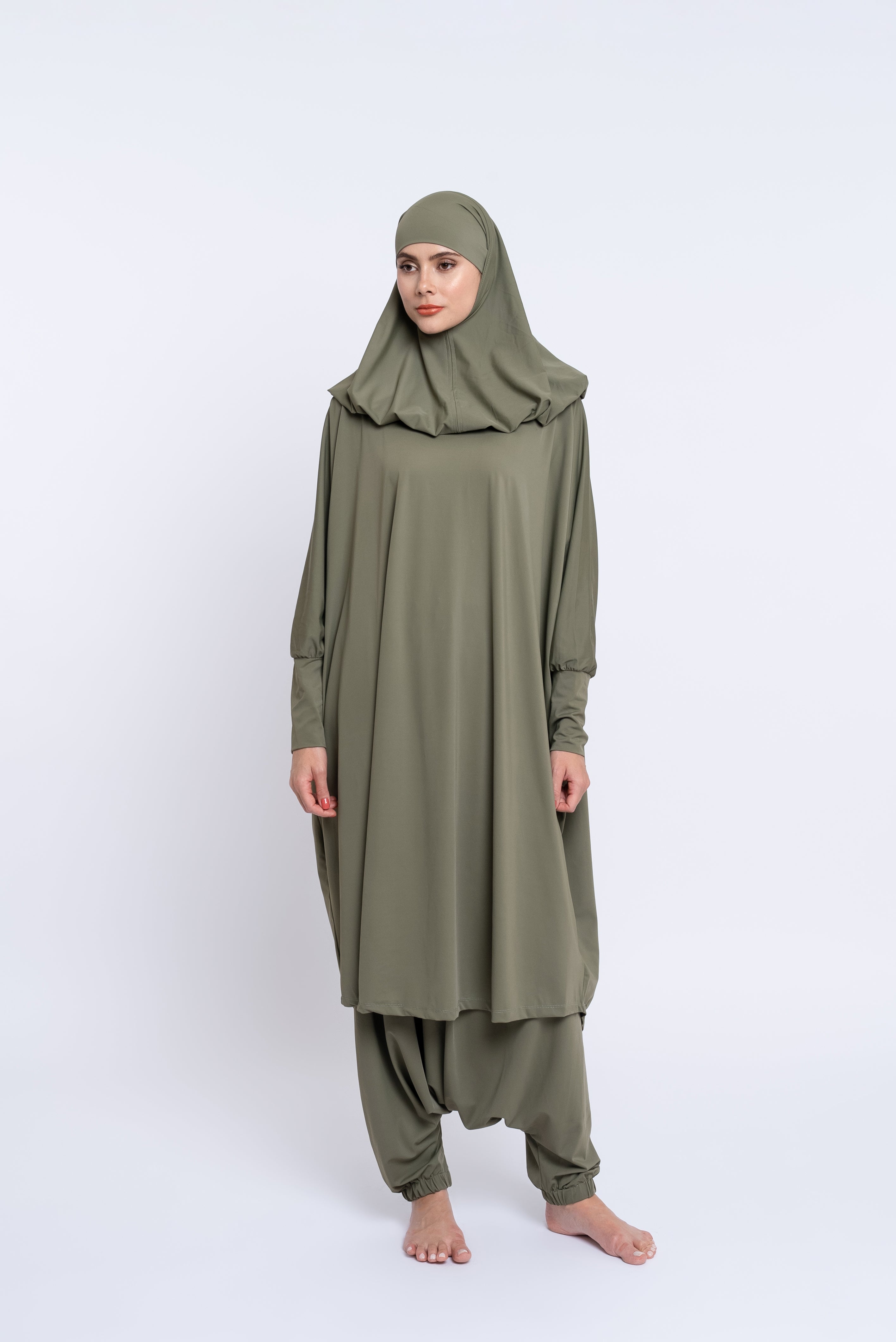 Le Burkini Basma possède deux pièces : tunique et sarouel. Le burkini à manches longues vous offre une protection optimale. Un système d'élastique de maintien à l'intérieur du jupon vous assure sécurité et tranquillité.