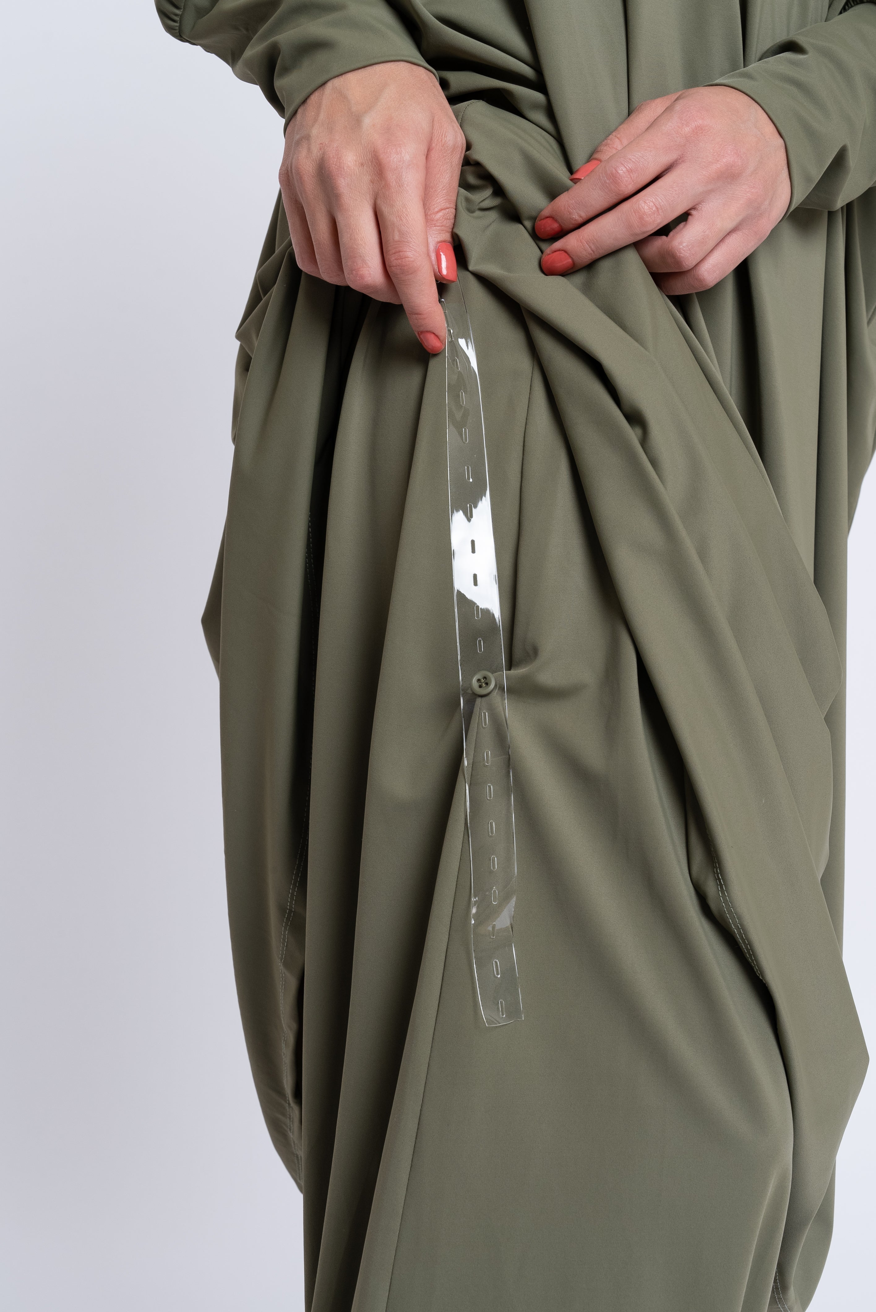 - Boutons au niveau de la longueur de la robe pour éviter qu'elle ne remonte