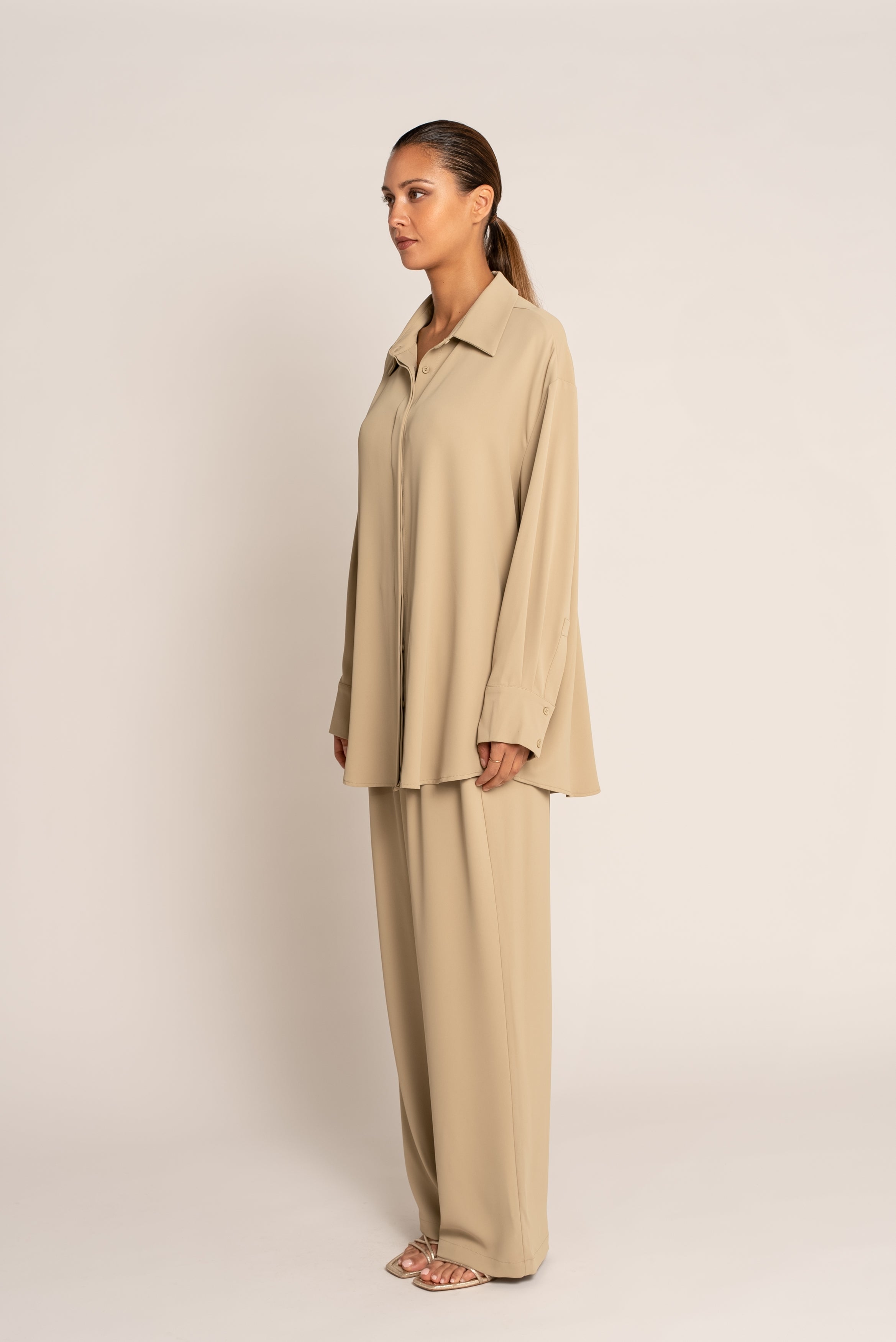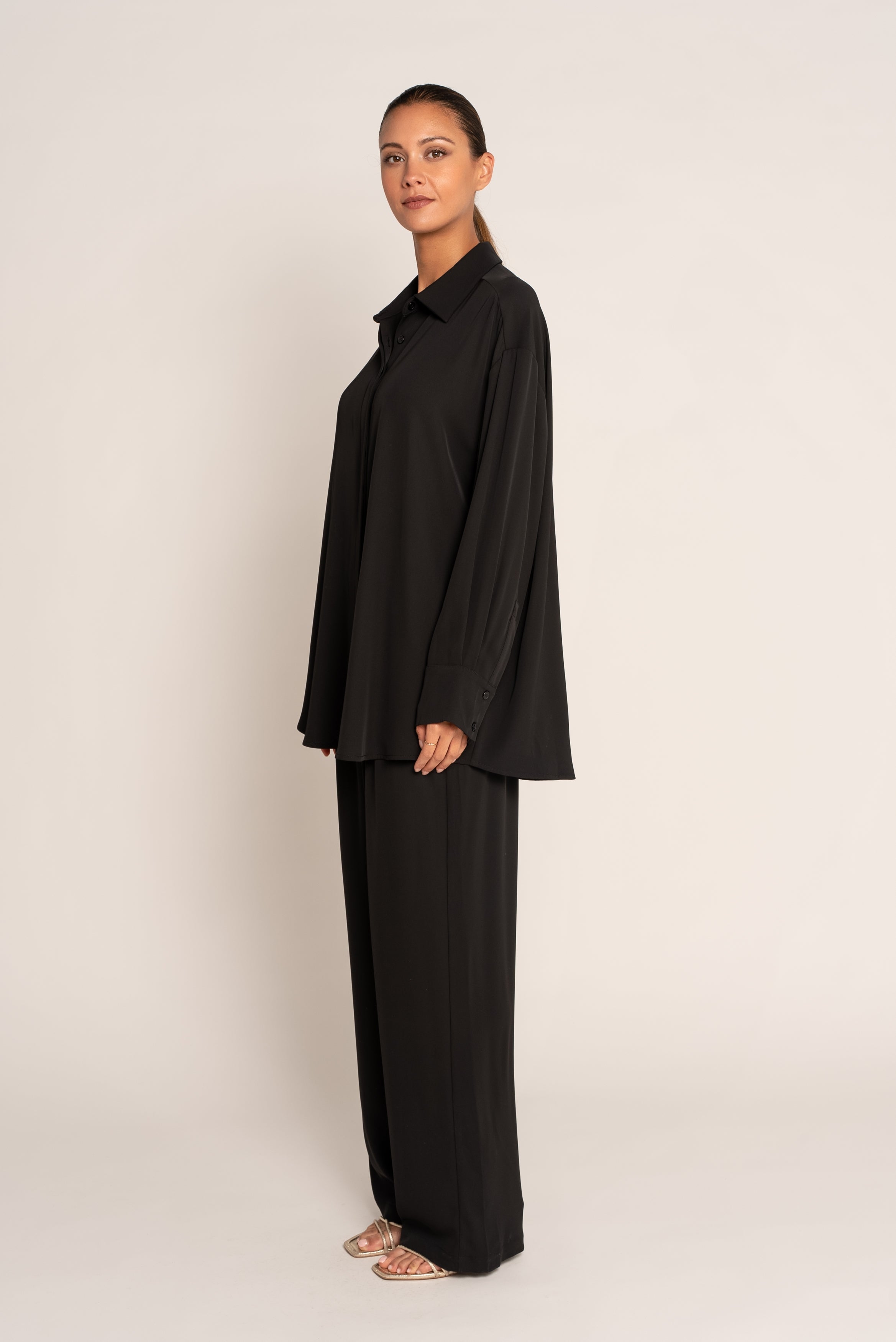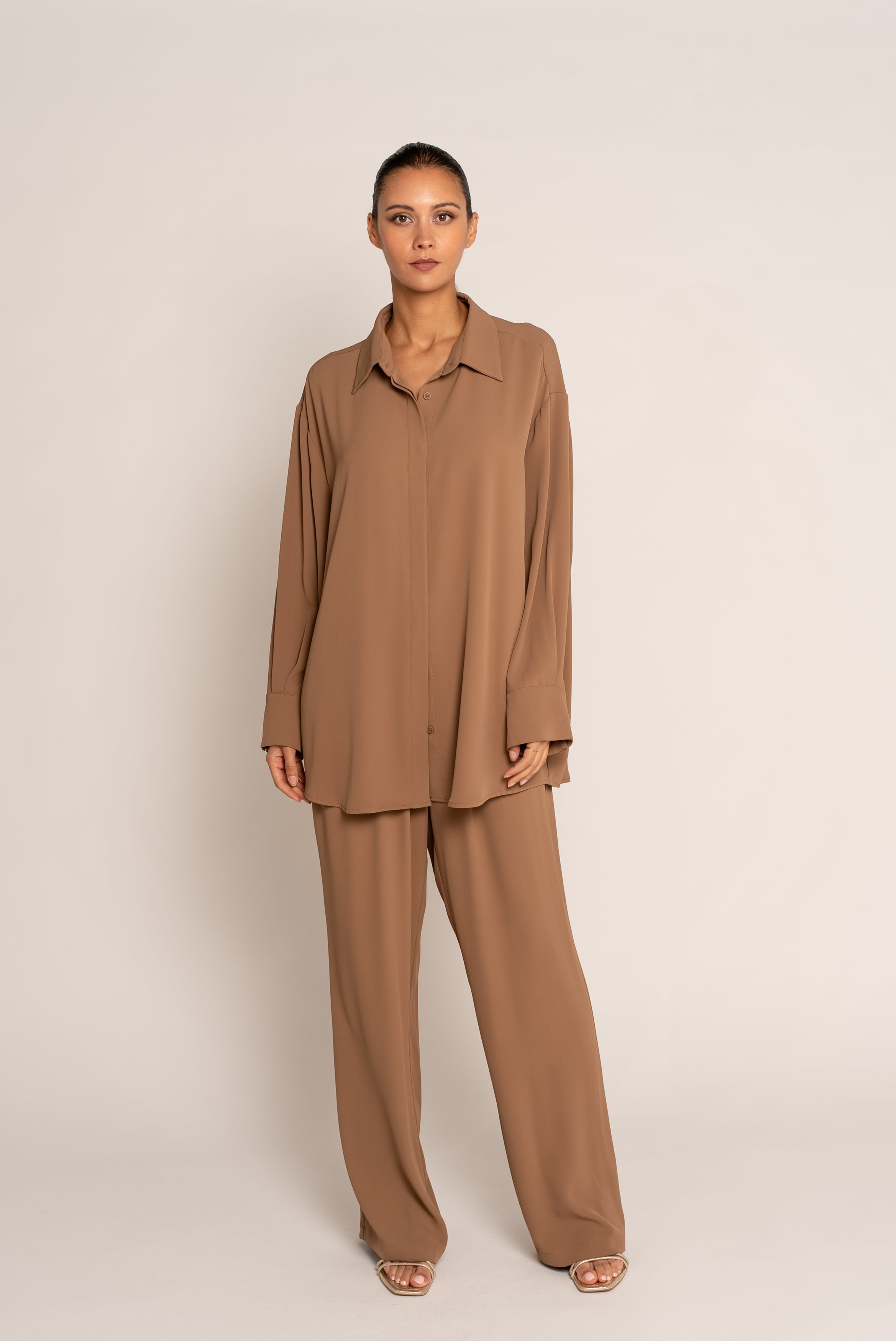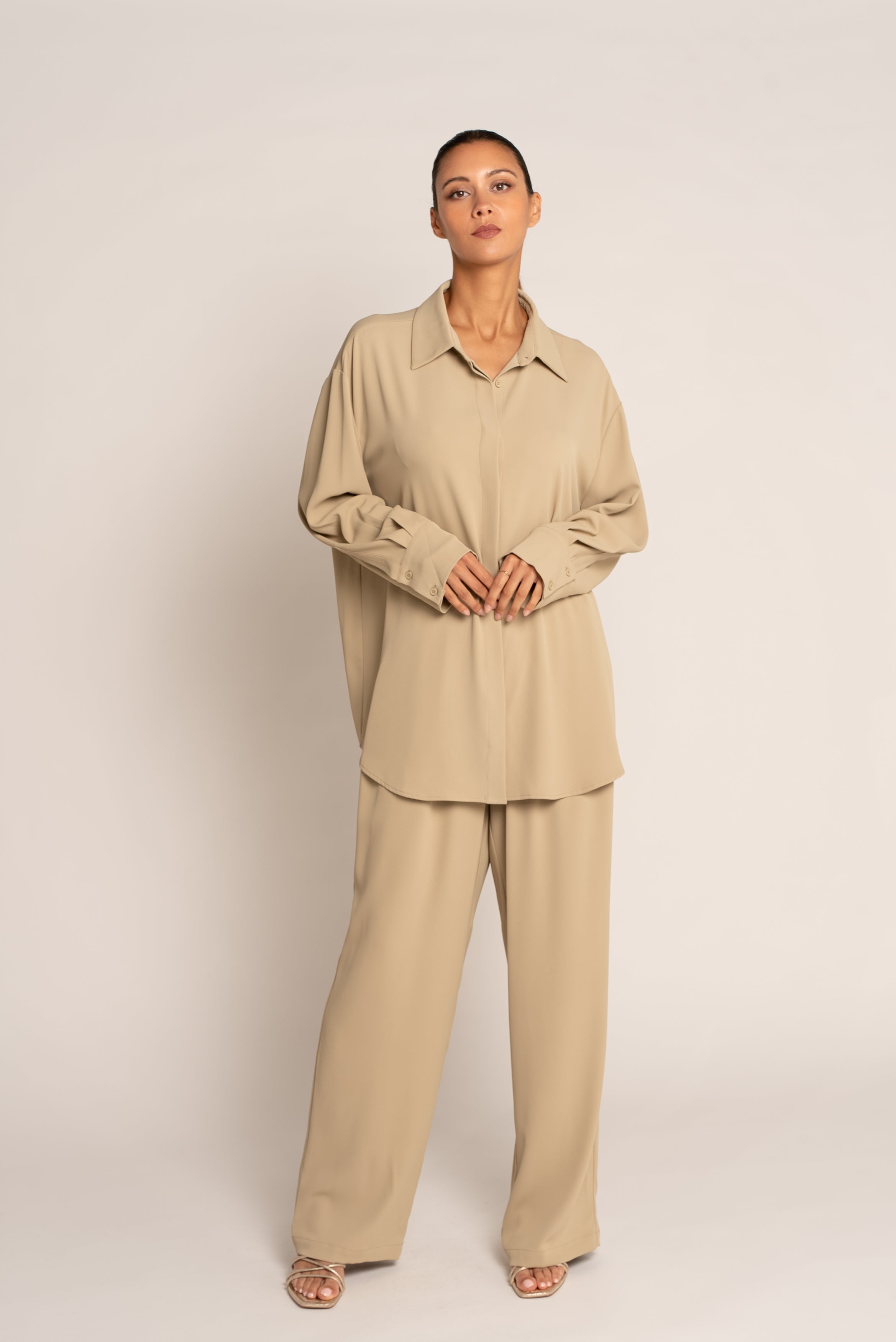 Craquez pour l’ensemble Assiya, composé de deux pièces : une chemise et un pantalon au design épuré, idéal pour l'été et la mi-saison. Confortable et léger, il s’adapte facilement à toutes vos journées, qu’elles soient décontractées ou un peu plus habillées.