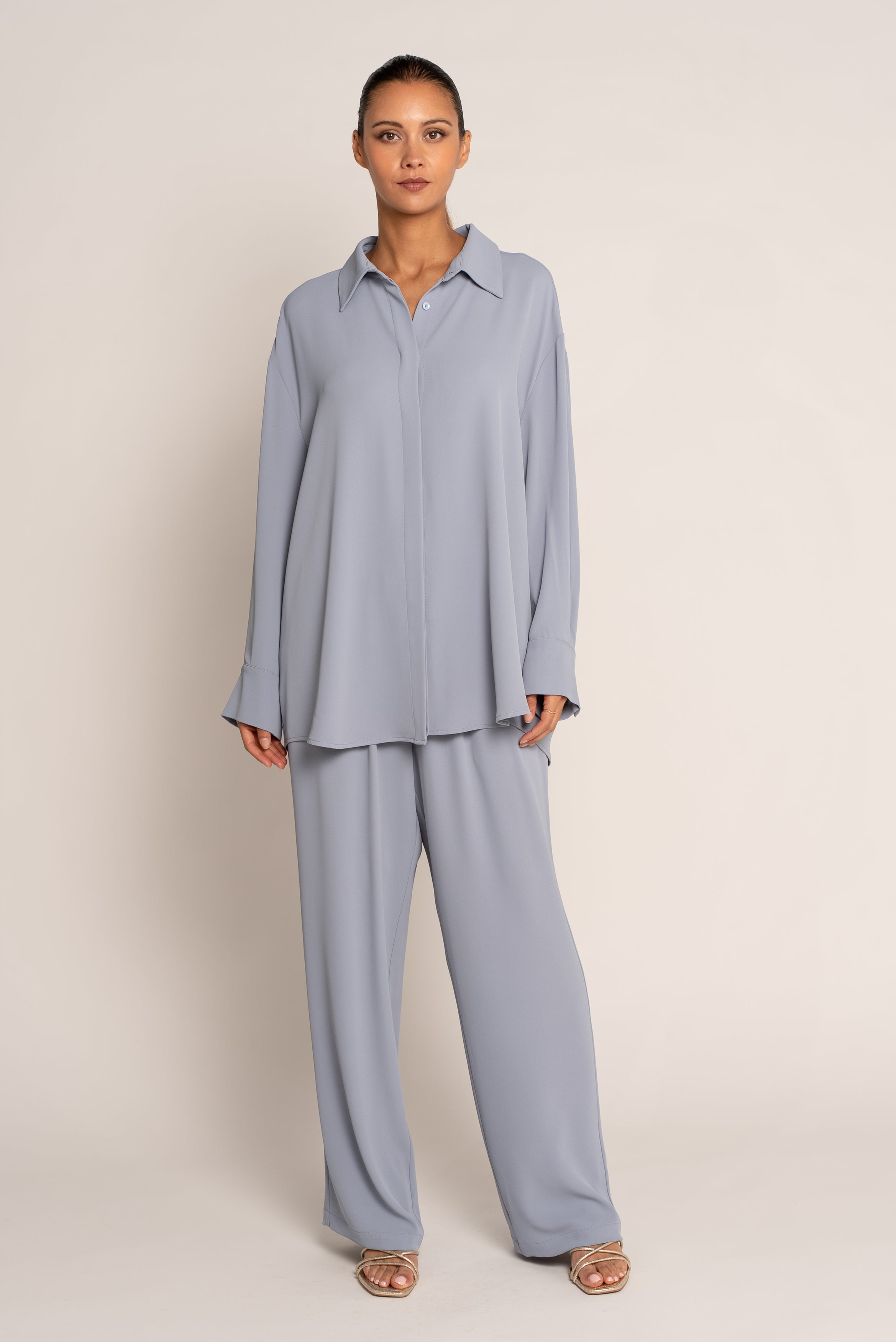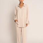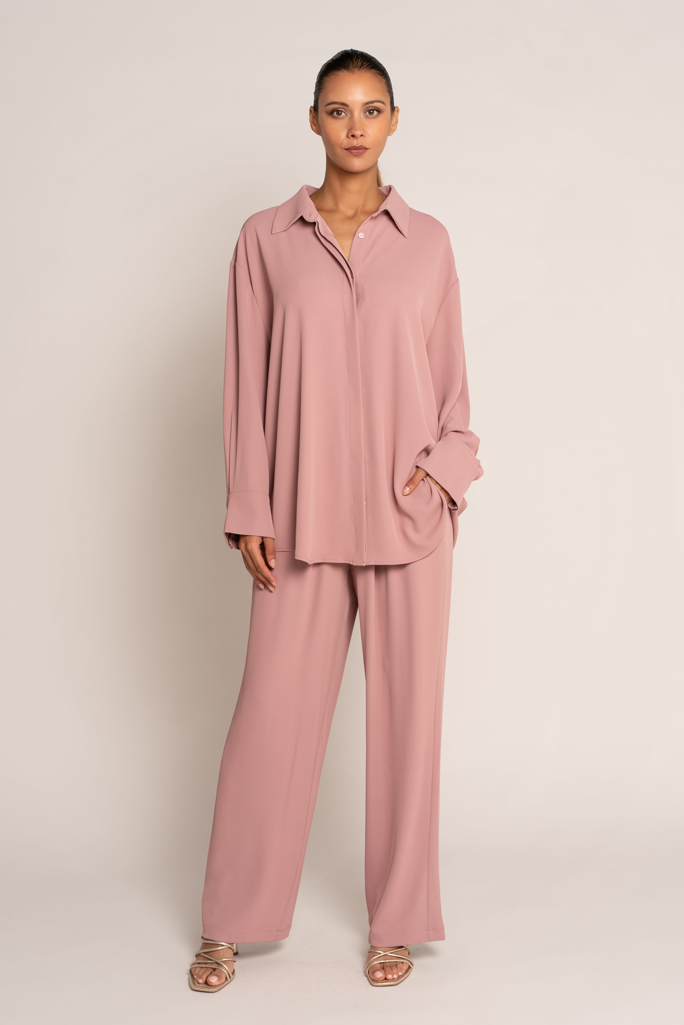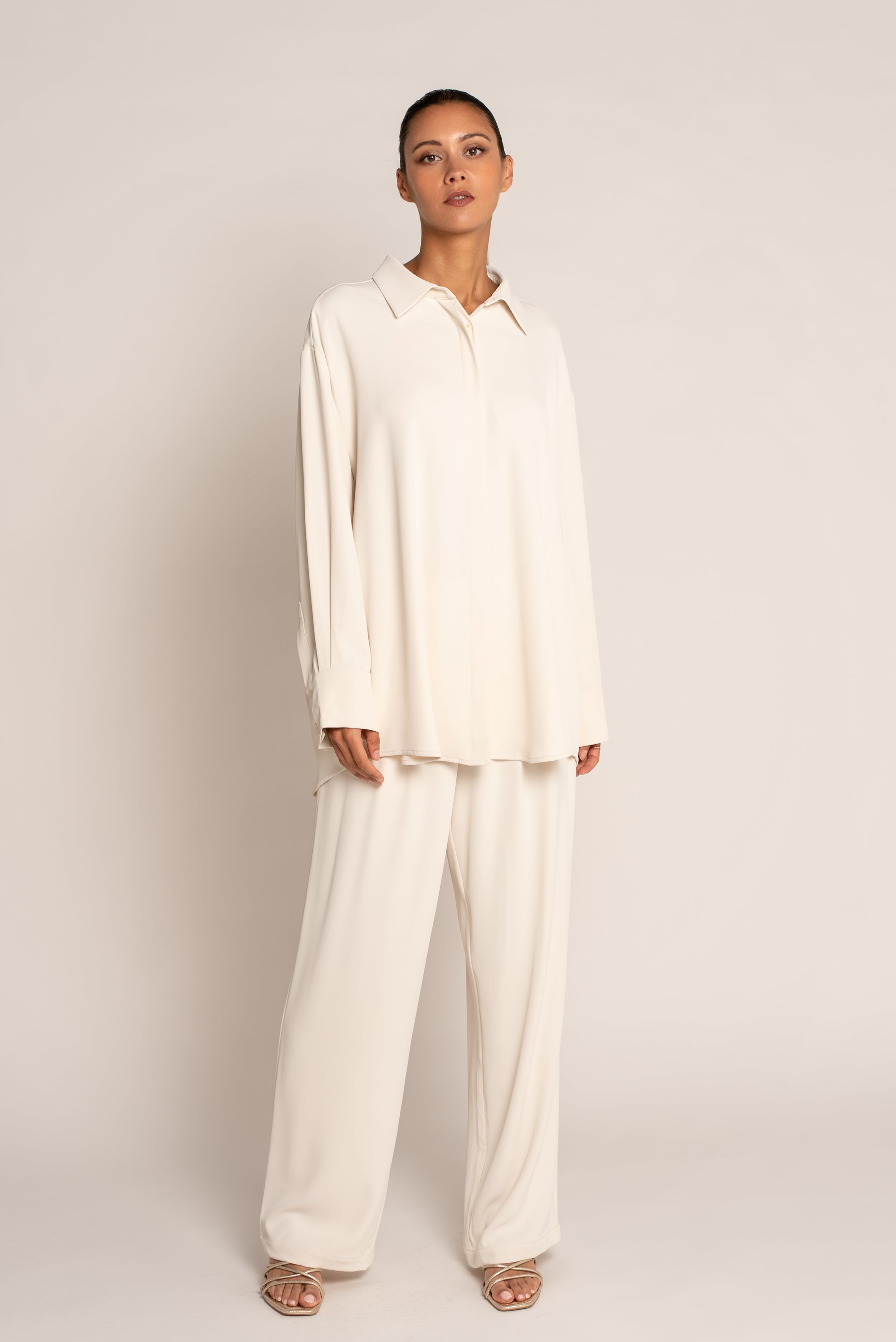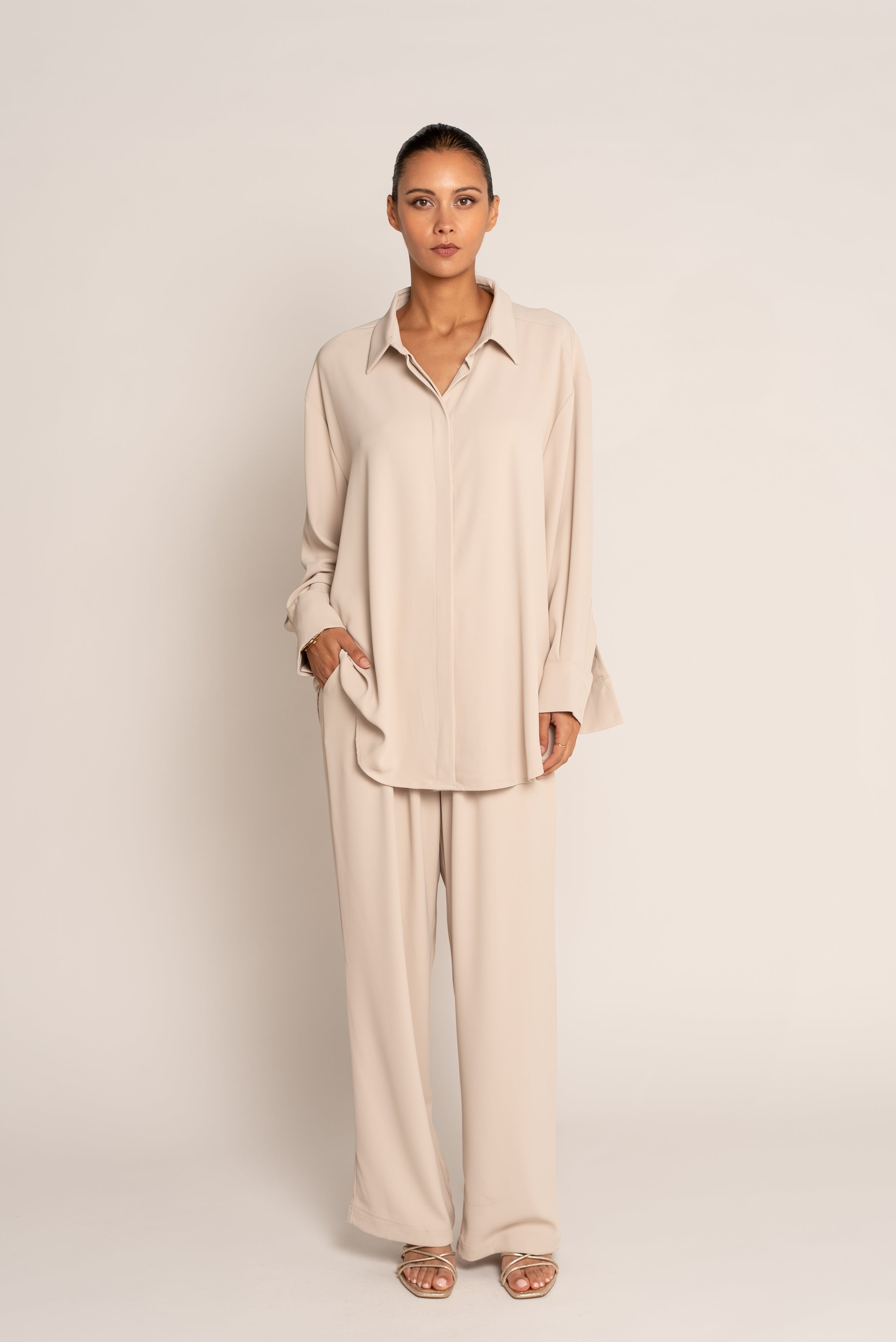 Craquez pour l’ensemble Assiya, composé de deux pièces : une chemise et un pantalon au design épuré, idéal pour l'été et la mi-saison. Confortable et léger, il s’adapte facilement à toutes vos journées, qu’elles soient décontractées ou un peu plus habillées.