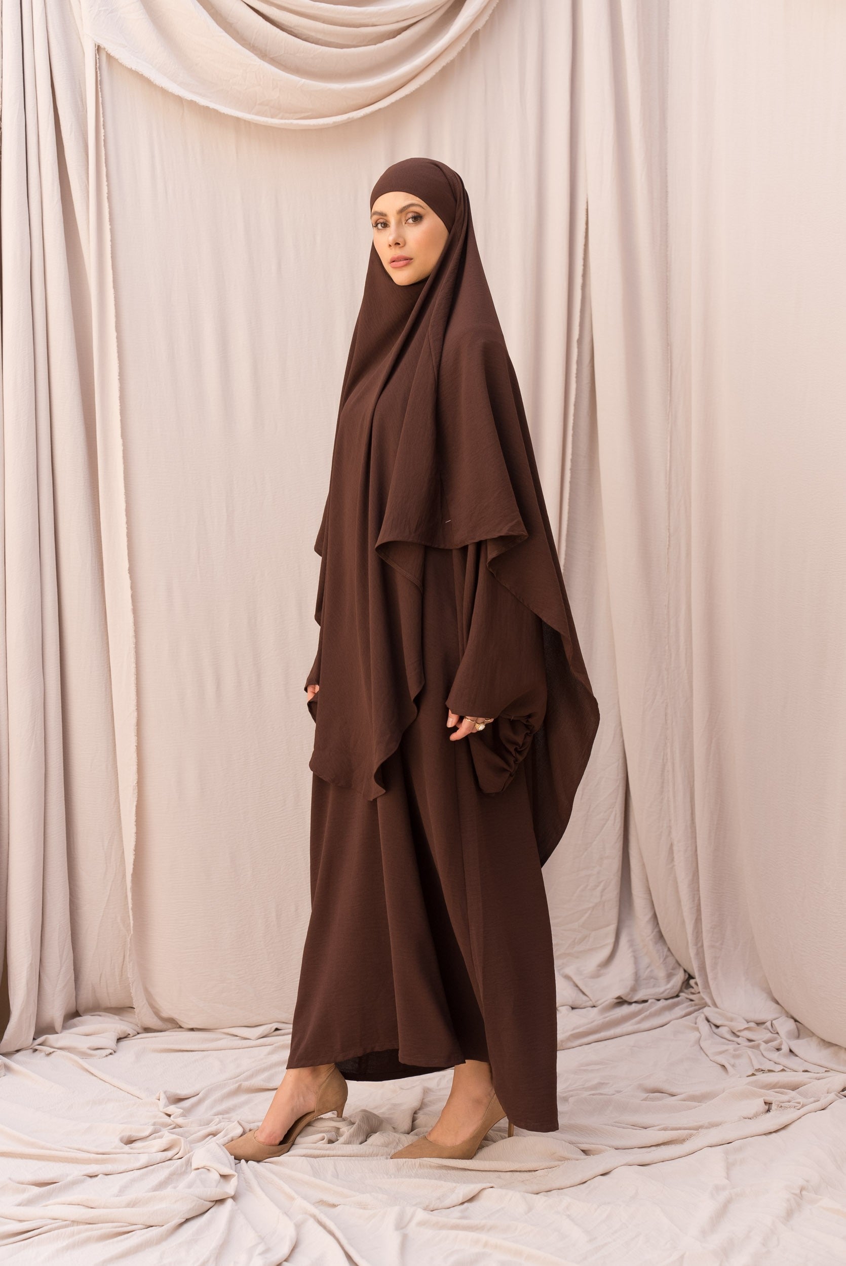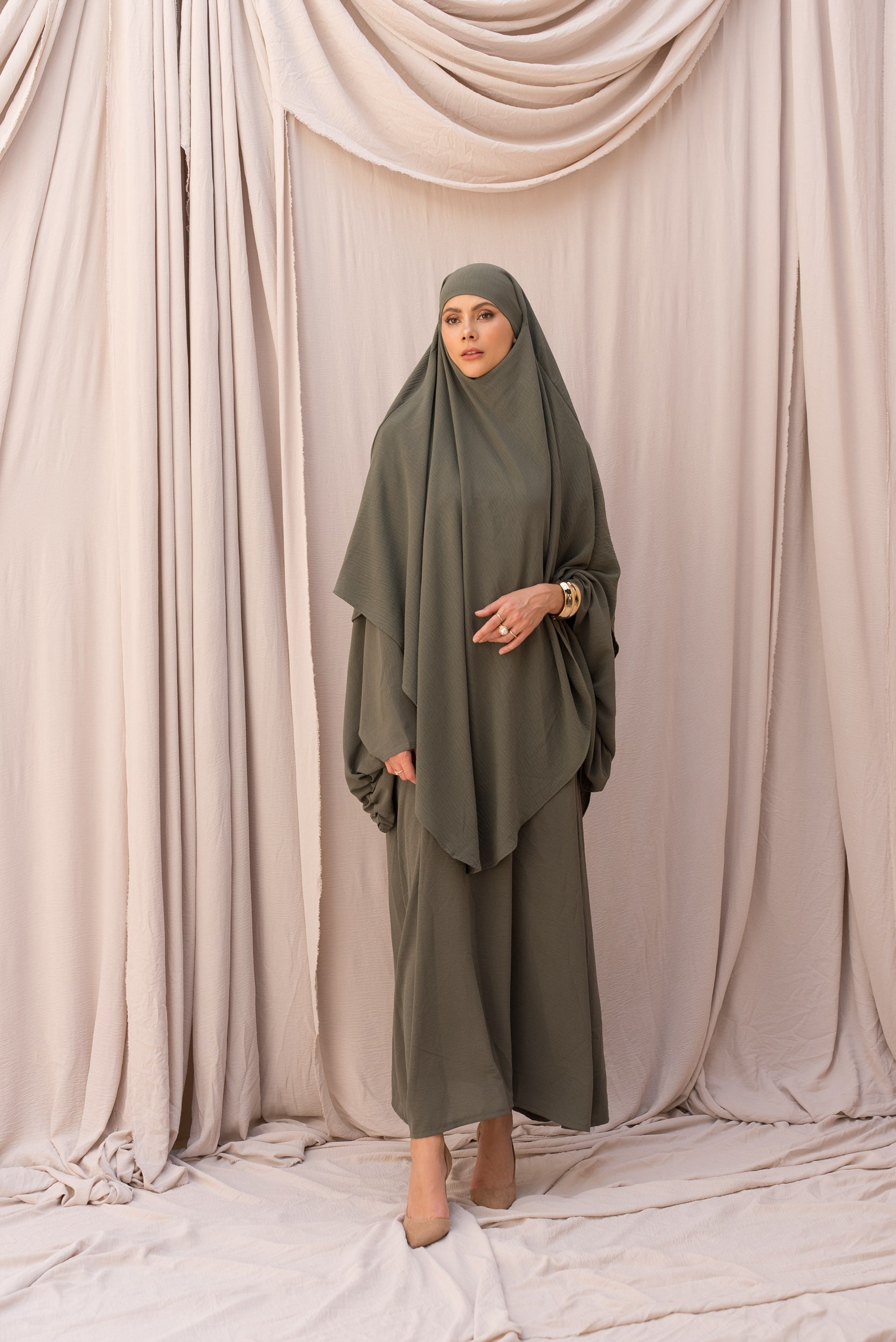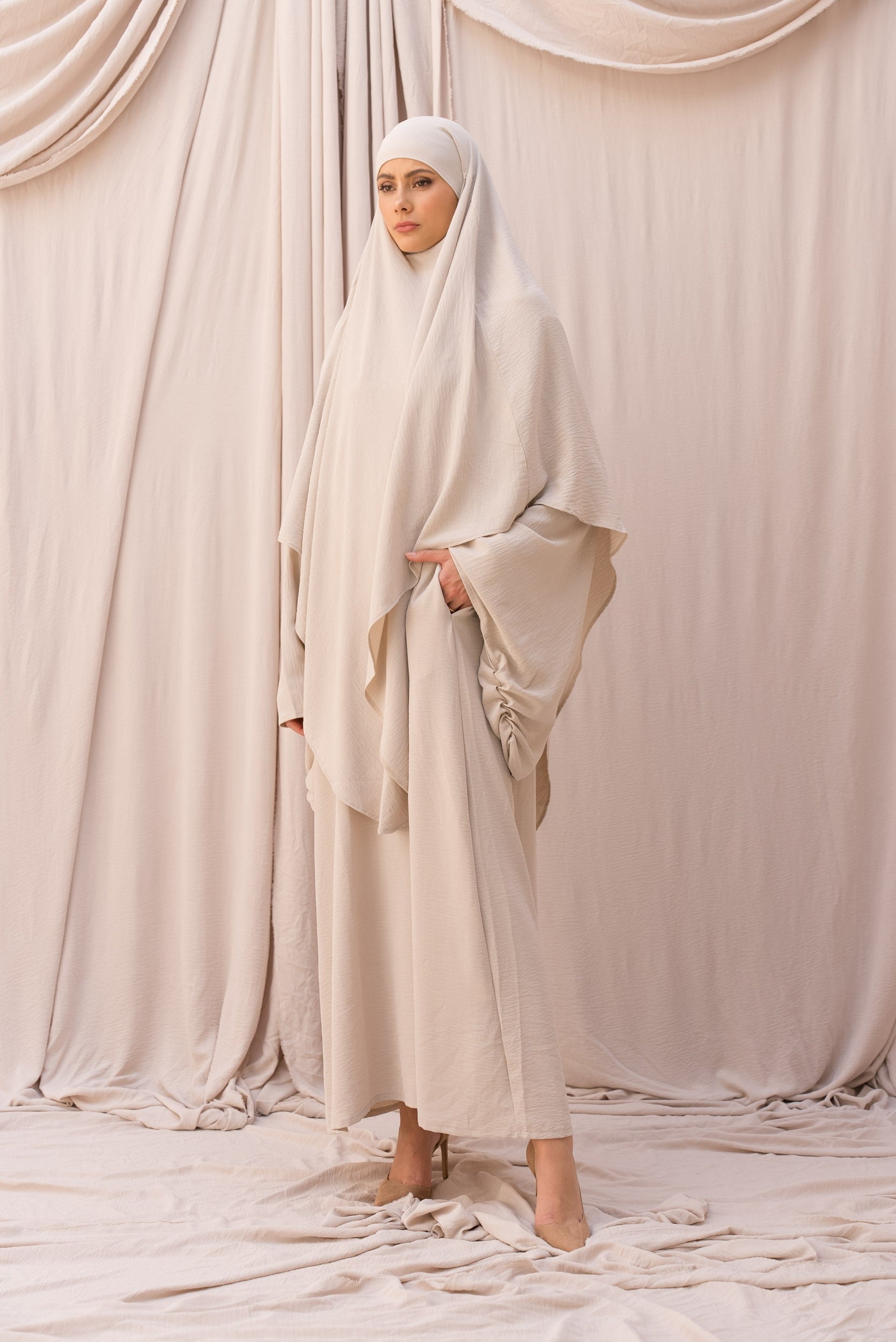 L’ensemble Jalane est composé d’une robe et d’un khimar en soie de Médine. Un choix idéal pour conjuguer style et pudeur au quotidien.
