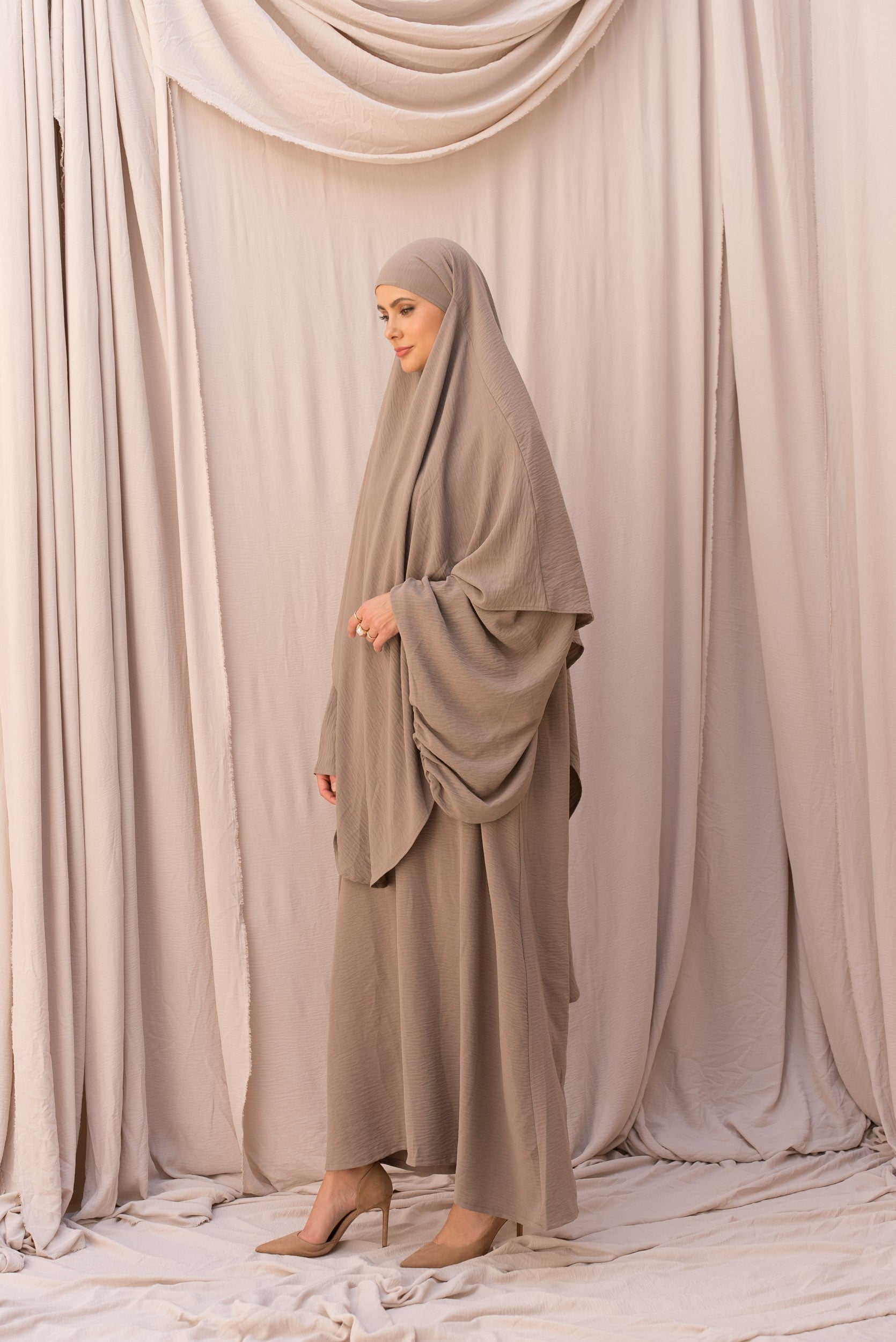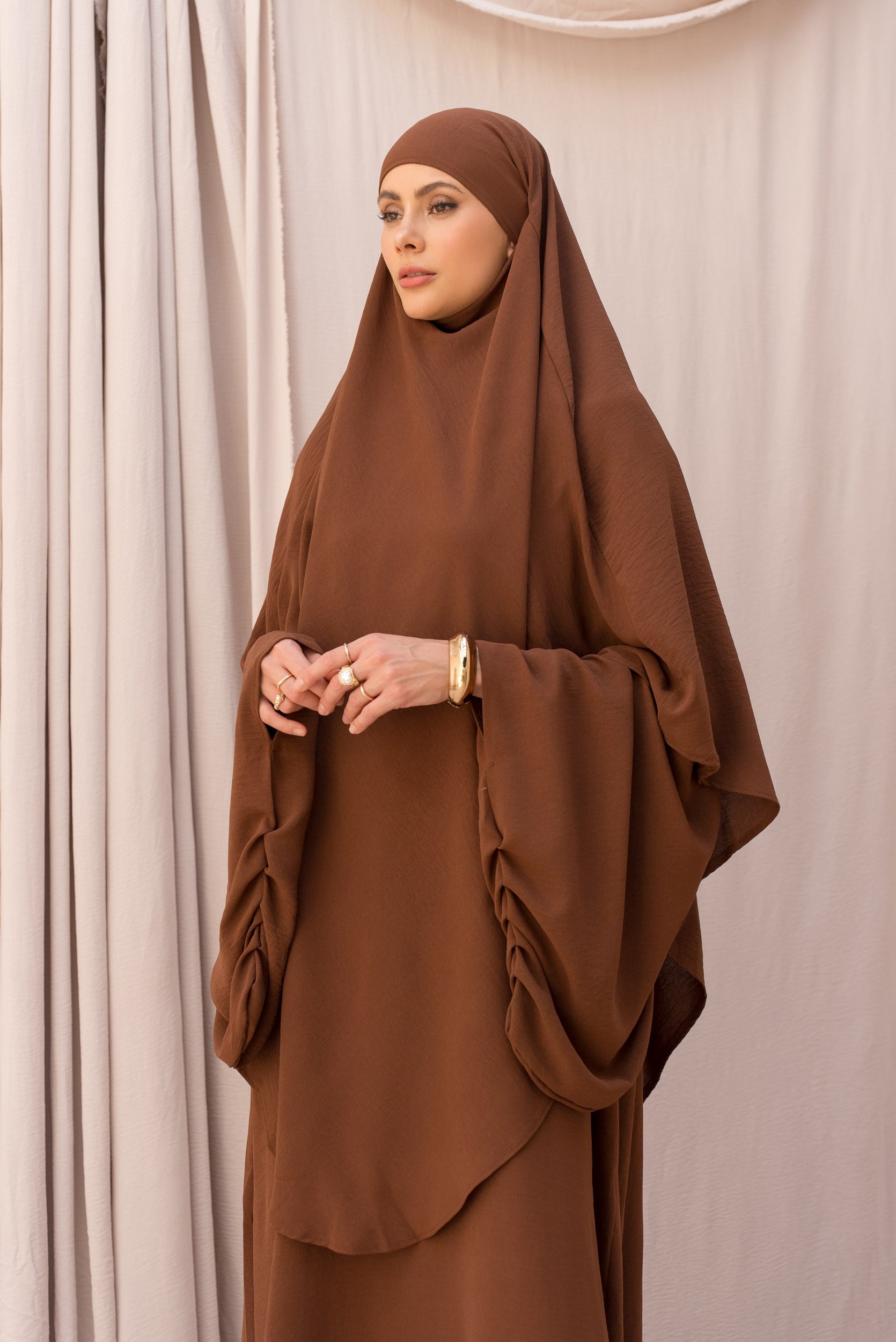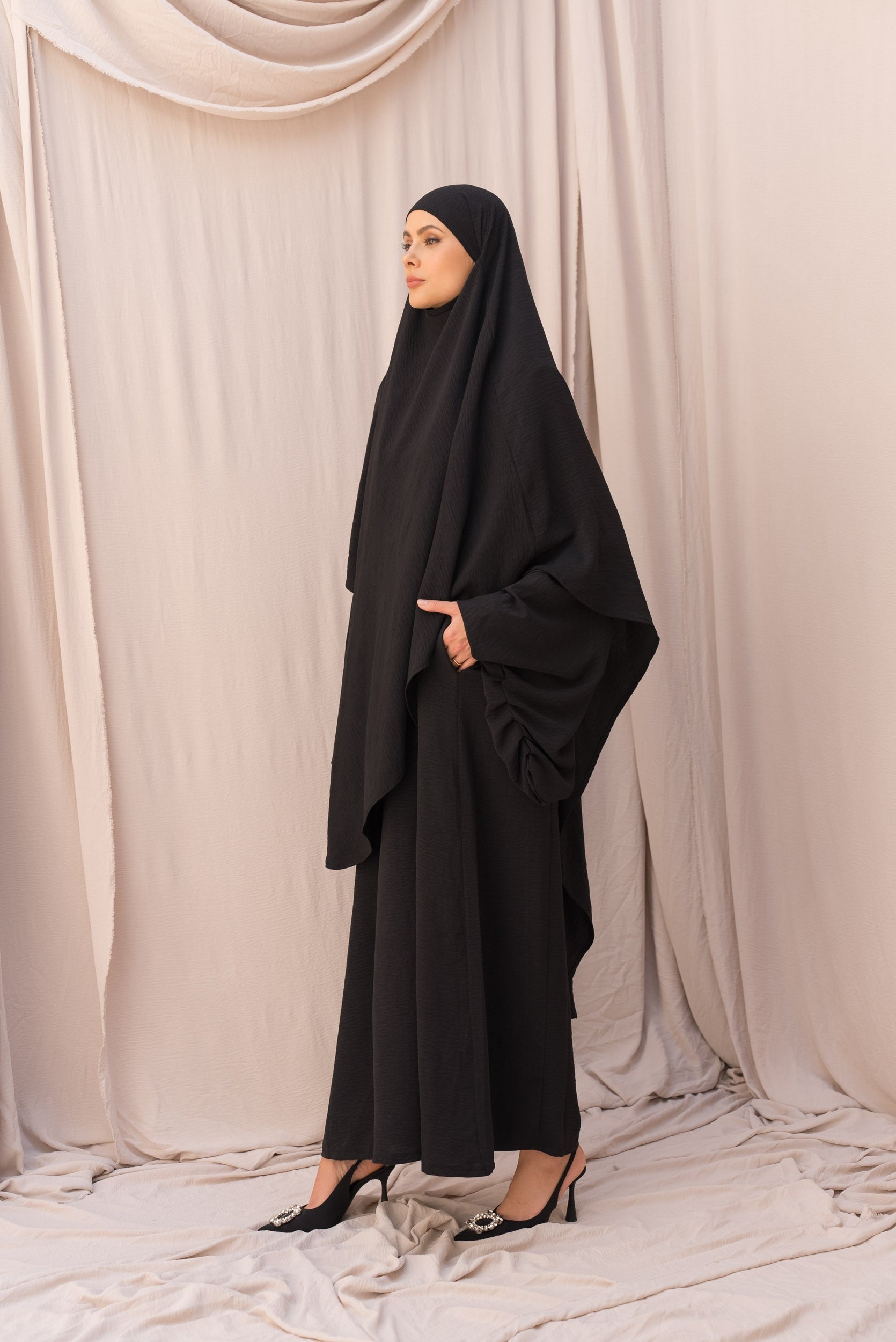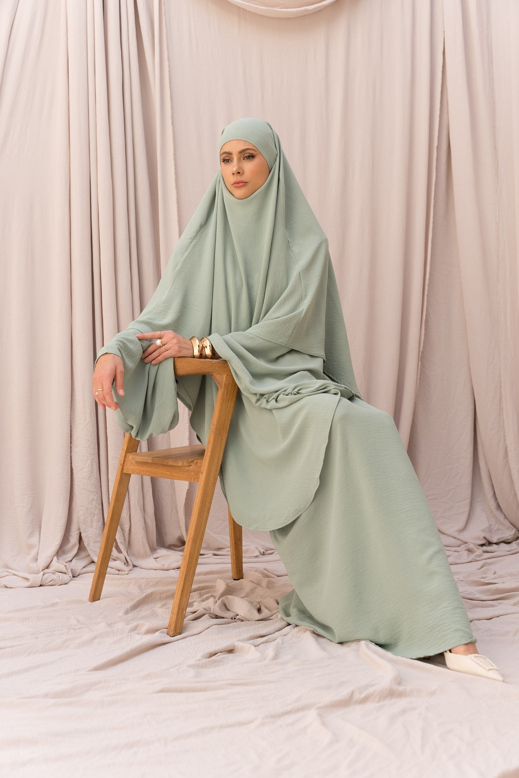 L’ensemble Jalane est composé d’une robe et d’un khimar en soie de Médine. Un choix idéal pour conjuguer style et pudeur au quotidien.
