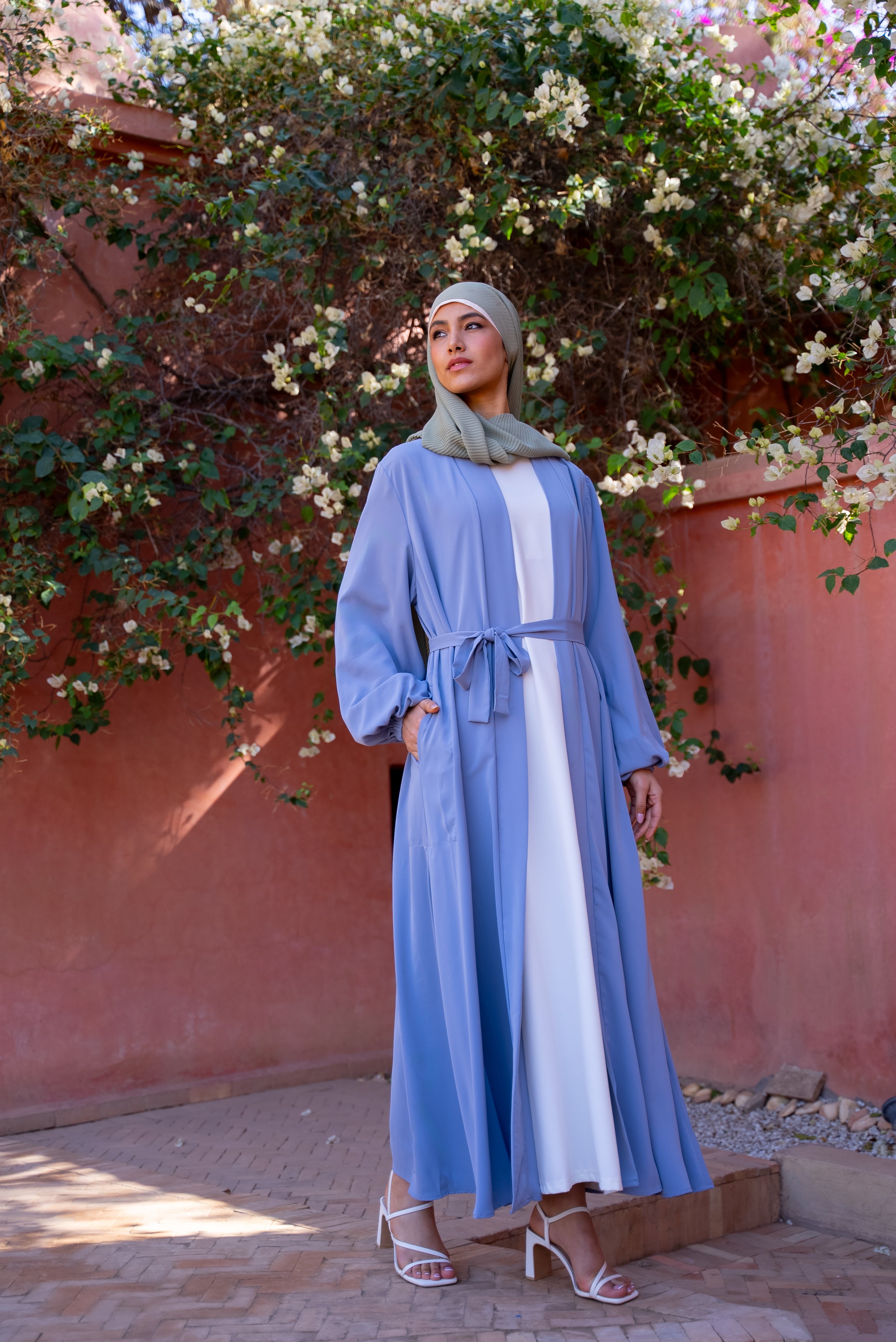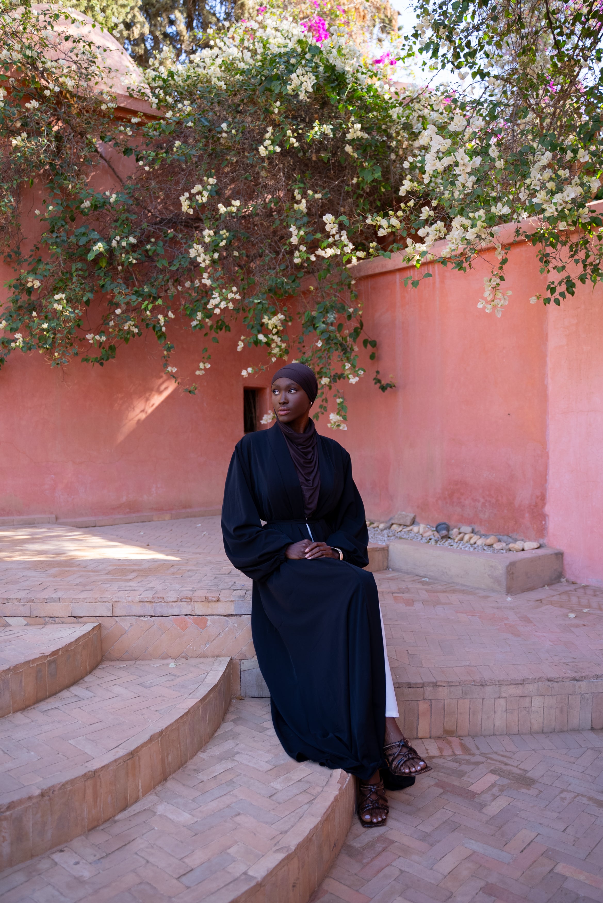 Le gilet Maissam allie sobriété et raffinement. Sa coupe droite en soie de Médine en fait une pièce facile à superposer sur une abaya et/ou avec un hijab pour un rendu soigné.