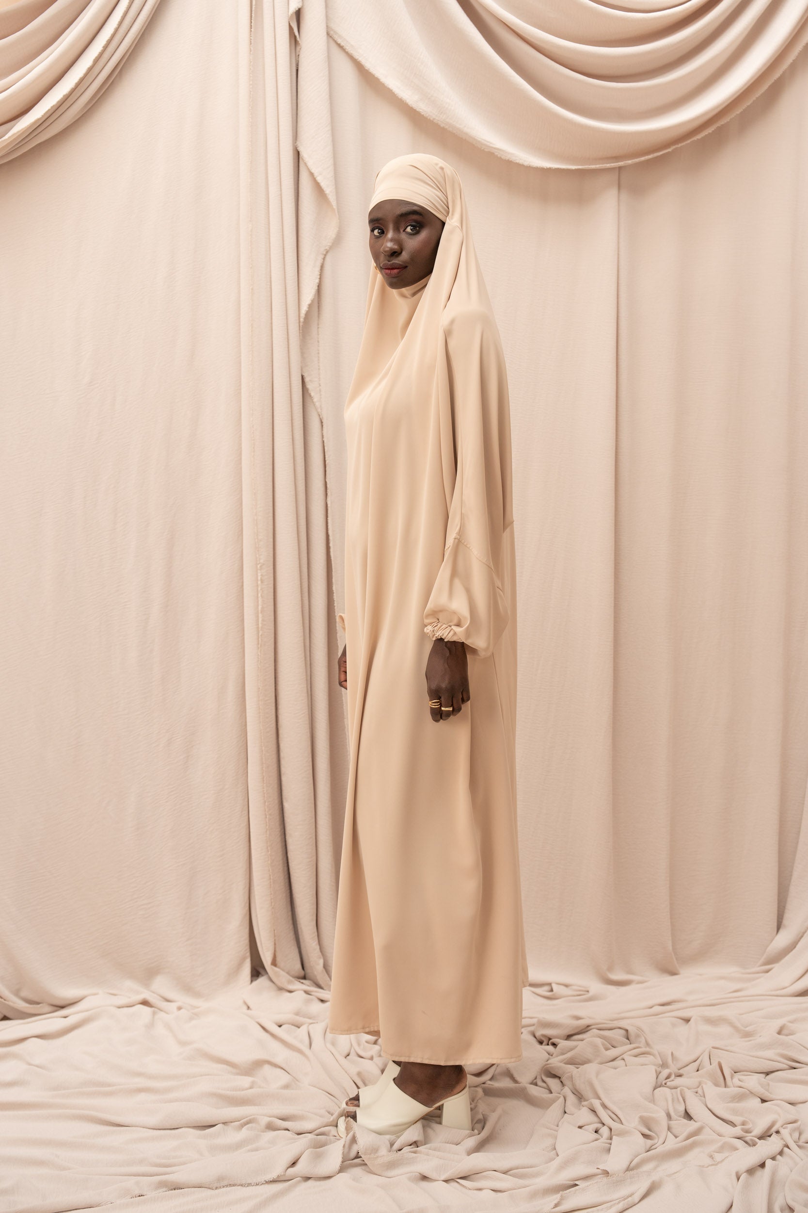 Le Jilbab Mia en soie de Médine, est un modèle une pièce qui allie simplicité et confort. Idéal pour le quotidien grâce à sa coupe fluide.