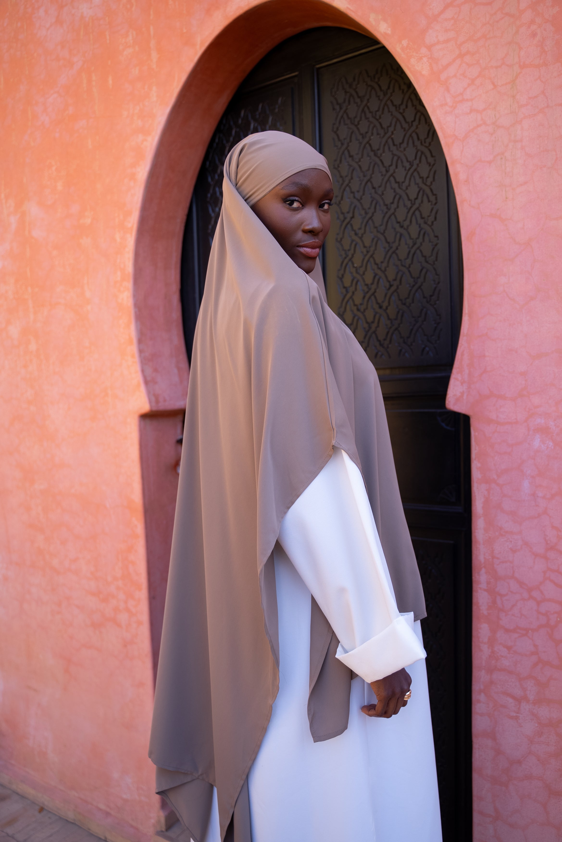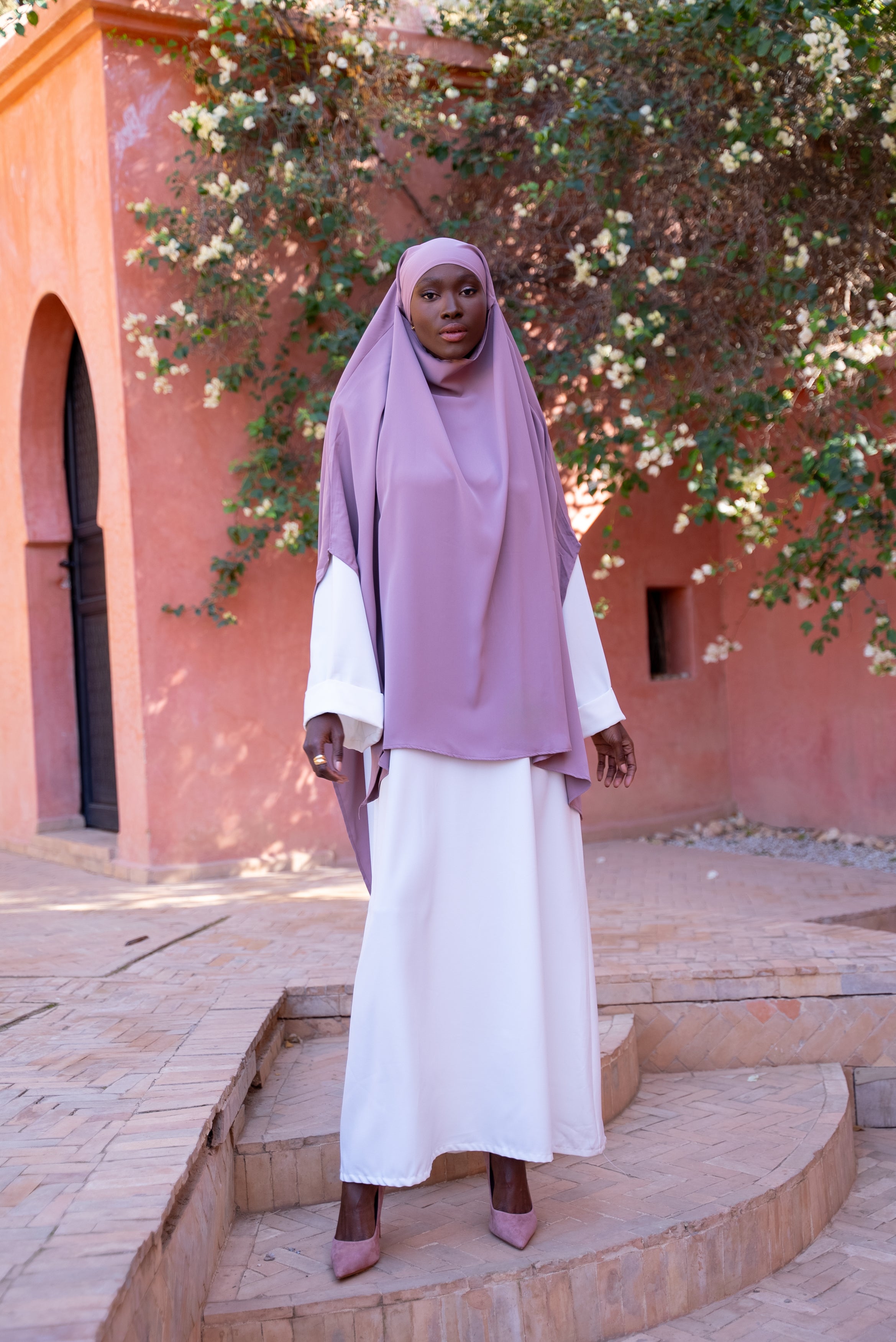 Le Khimar Maria se distingue par sa coupe carrée, une alternative moderne à la coupe pointue classique. Sa matière en soie de Médine lui confère une allure élégante et fluide. Idéale pour sublimer vos tenues avec originalité.