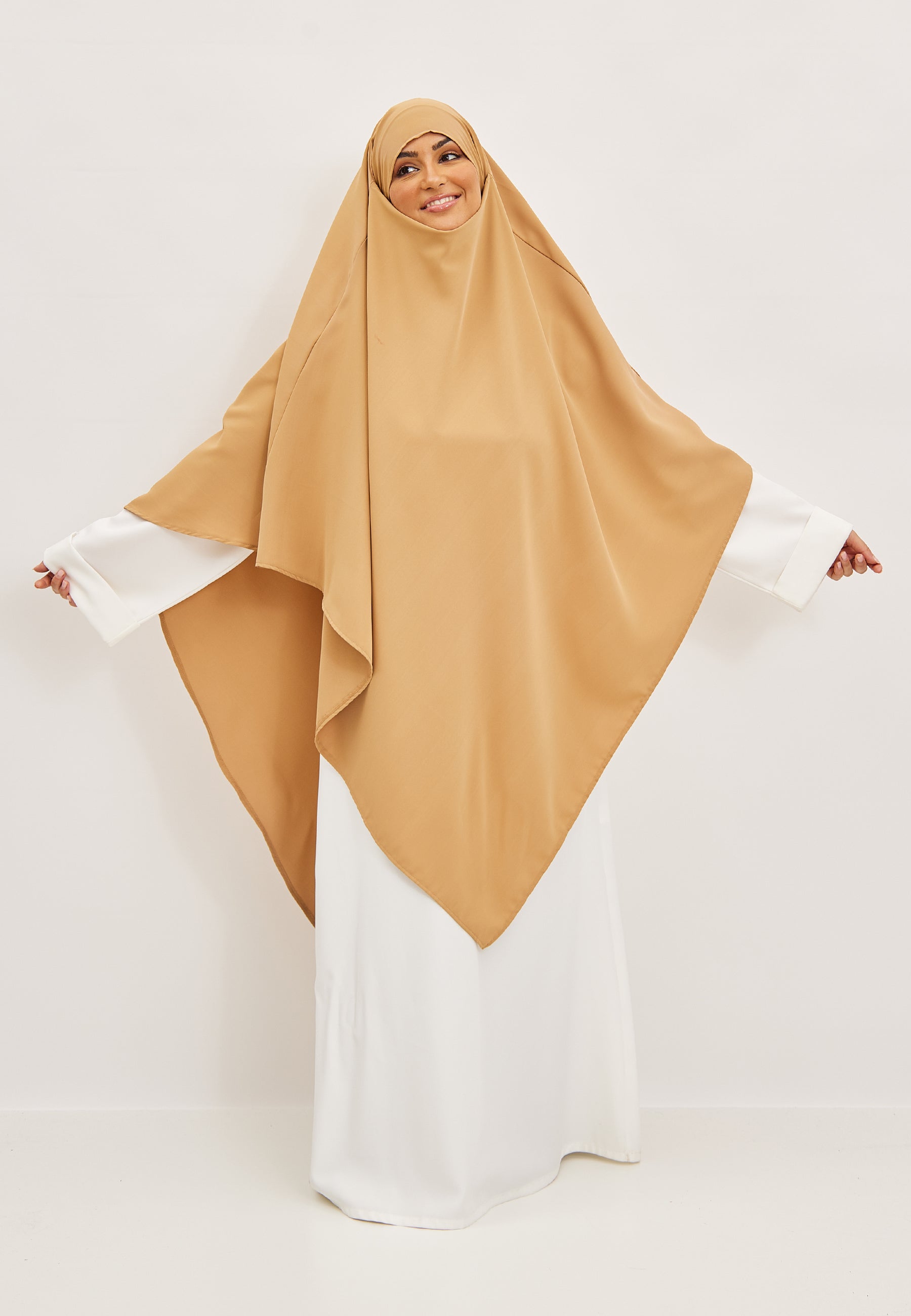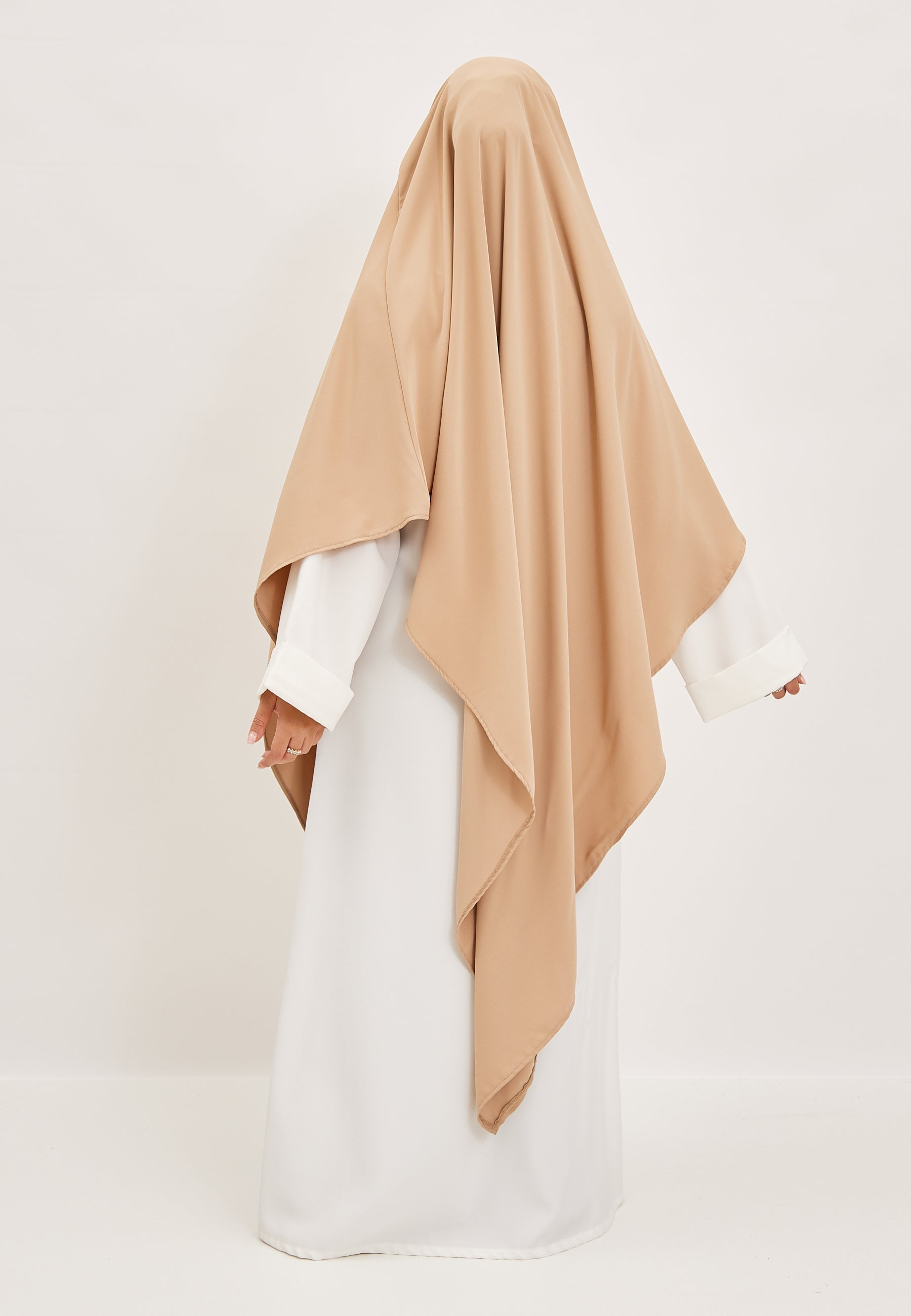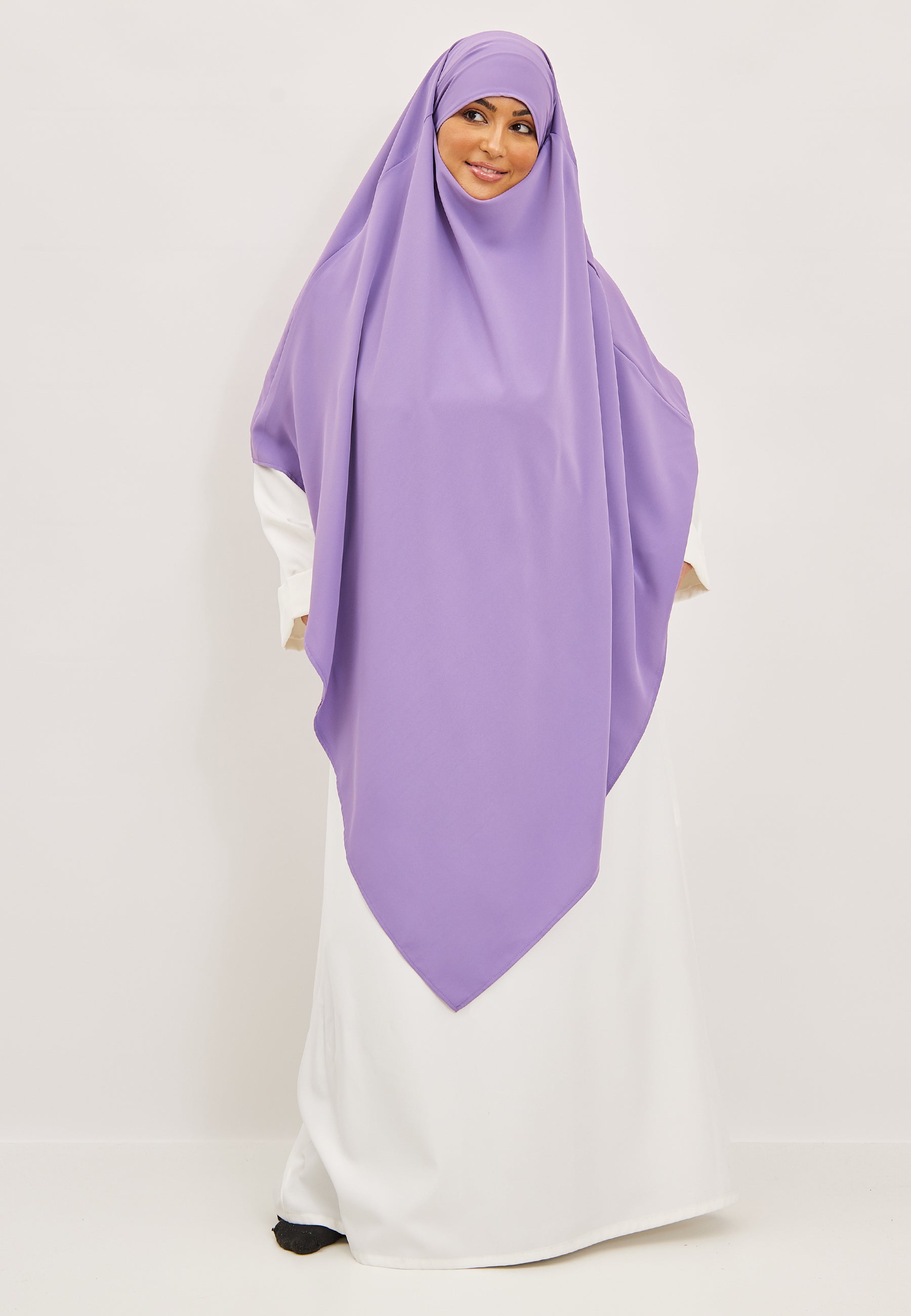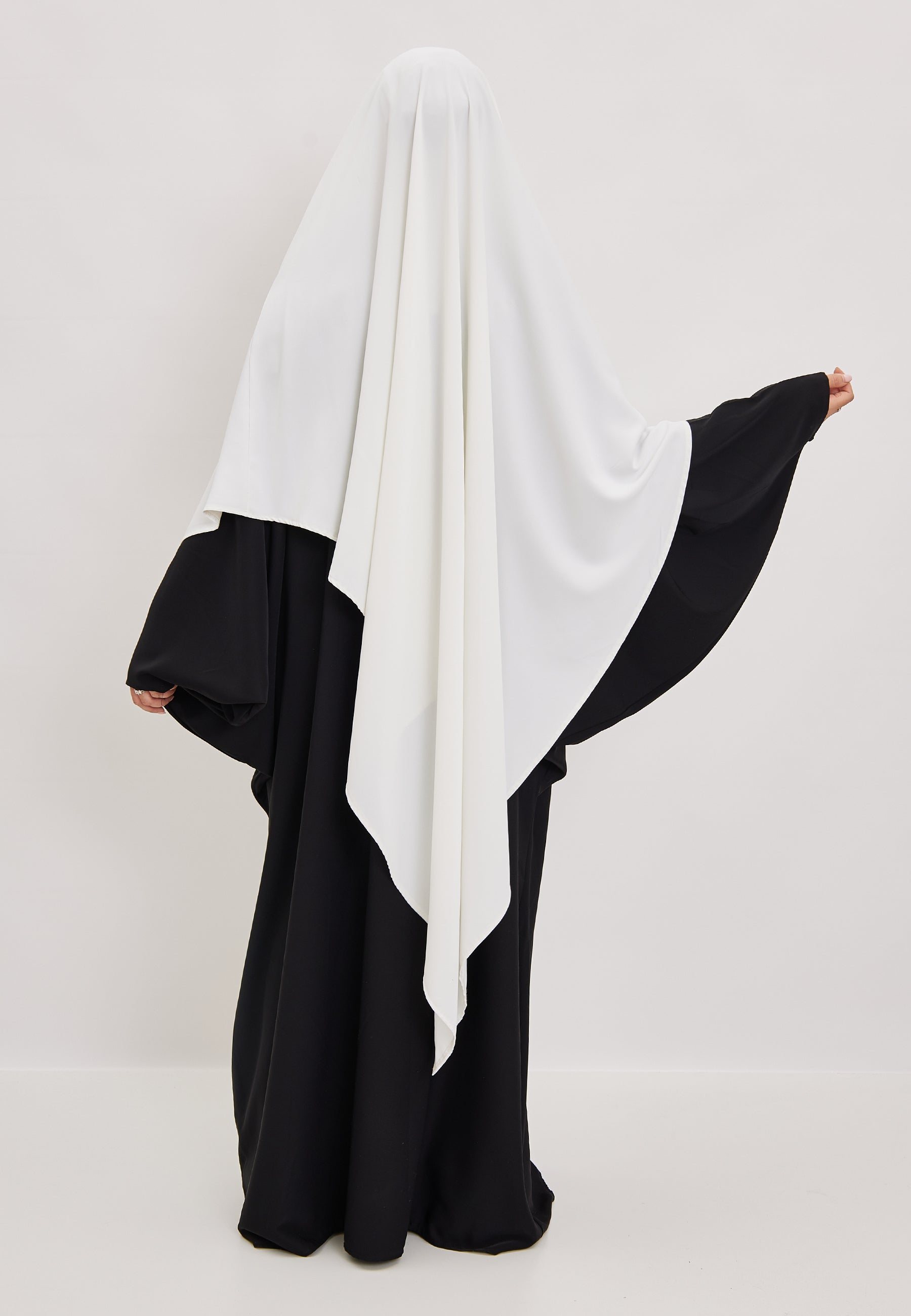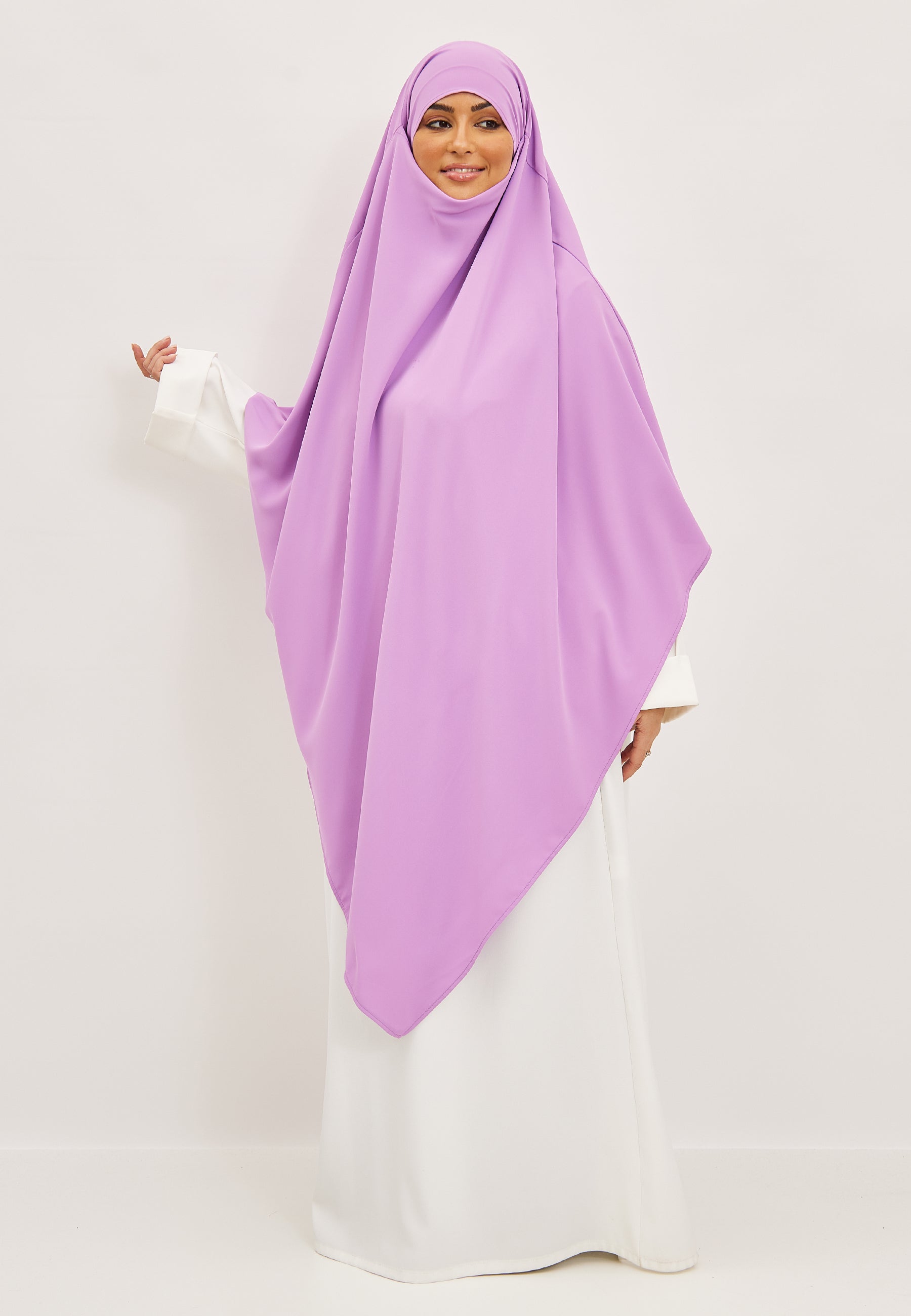 Le khimar Maya est un khimar long et pointu en soie de Médine, idéal pour une couverture élégante et raffinée.