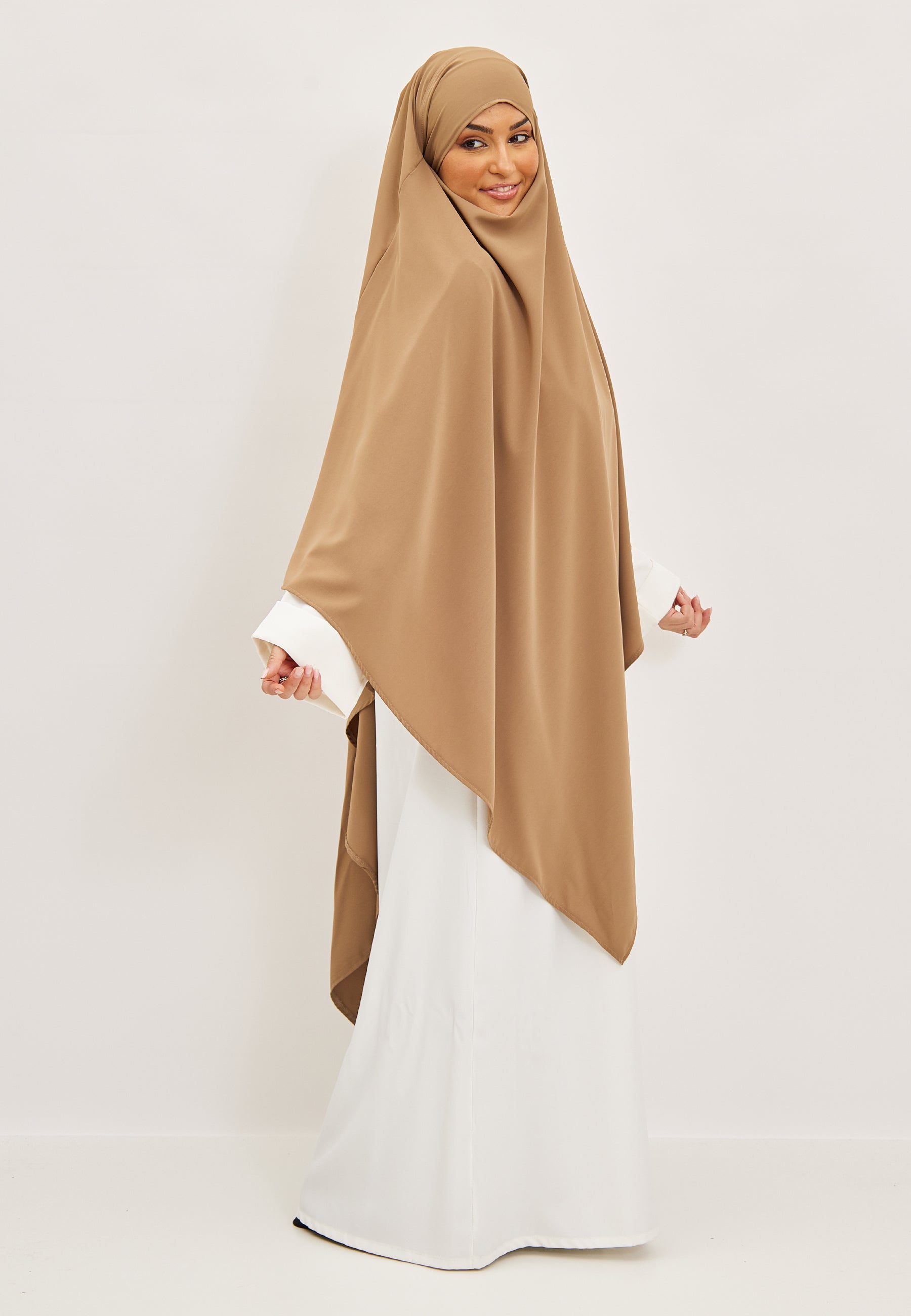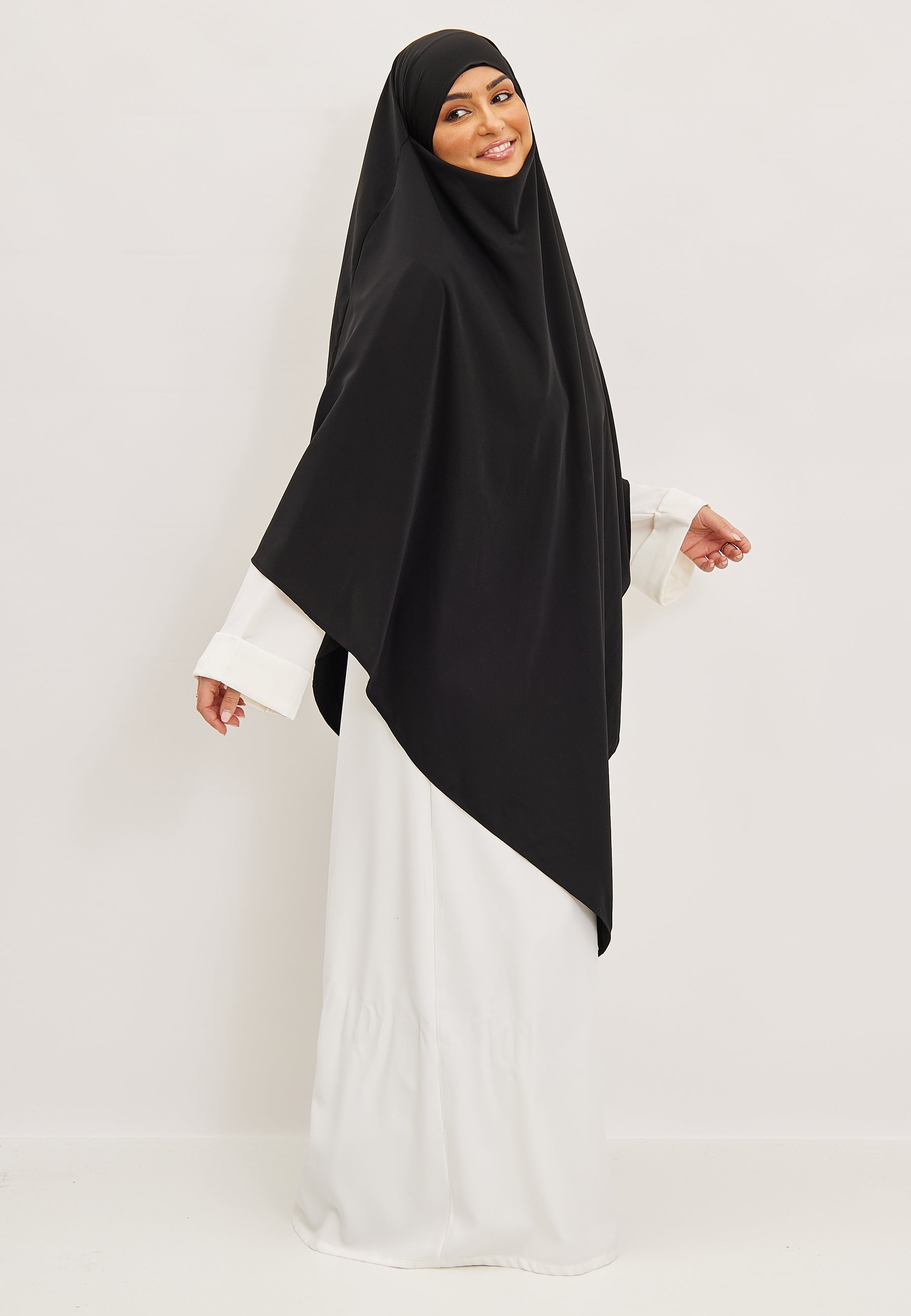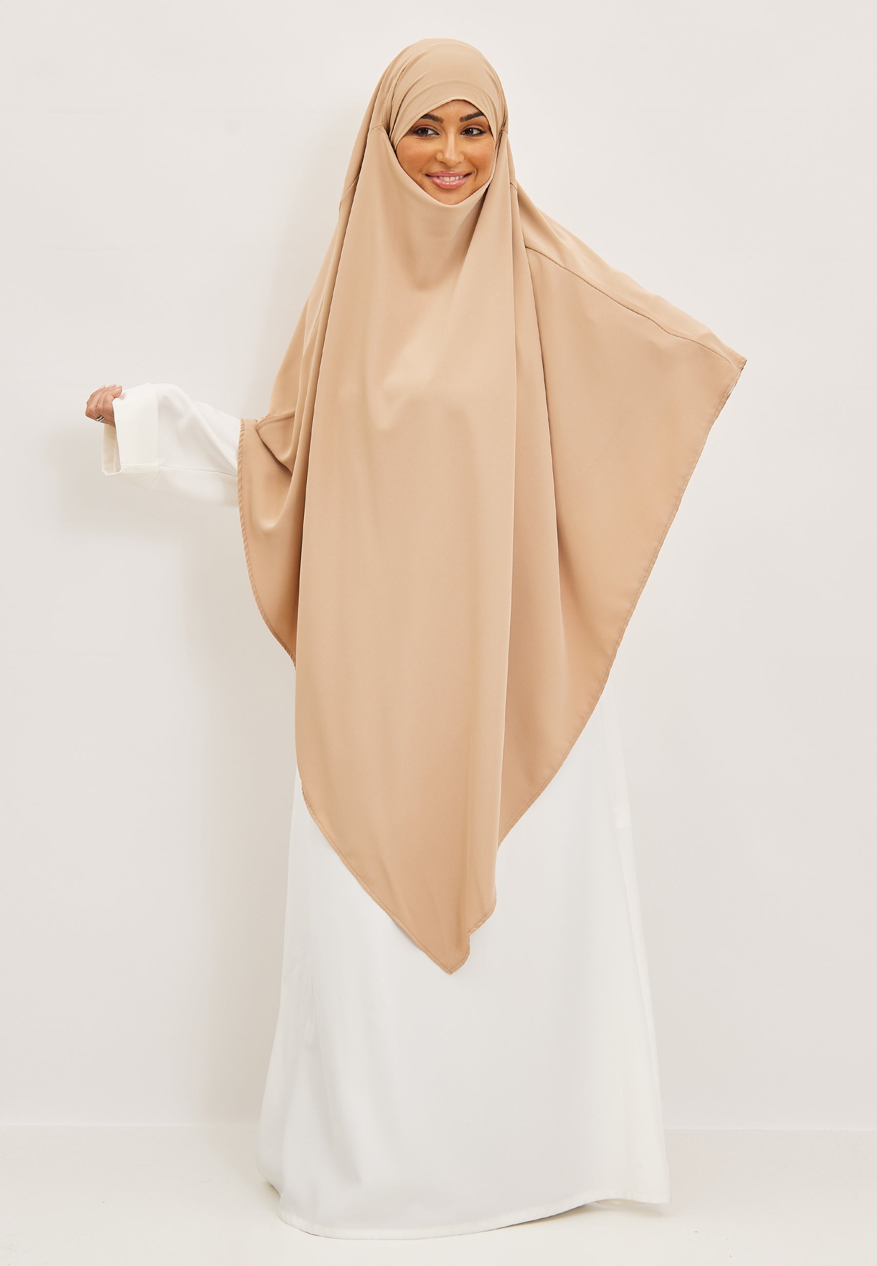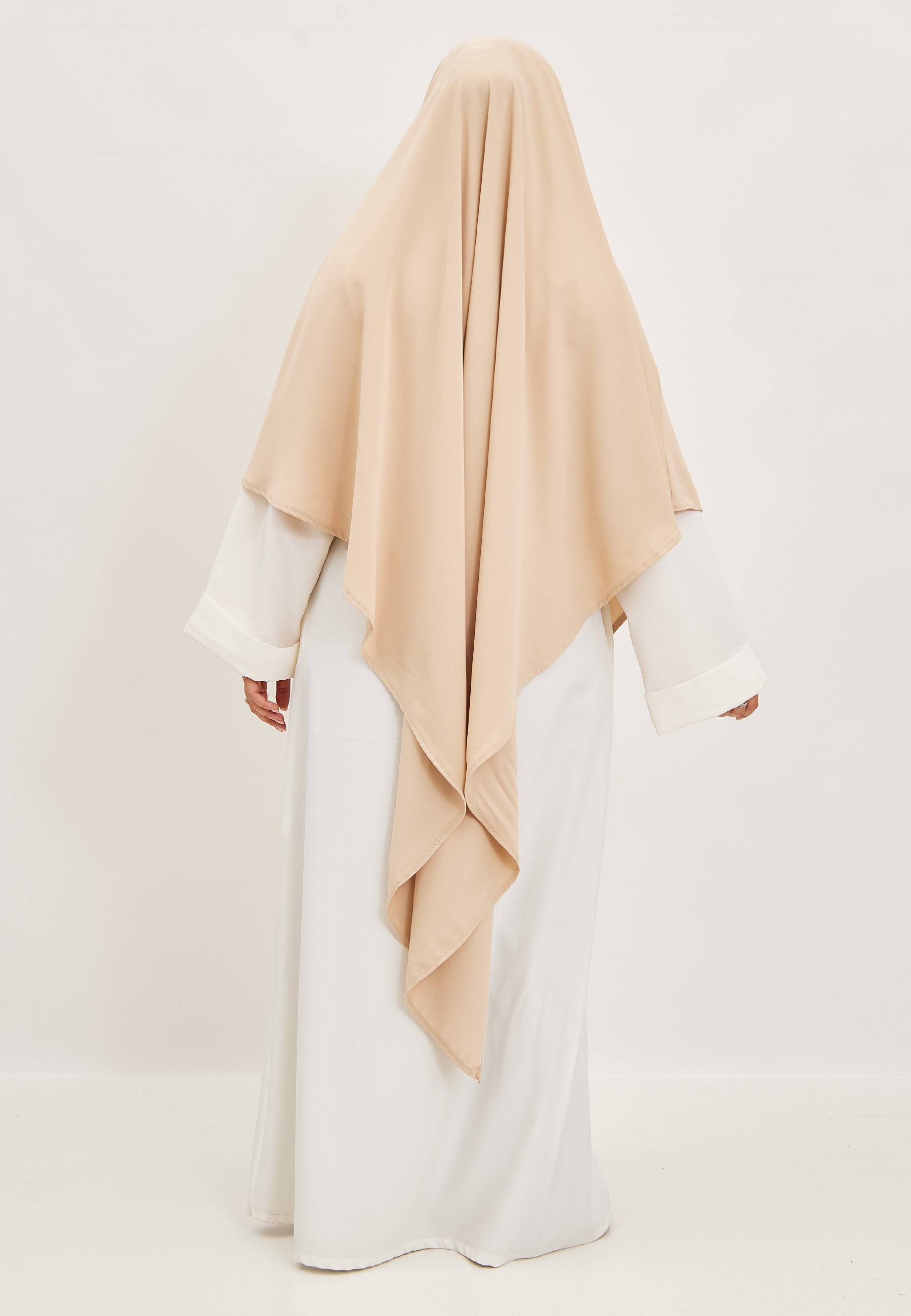 Le khimar Maya est un khimar long et pointu en soie de Médine, idéal pour une couverture élégante et raffinée.