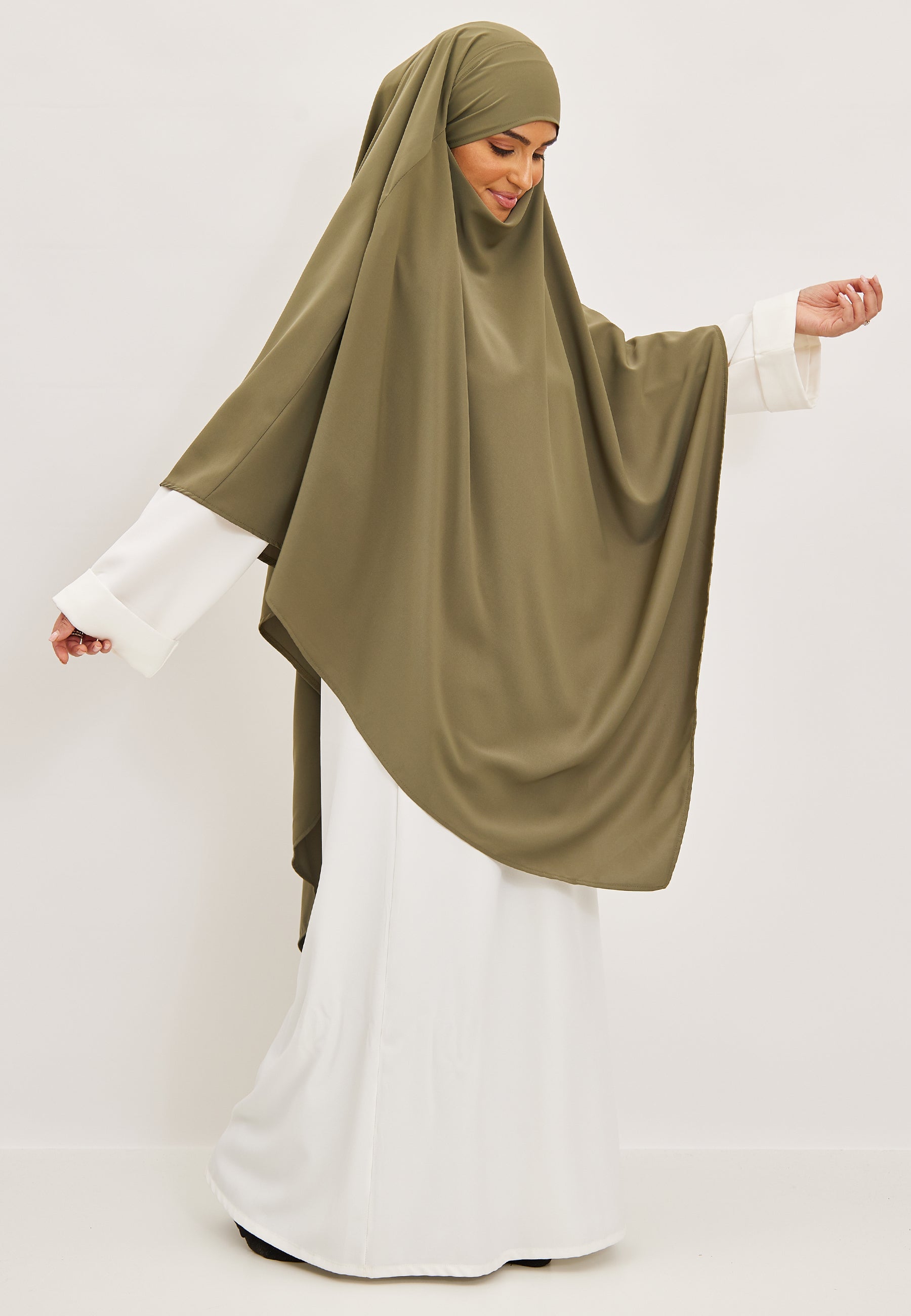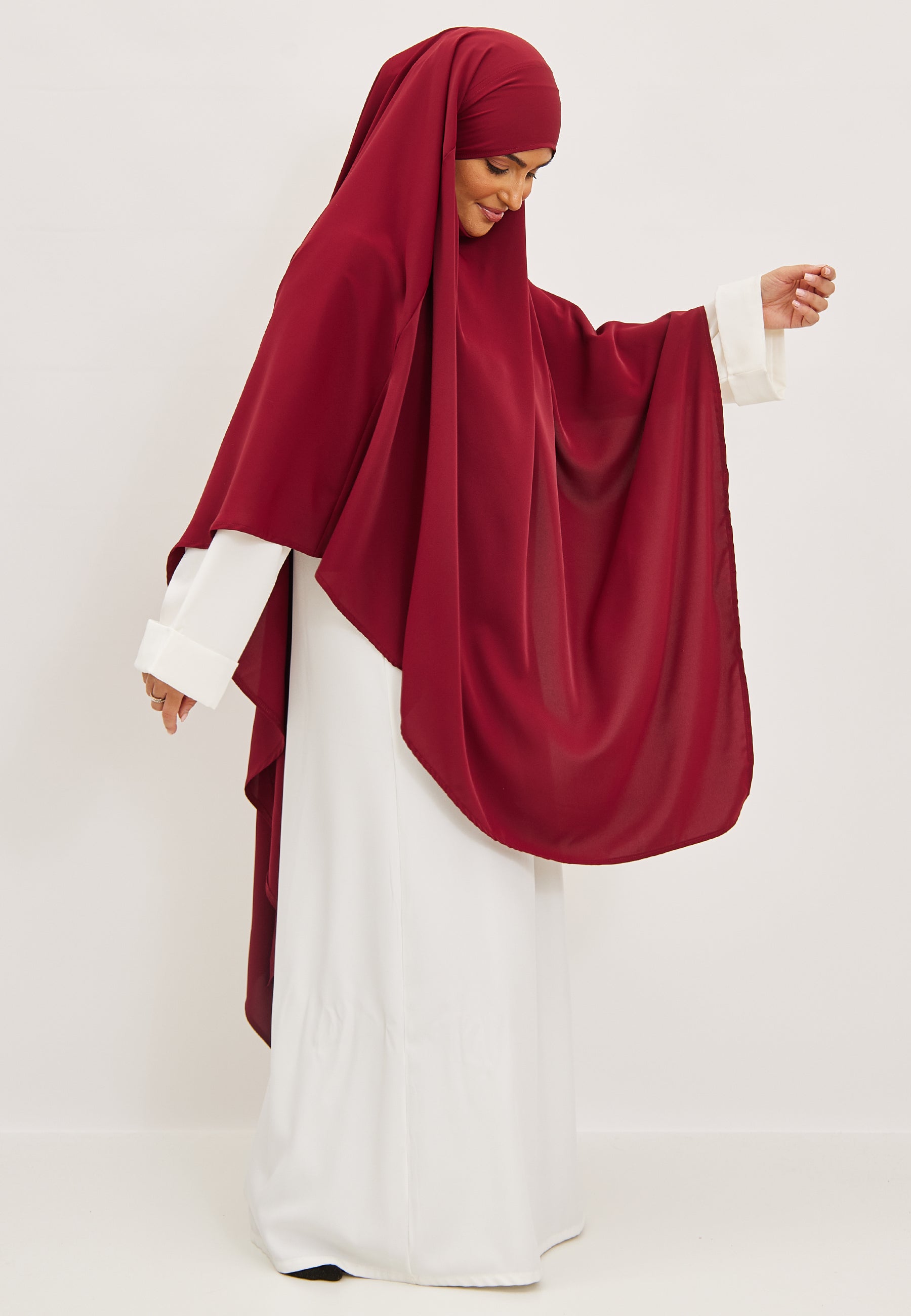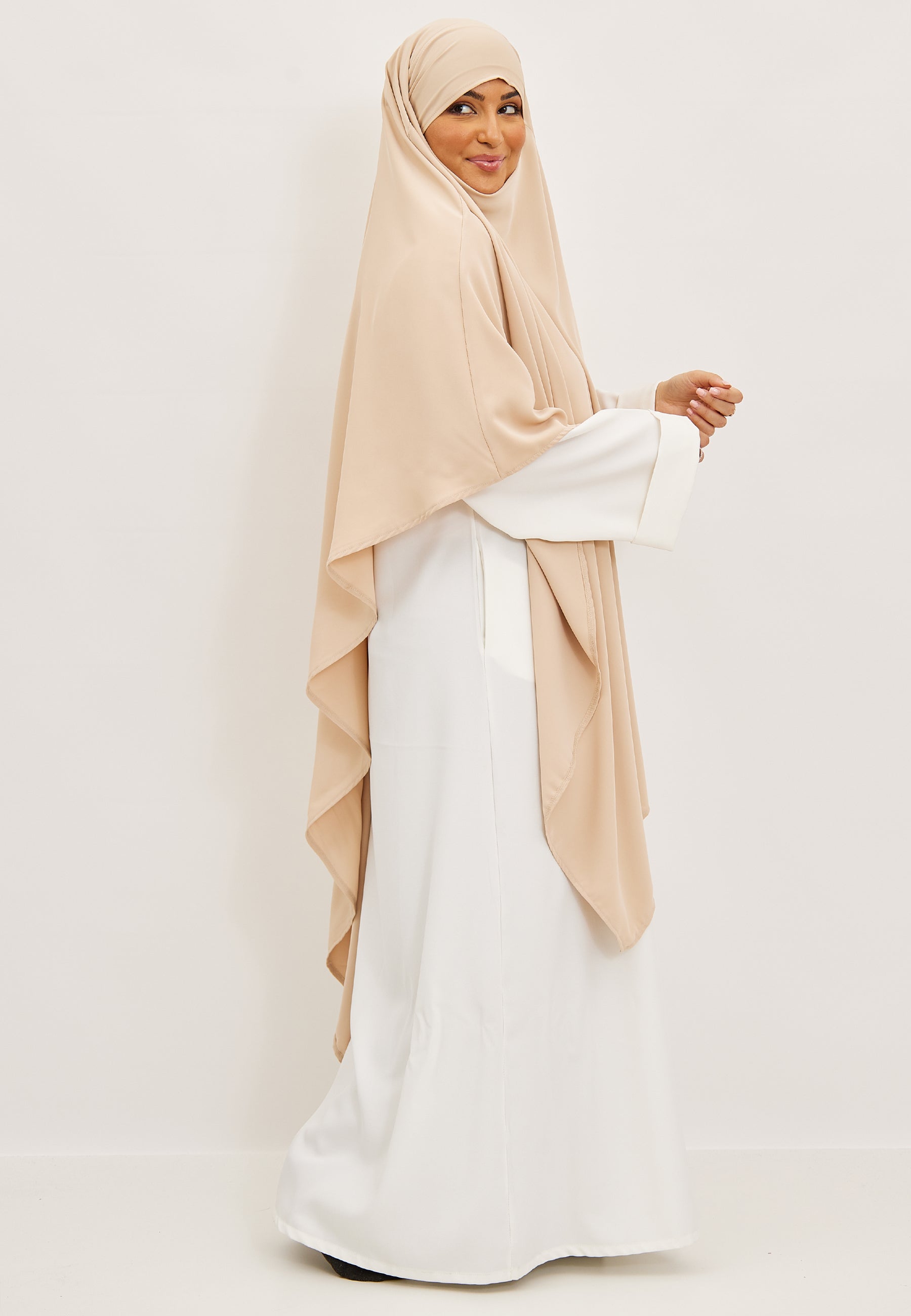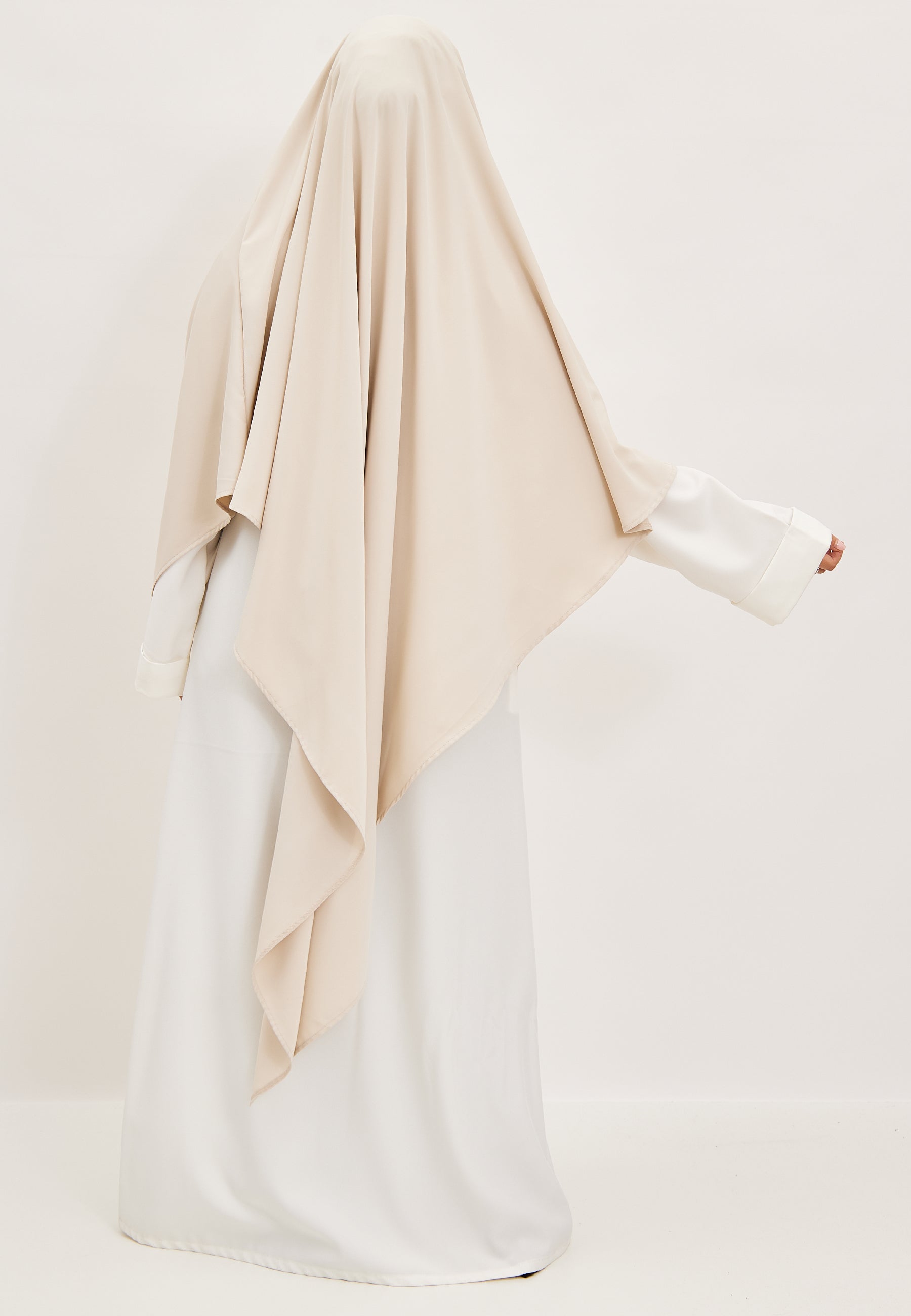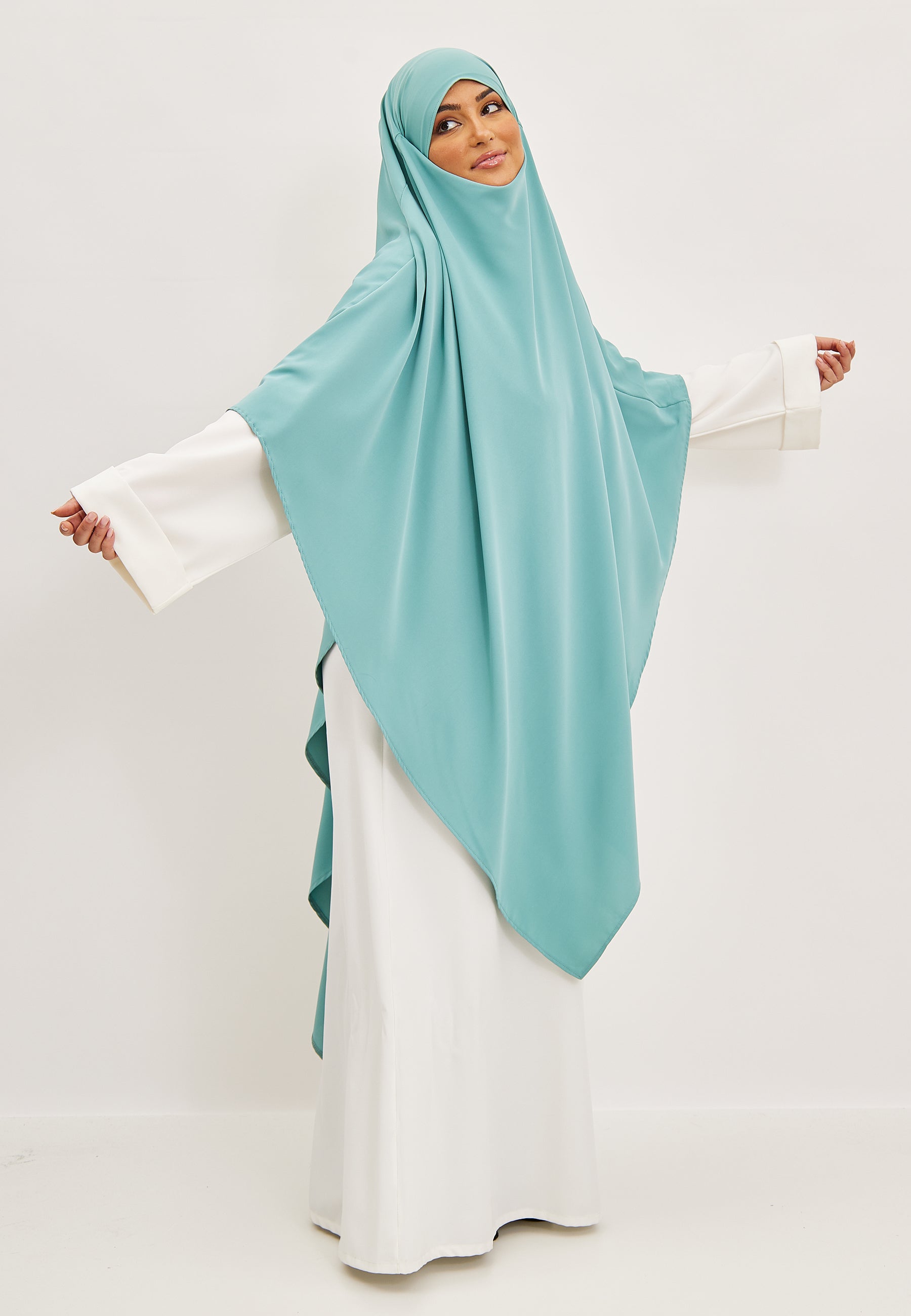 Le khimar Maya est un khimar long et pointu en soie de Médine, idéal pour une couverture élégante et raffinée.