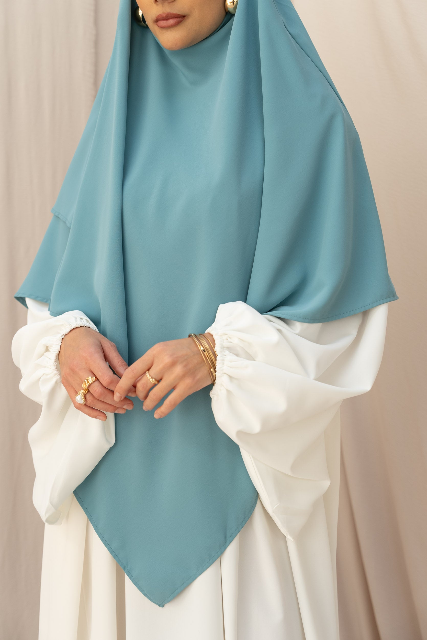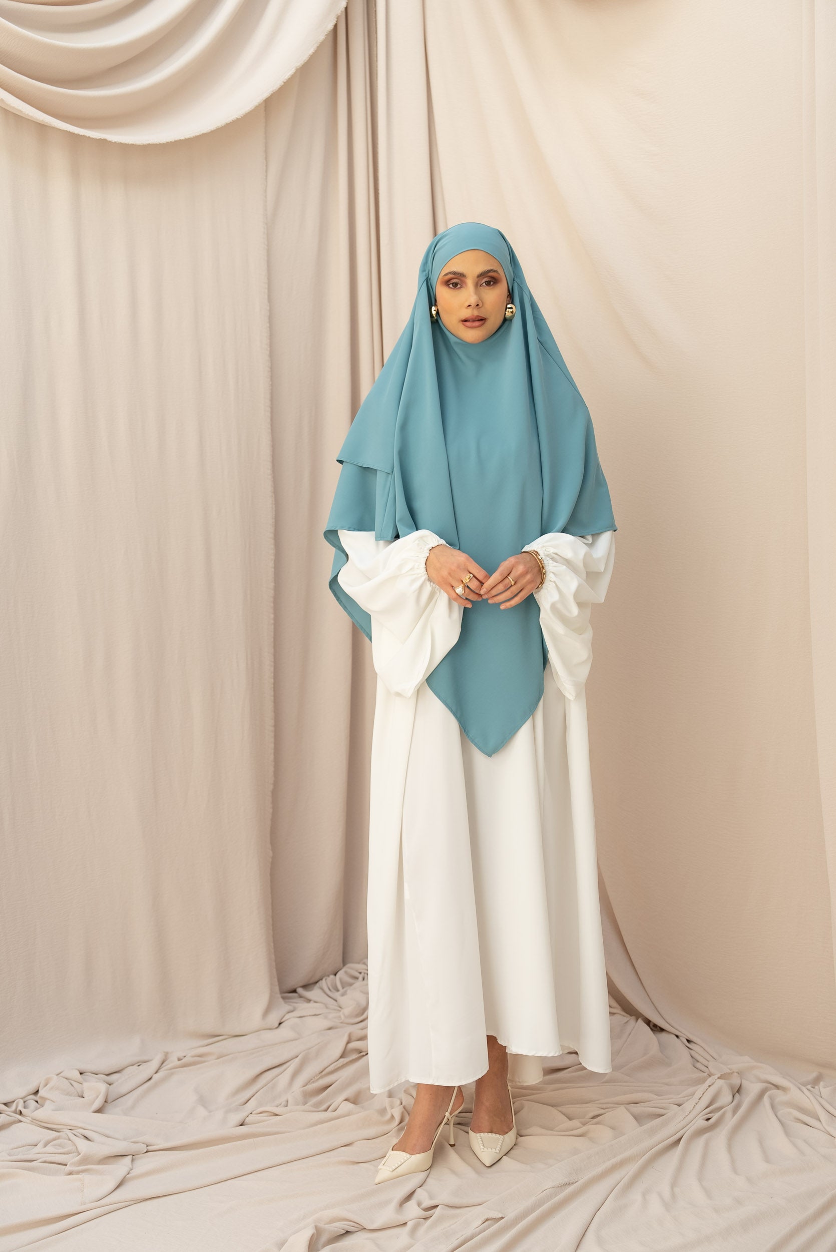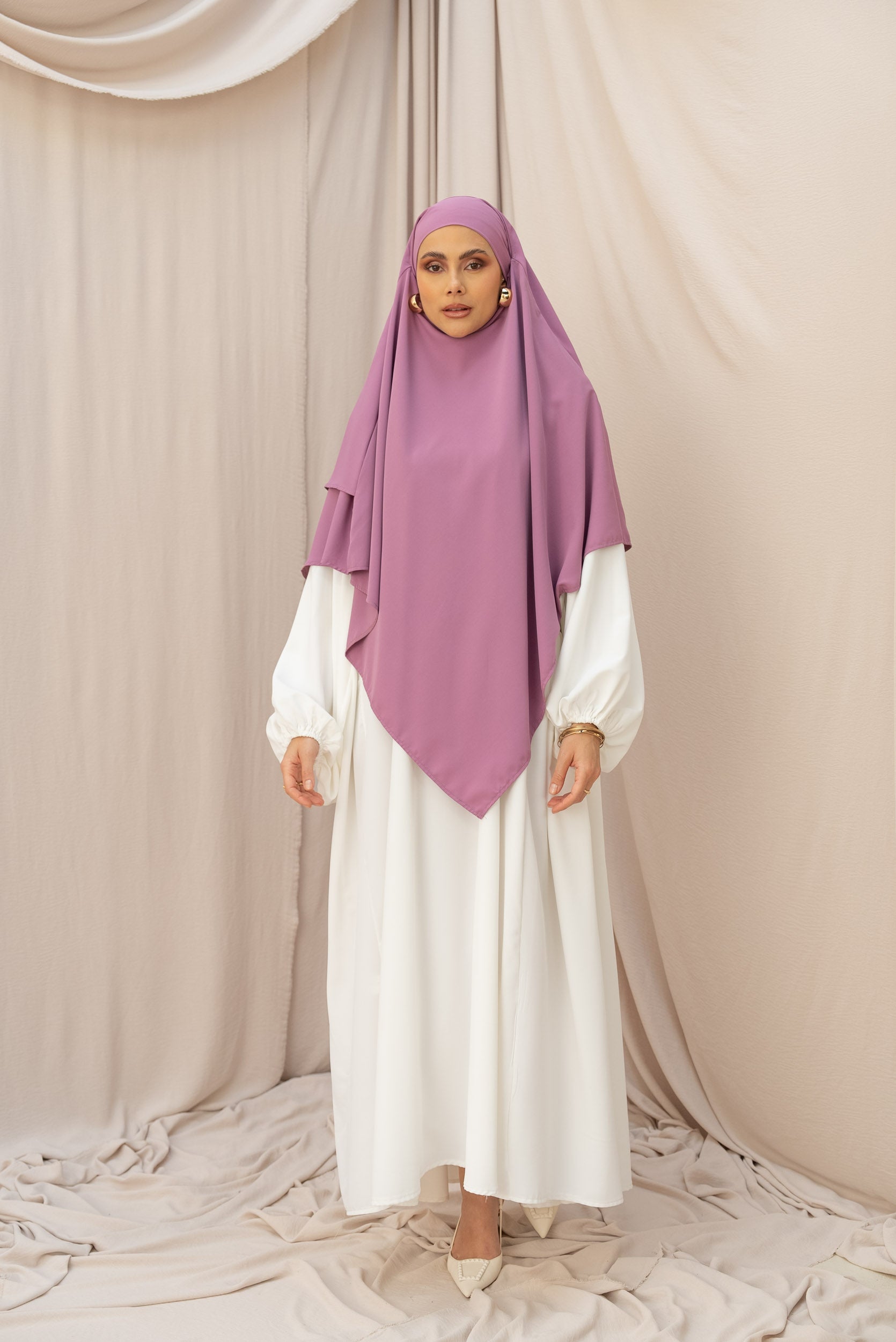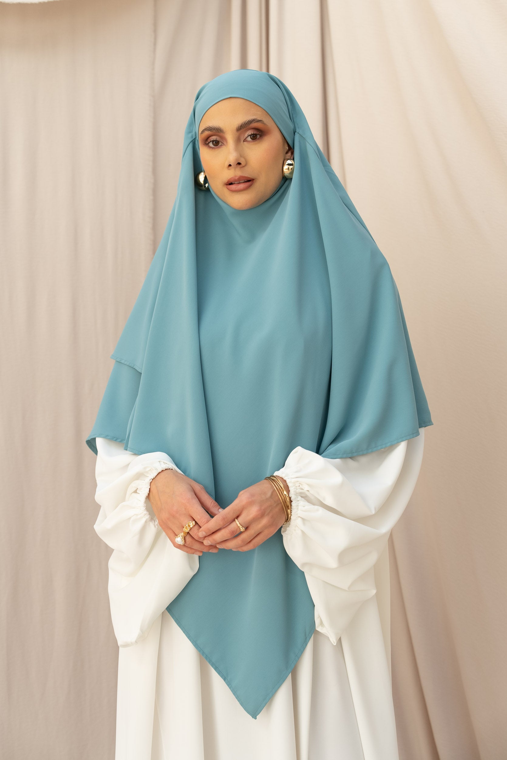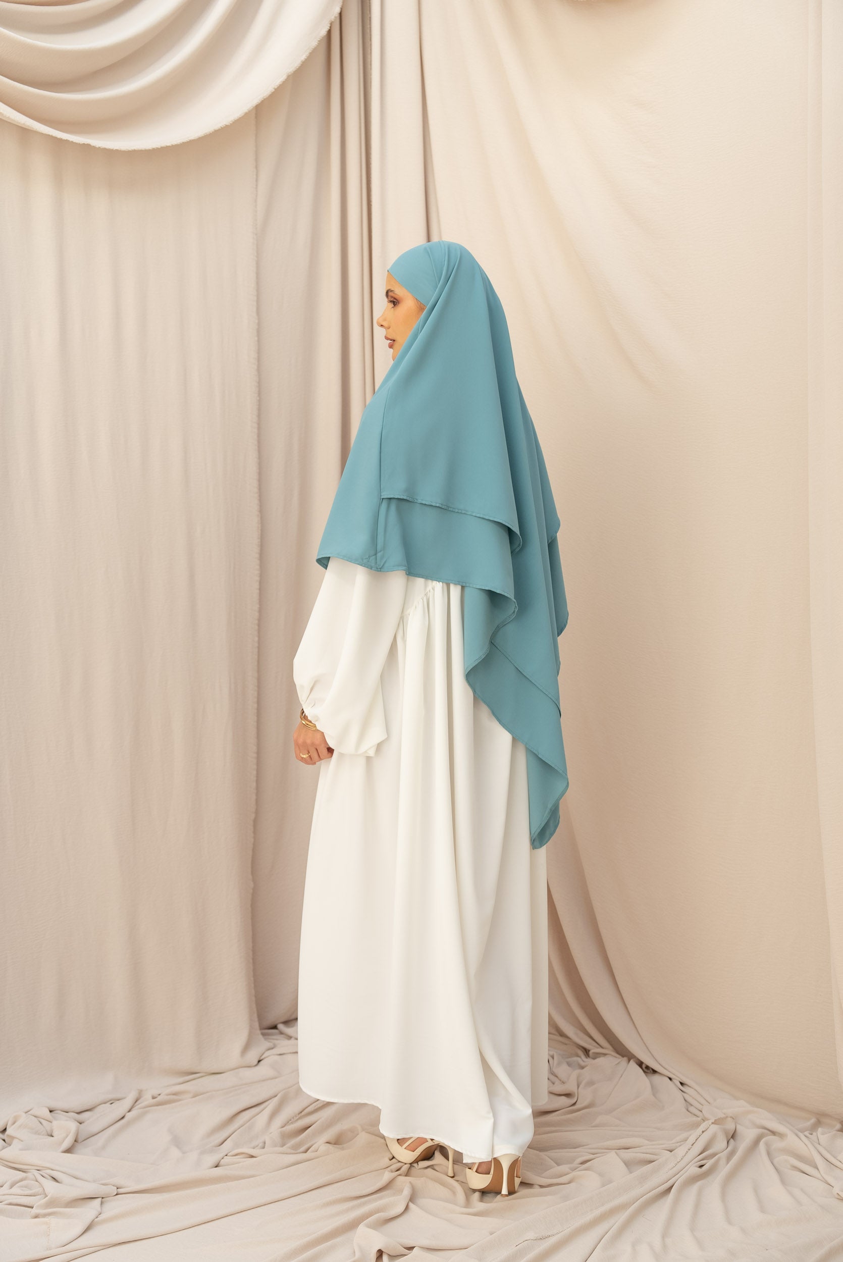 Le Khimar Sarah de Veijab incarne la modestie avec style. Confectionné en soie de Médine, il séduit par sa douceur, et son tombé fluide. Son long design avec double volant apporte une touche féminine, idéal au quotidien ou pour vos plus belles occasions.