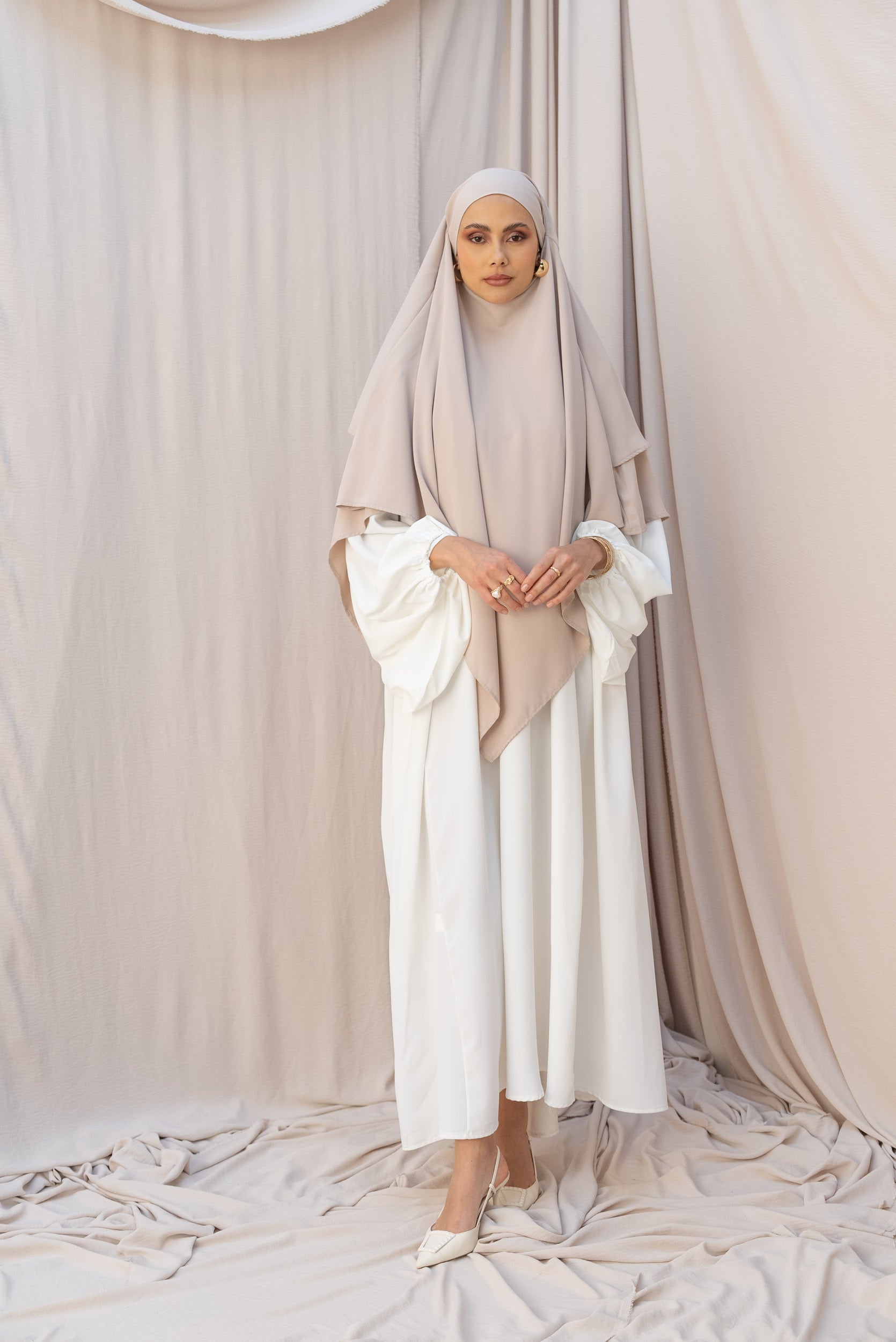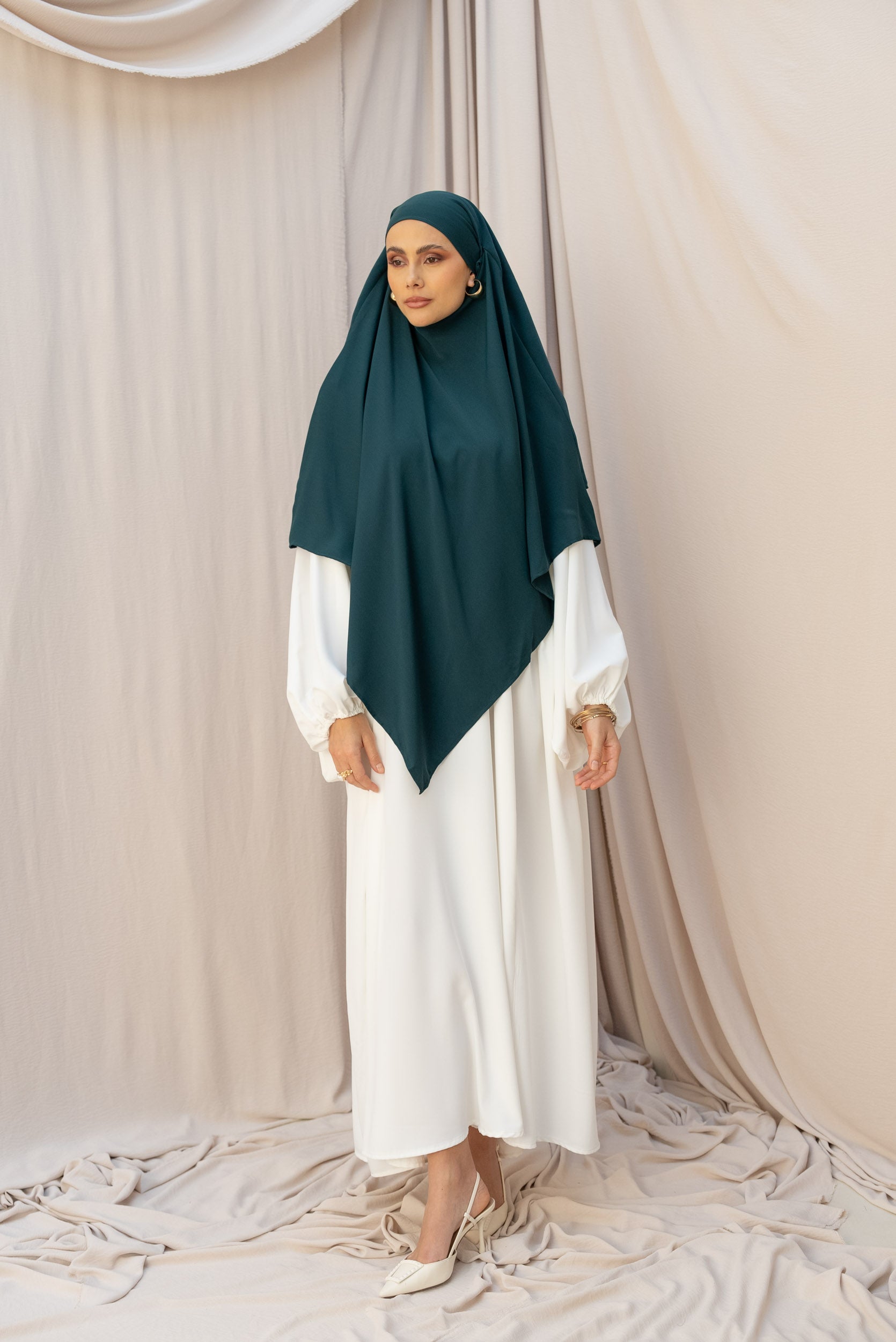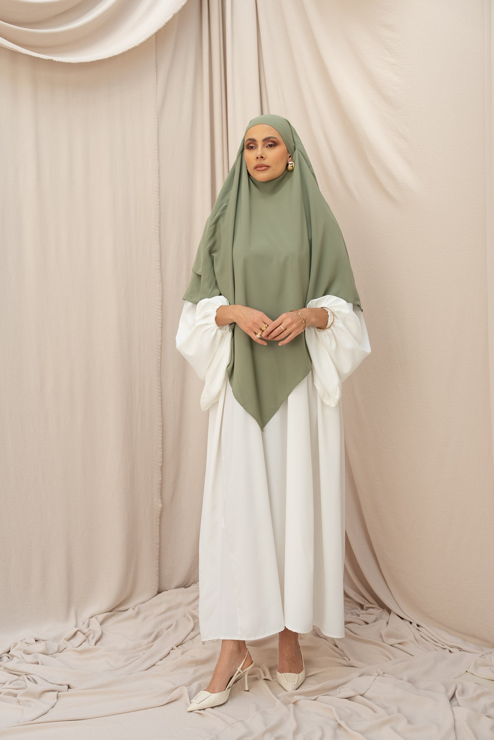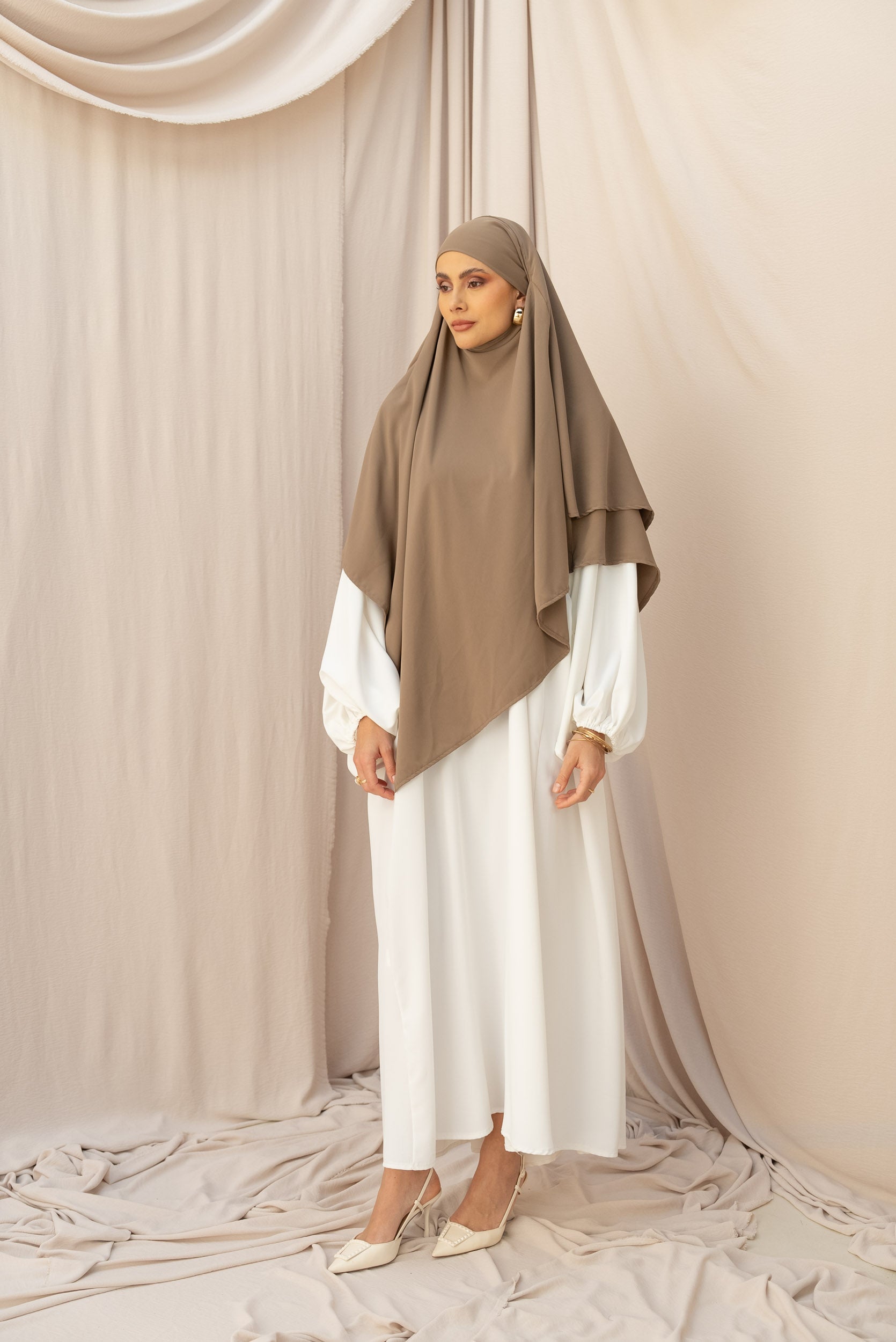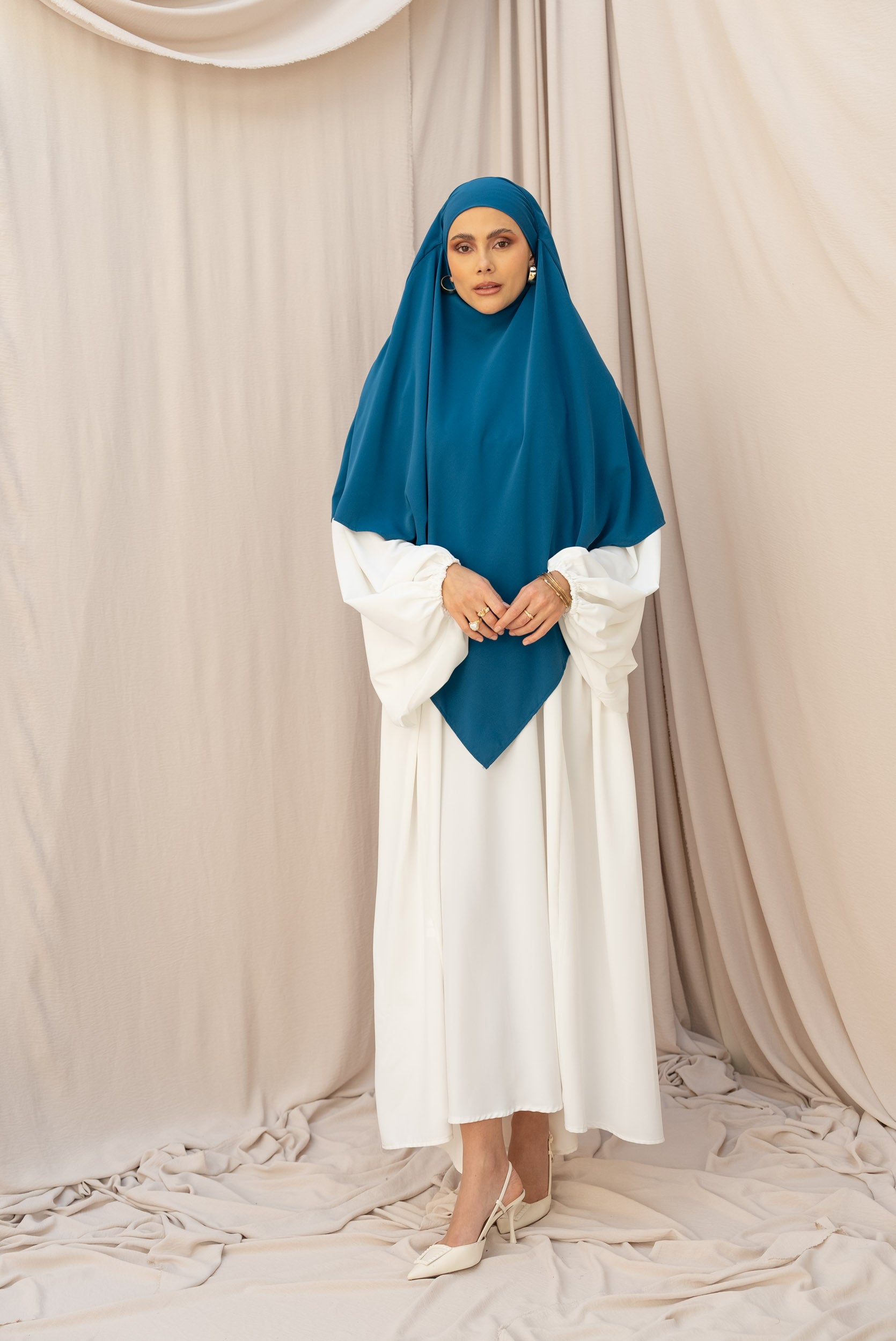 Le Khimar Sarah de Veijab incarne la modestie avec style. Confectionné en soie de Médine, il séduit par sa douceur, et son tombé fluide. Son long design avec double volant apporte une touche féminine, idéal au quotidien ou pour vos plus belles occasions.