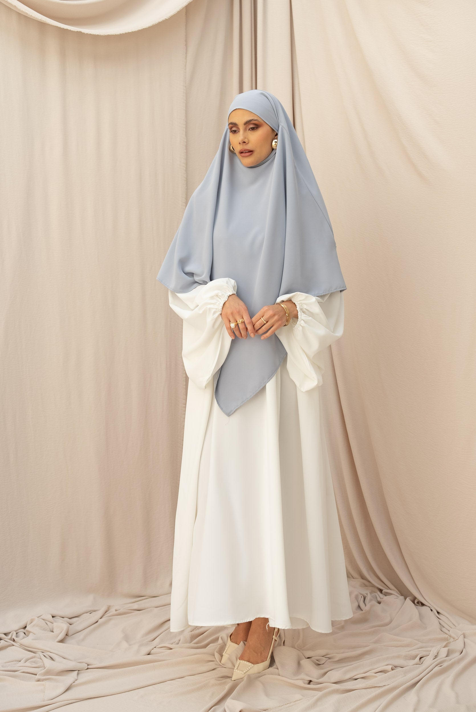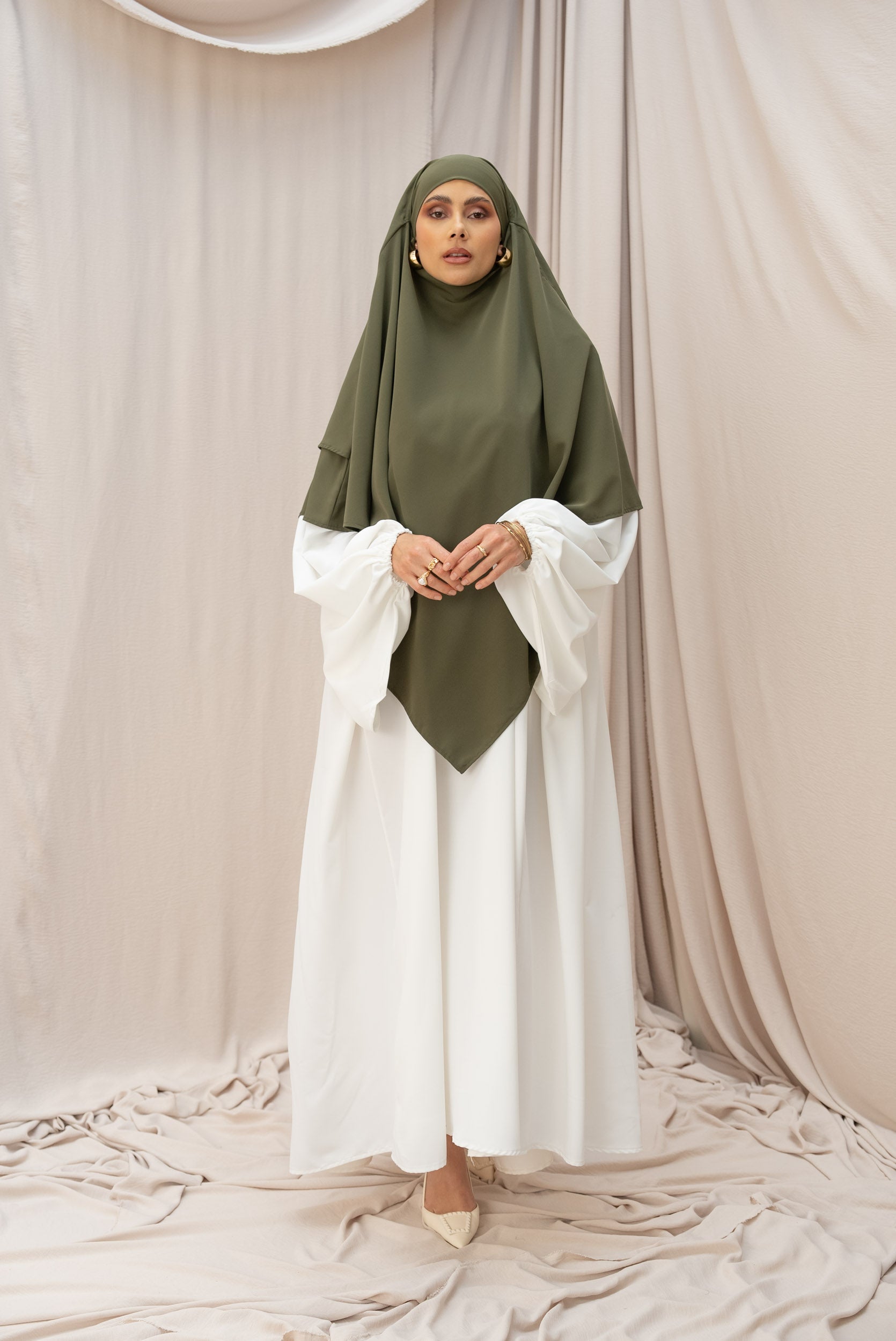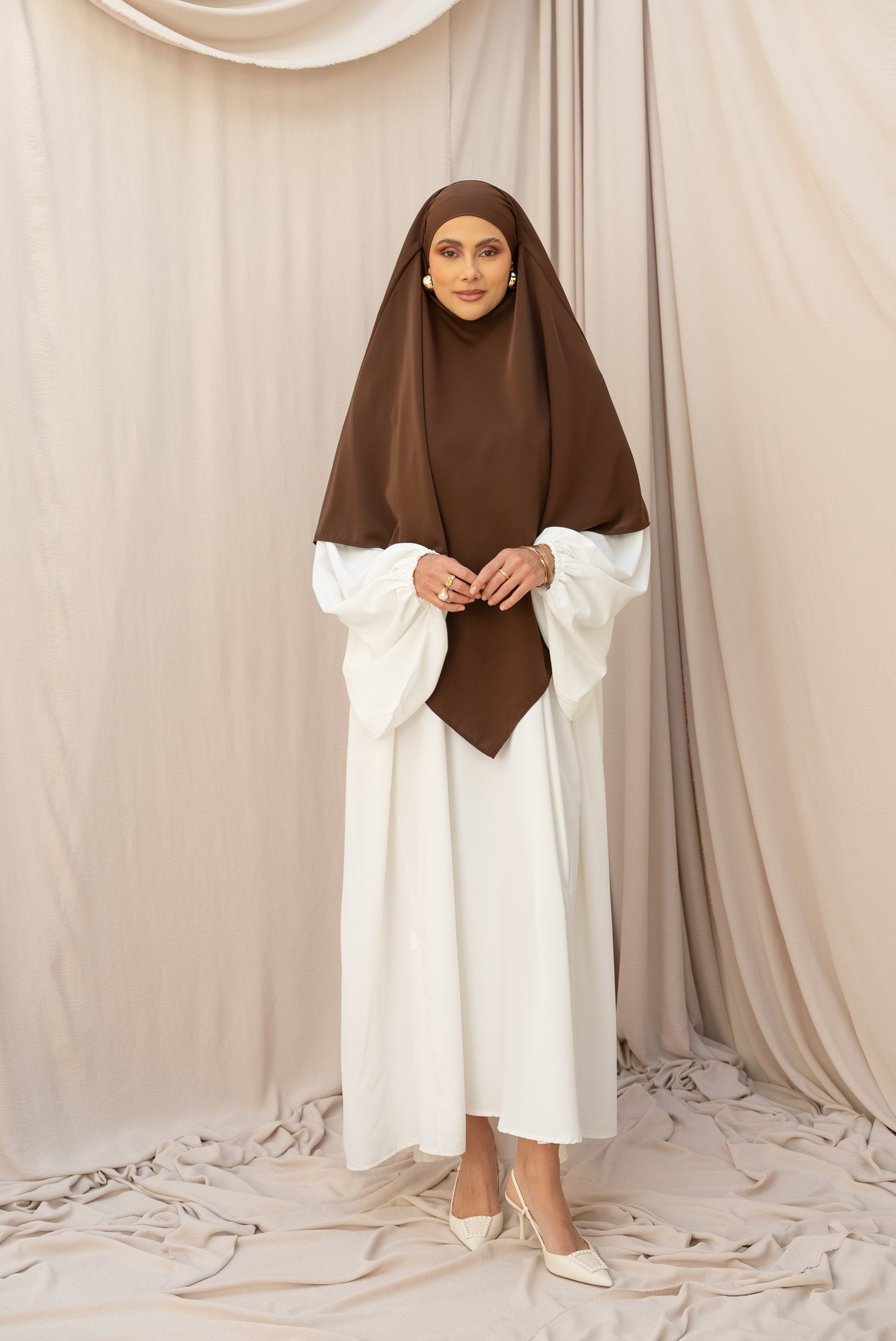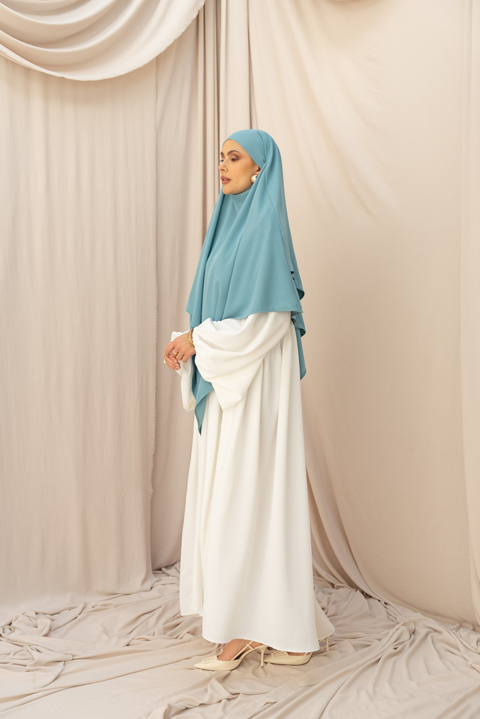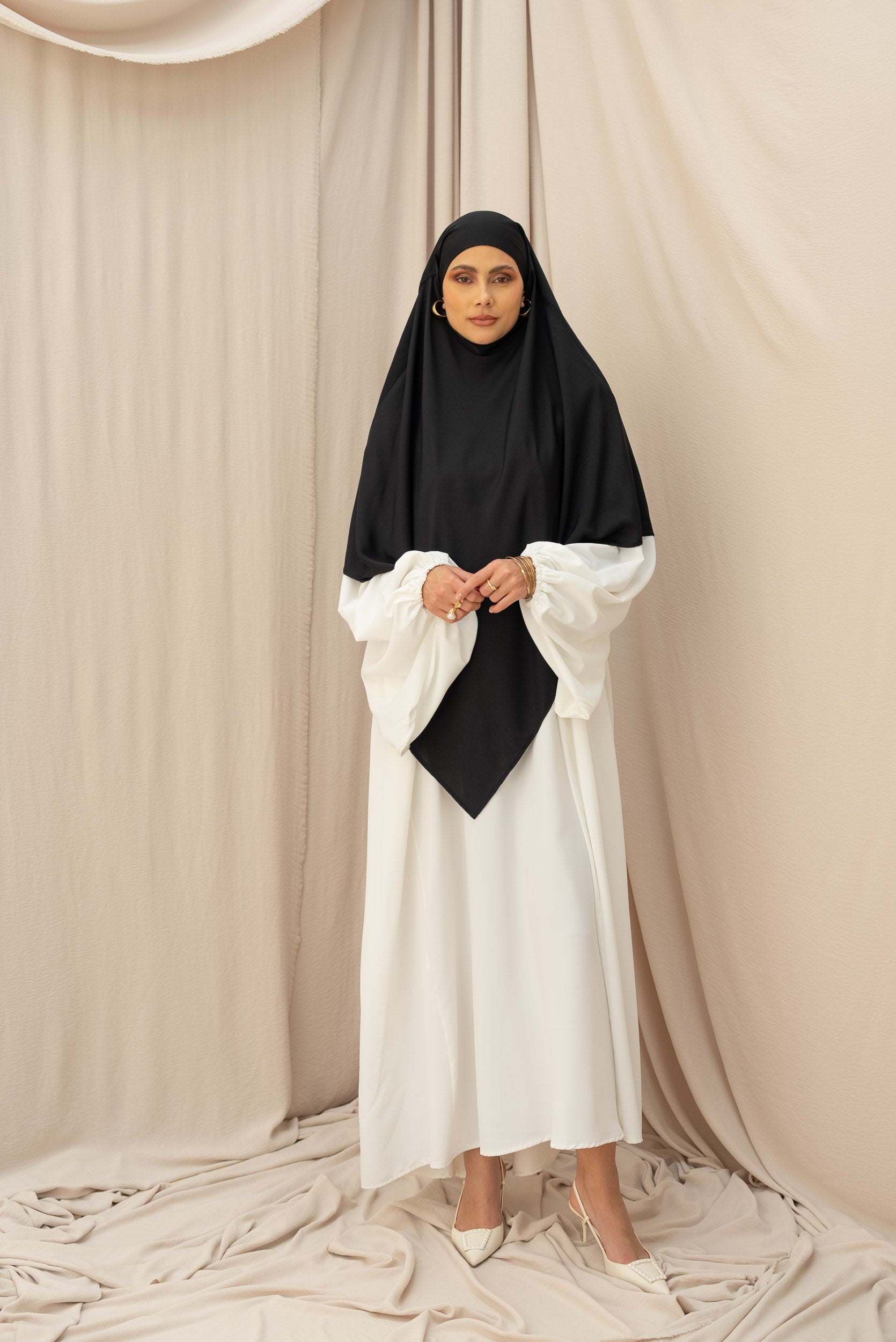 Le Khimar Sarah de Veijab incarne la modestie avec style. Confectionné en soie de Médine, il séduit par sa douceur, et son tombé fluide. Son long design avec double volant apporte une touche féminine, idéal au quotidien ou pour vos plus belles occasions.