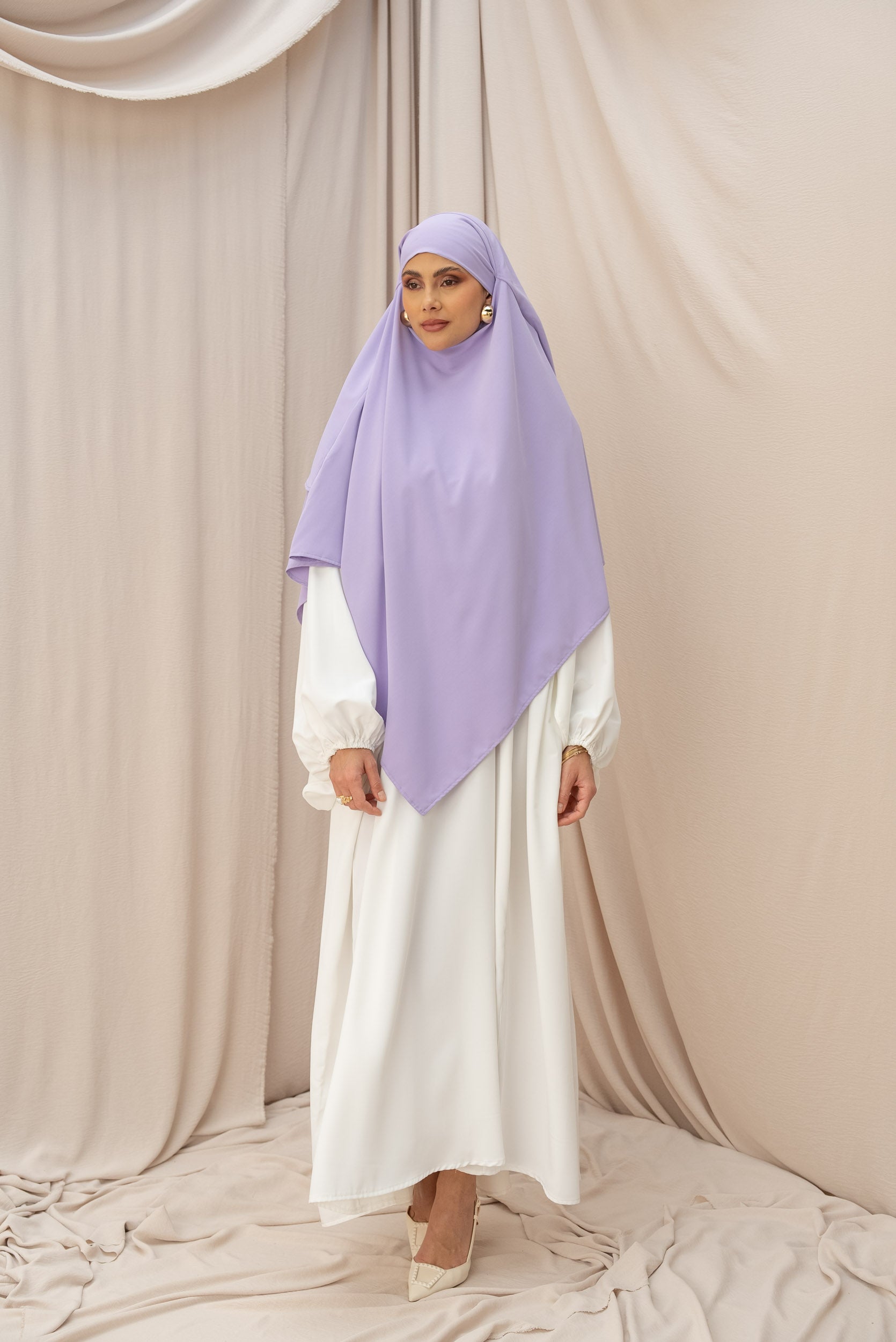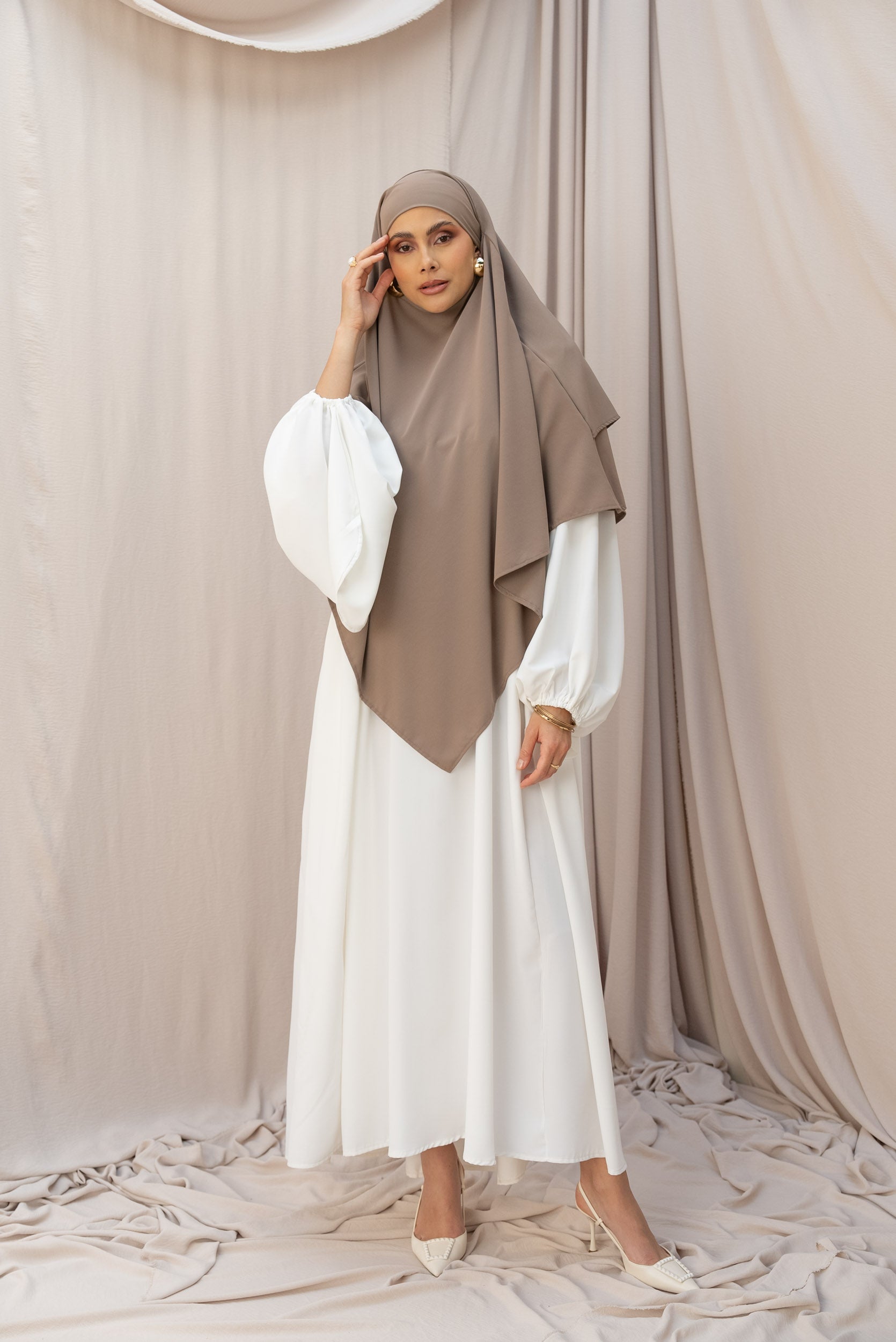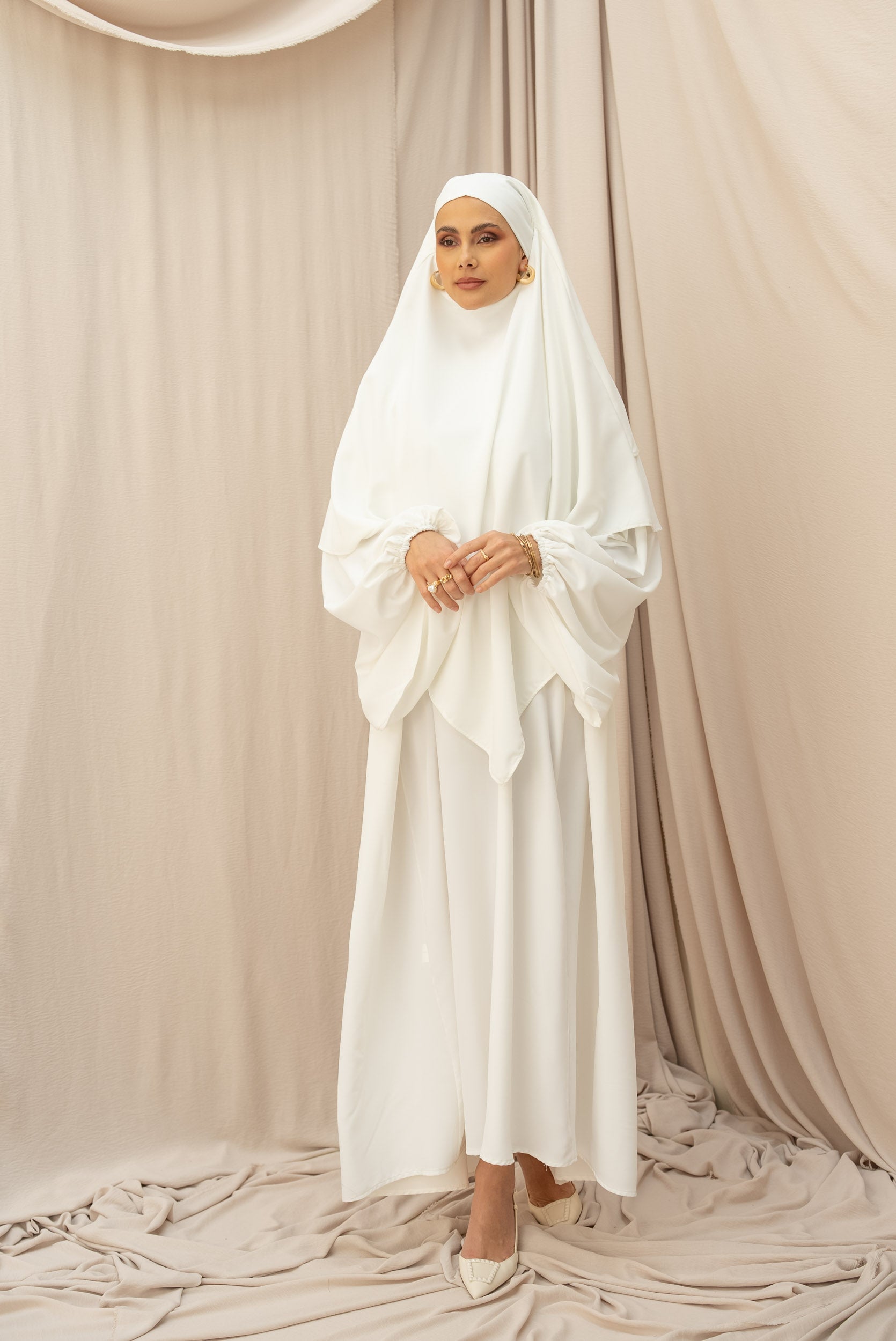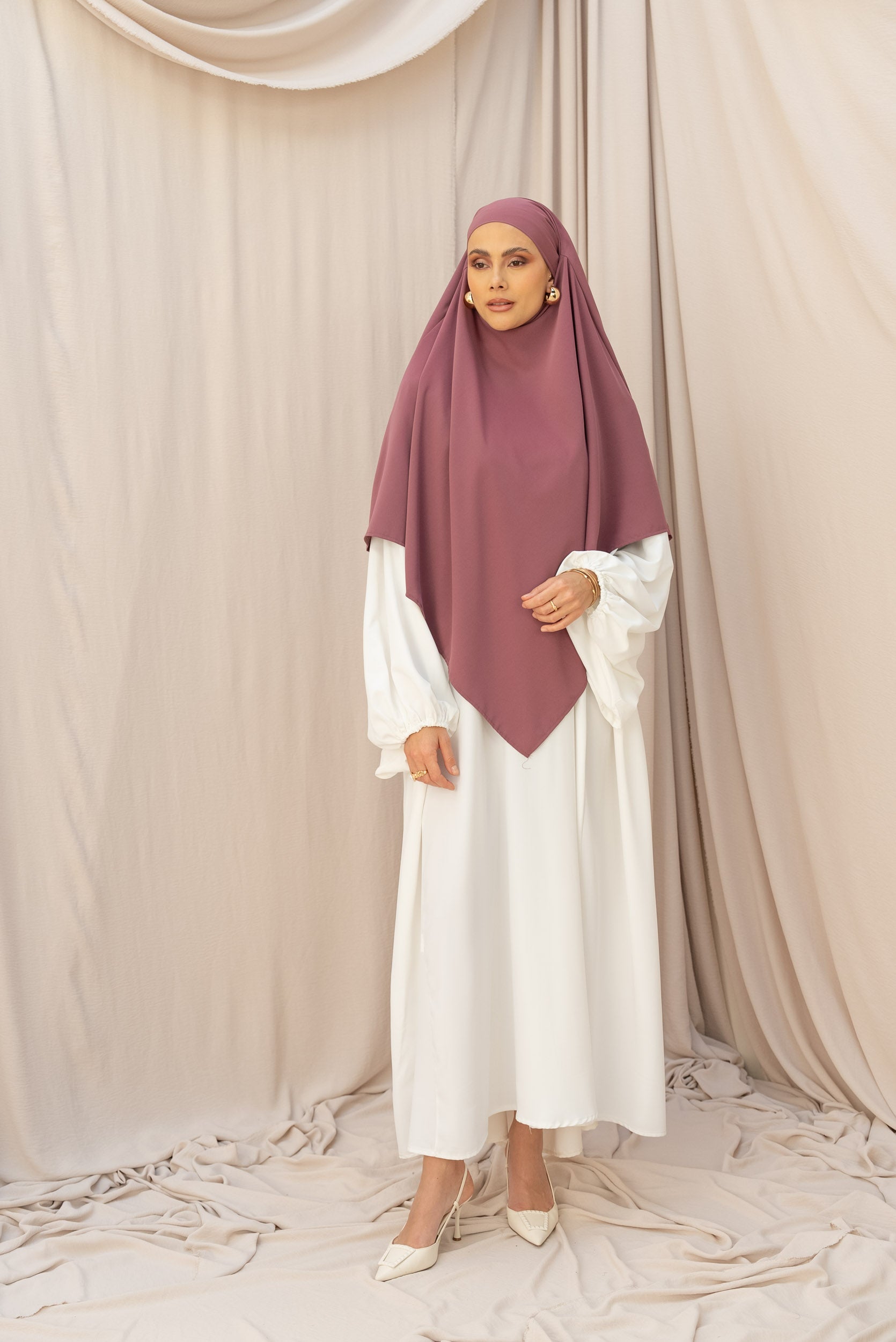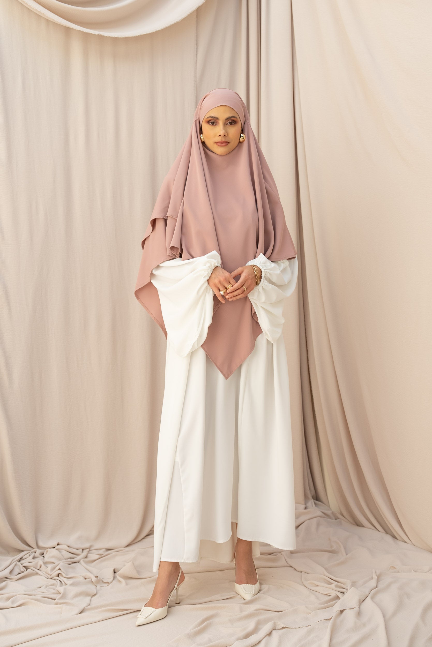 Le Khimar Sarah de Veijab incarne la modestie avec style. Confectionné en soie de Médine, il séduit par sa douceur, et son tombé fluide. Son long design avec double volant apporte une touche féminine, idéal au quotidien ou pour vos plus belles occasions.