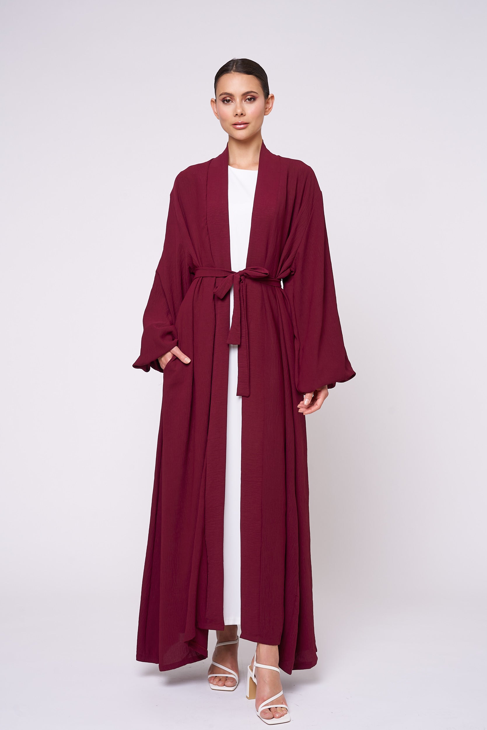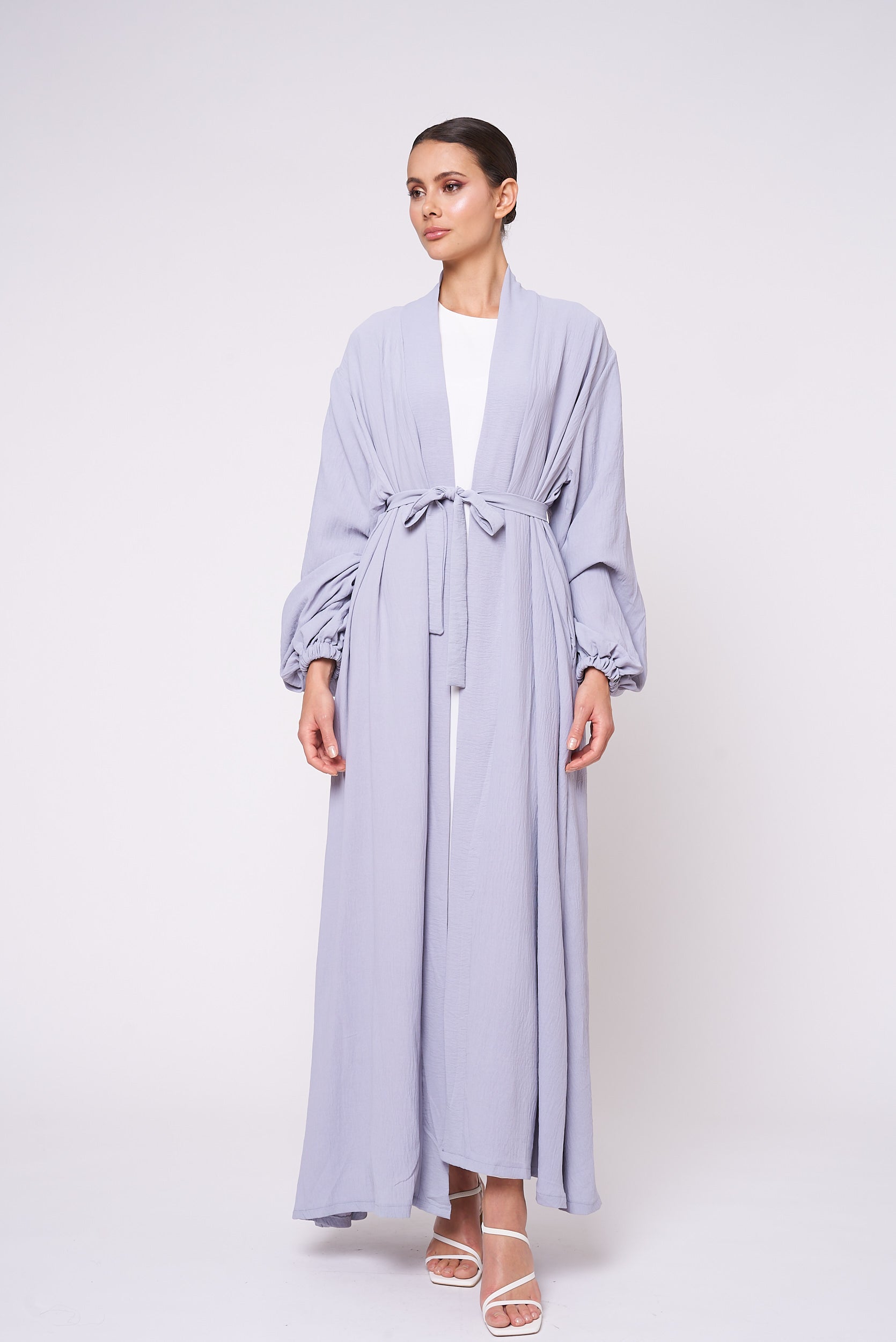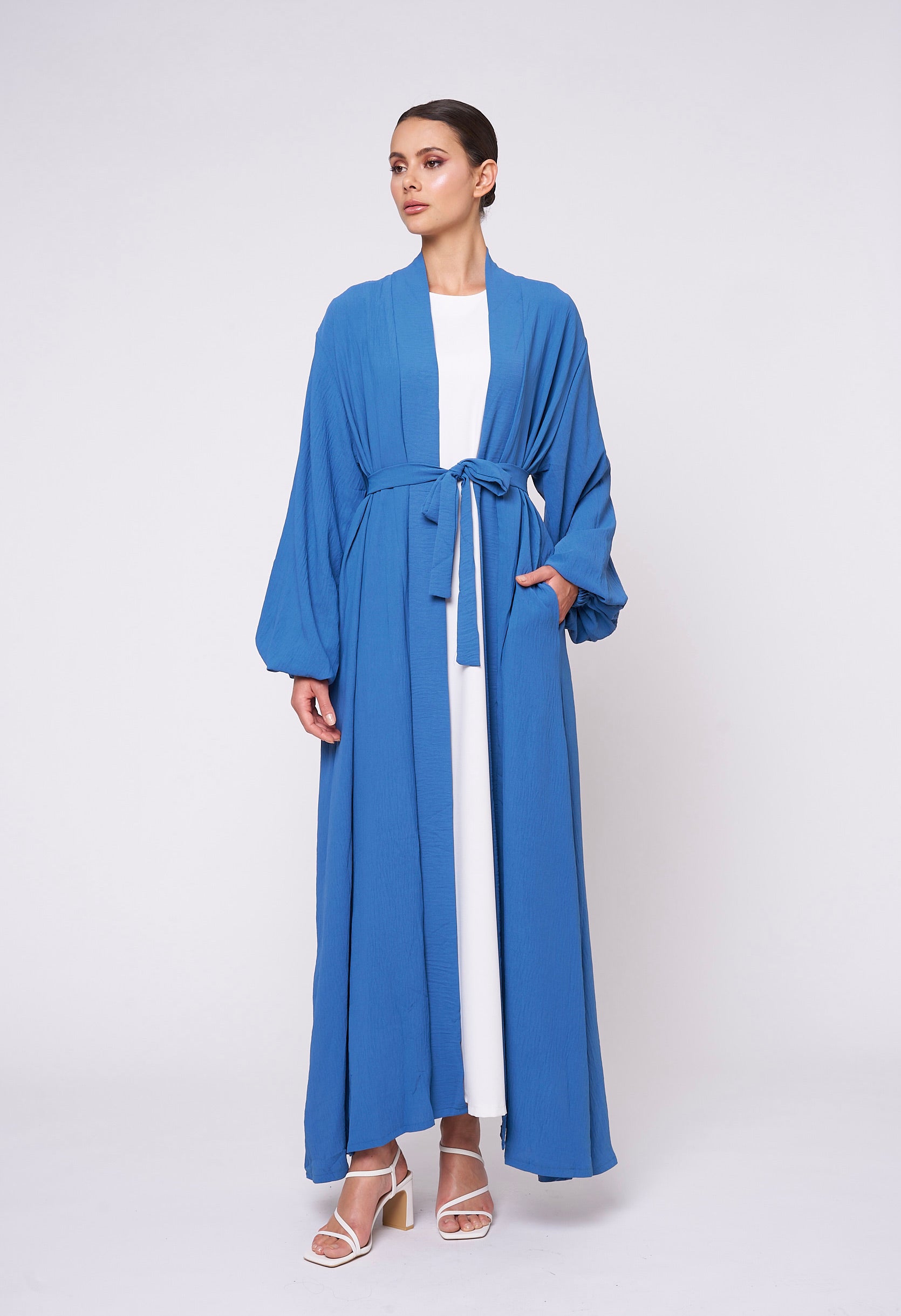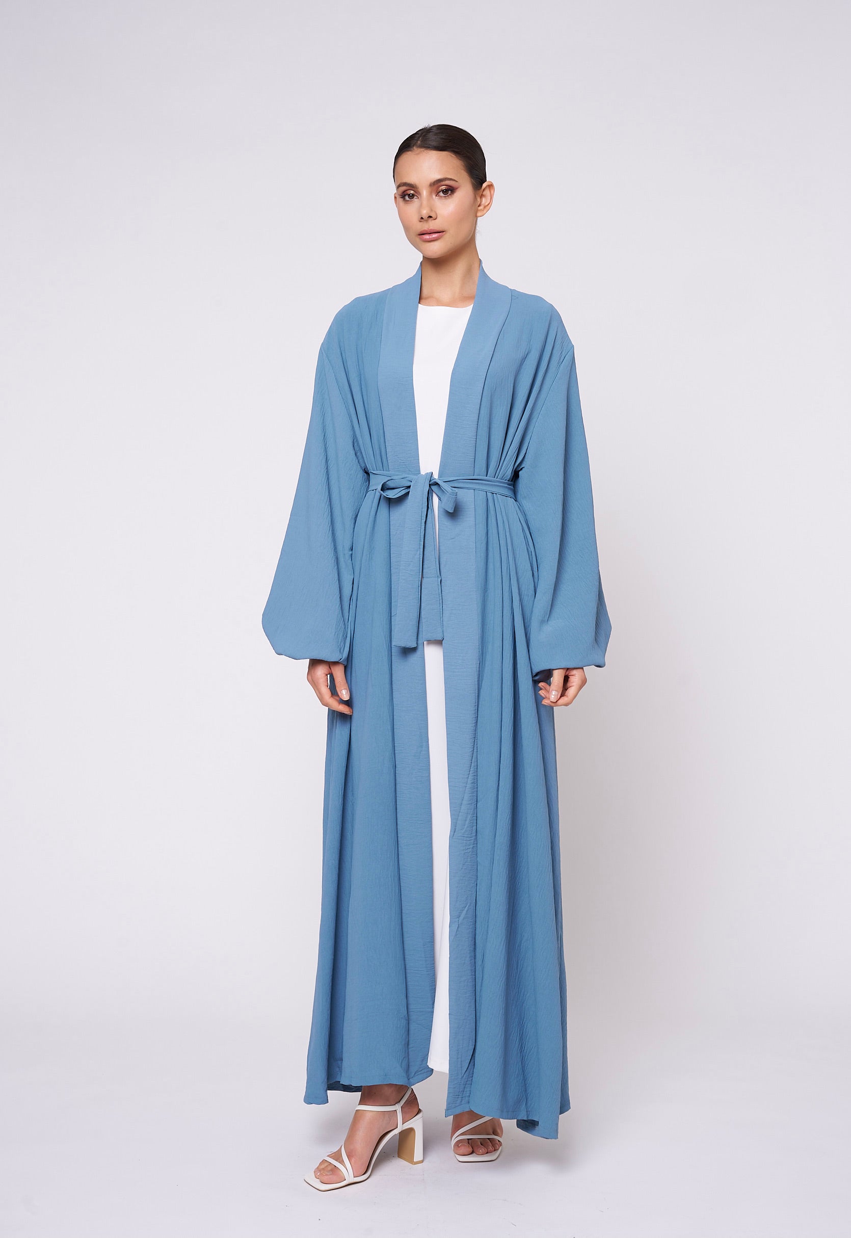 Le Kimono Jaz, une valeur sûre pour vos événements. Confectionné en tissu jazz, il mise sur une coupe droite et des manches bouffantes pour un rendu raffiné. À porter sur une abaya, de jour comme de soirée.