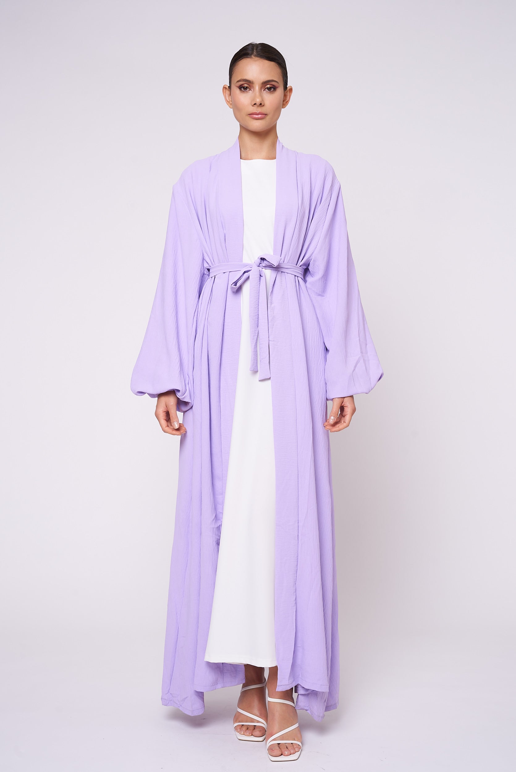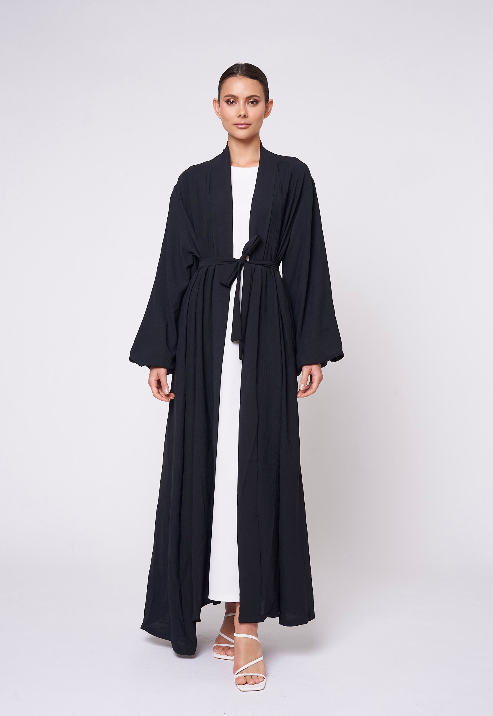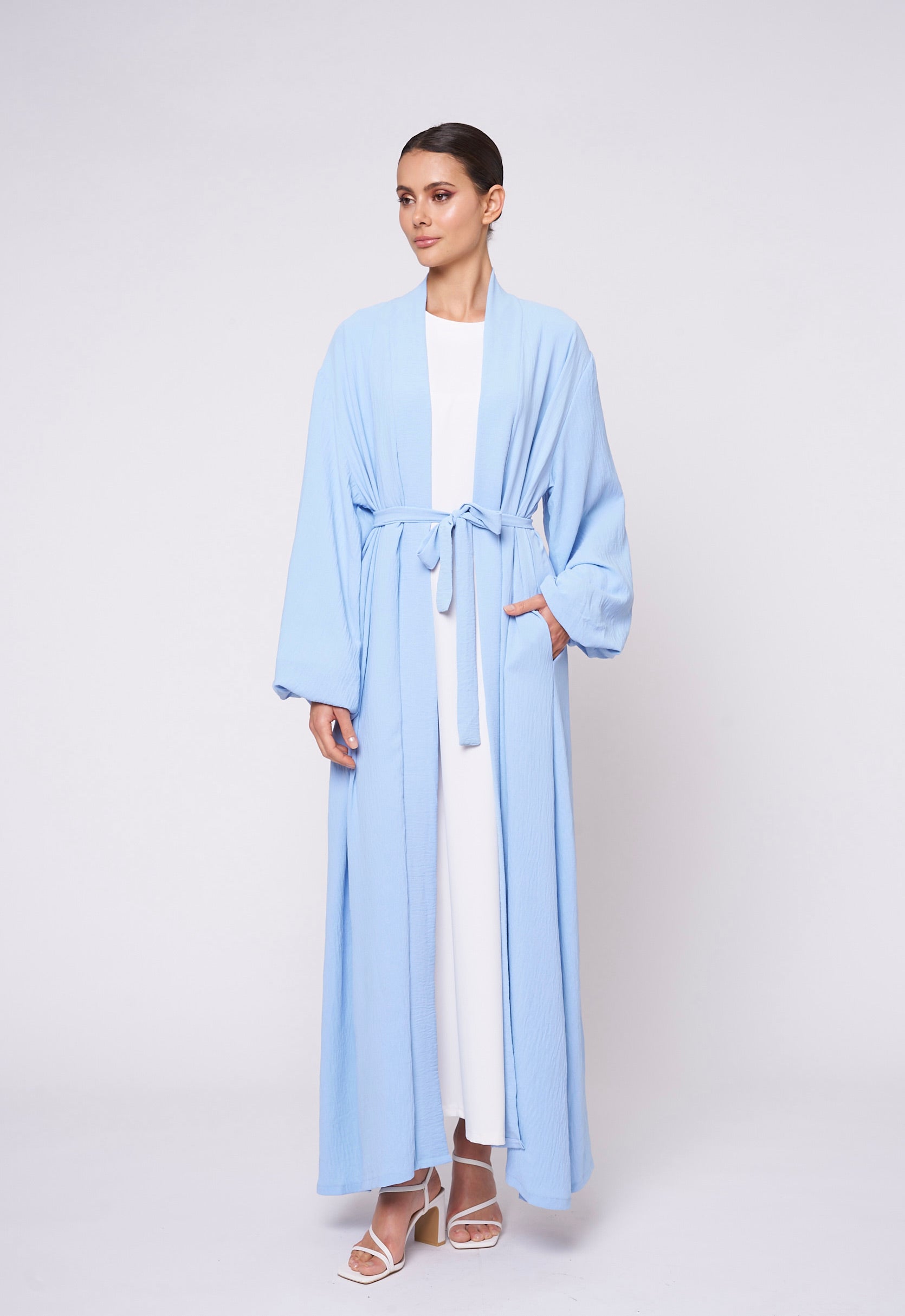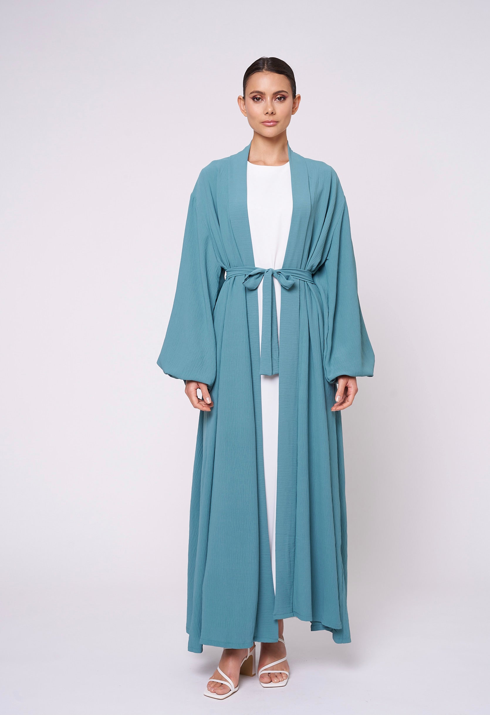 Le Kimono Jaz, une valeur sûre pour vos événements. Confectionné en tissu jazz, il mise sur une coupe droite et des manches bouffantes pour un rendu raffiné. À porter sur une abaya, de jour comme de soirée.