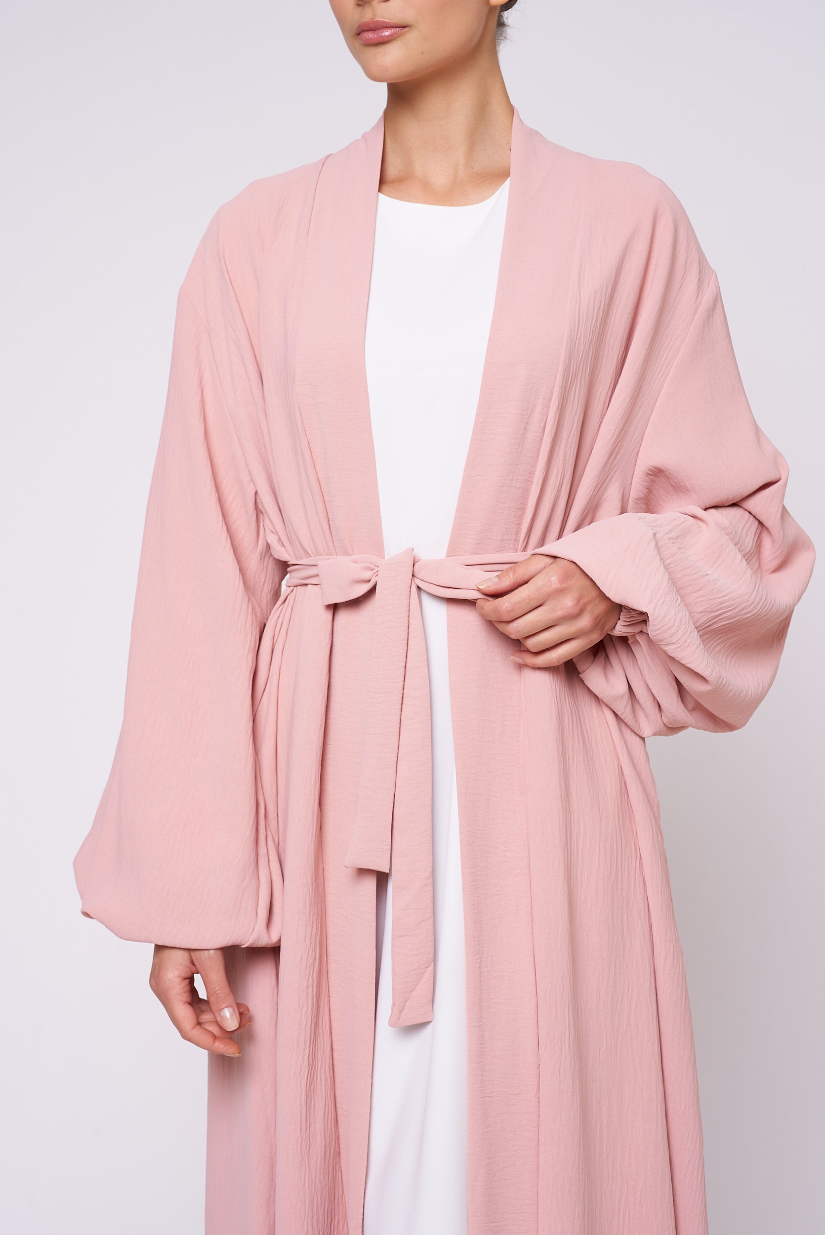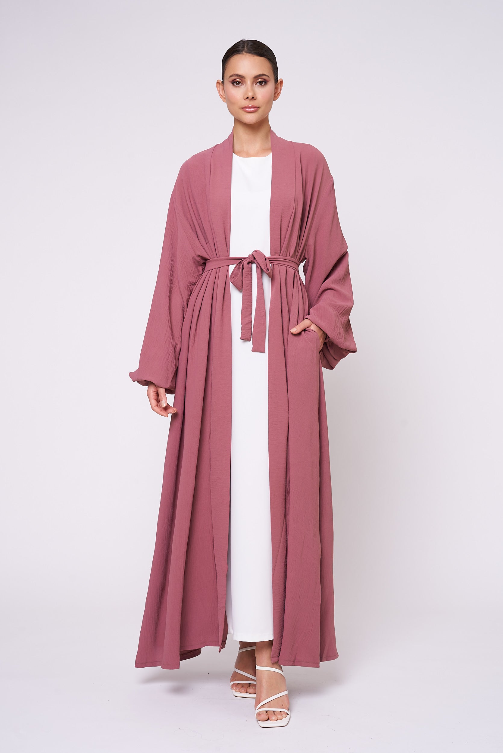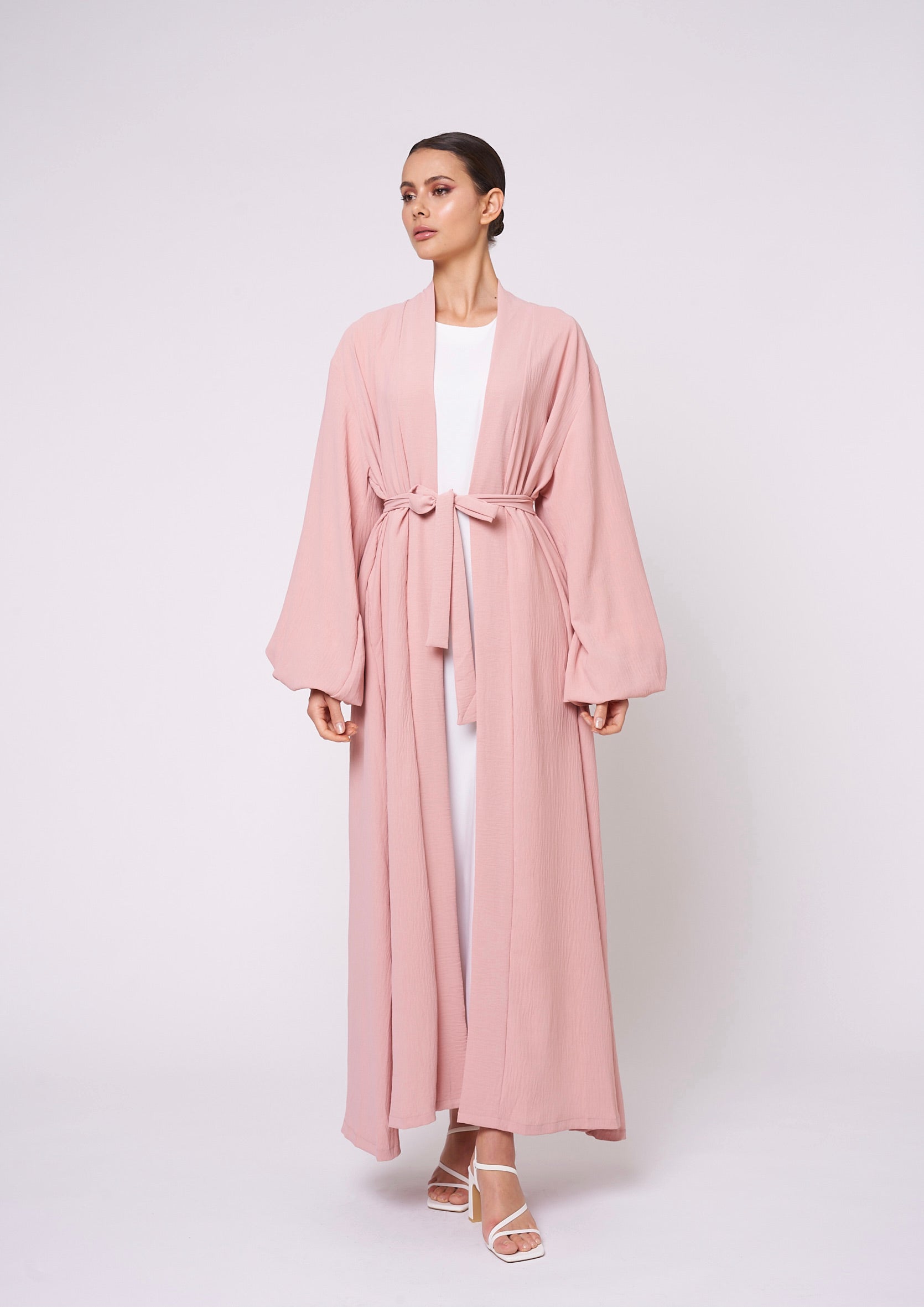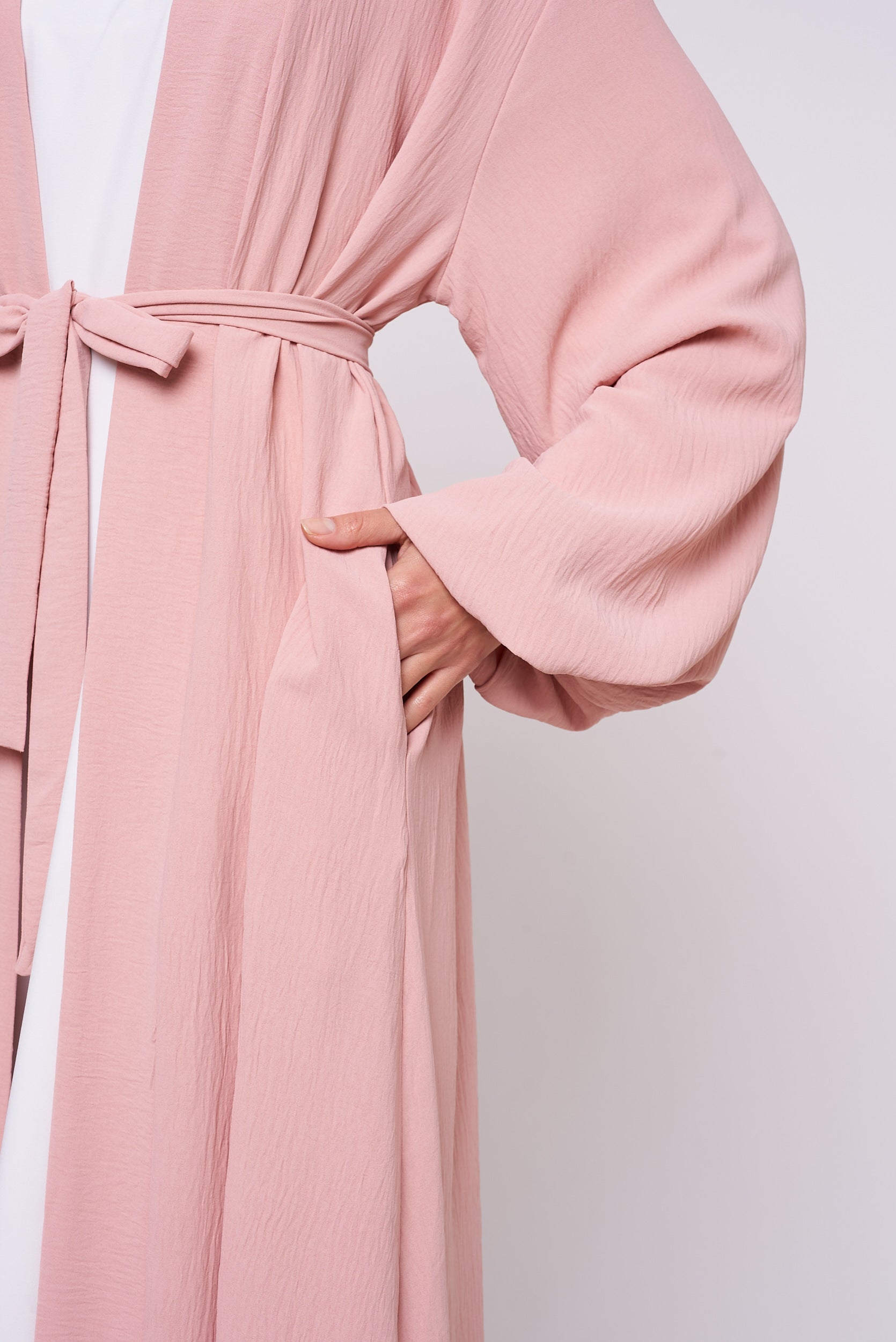 Le Kimono Jaz, une valeur sûre pour vos événements. Confectionné en tissu jazz, il mise sur une coupe droite et des manches bouffantes pour un rendu raffiné. À porter sur une abaya, de jour comme de soirée.