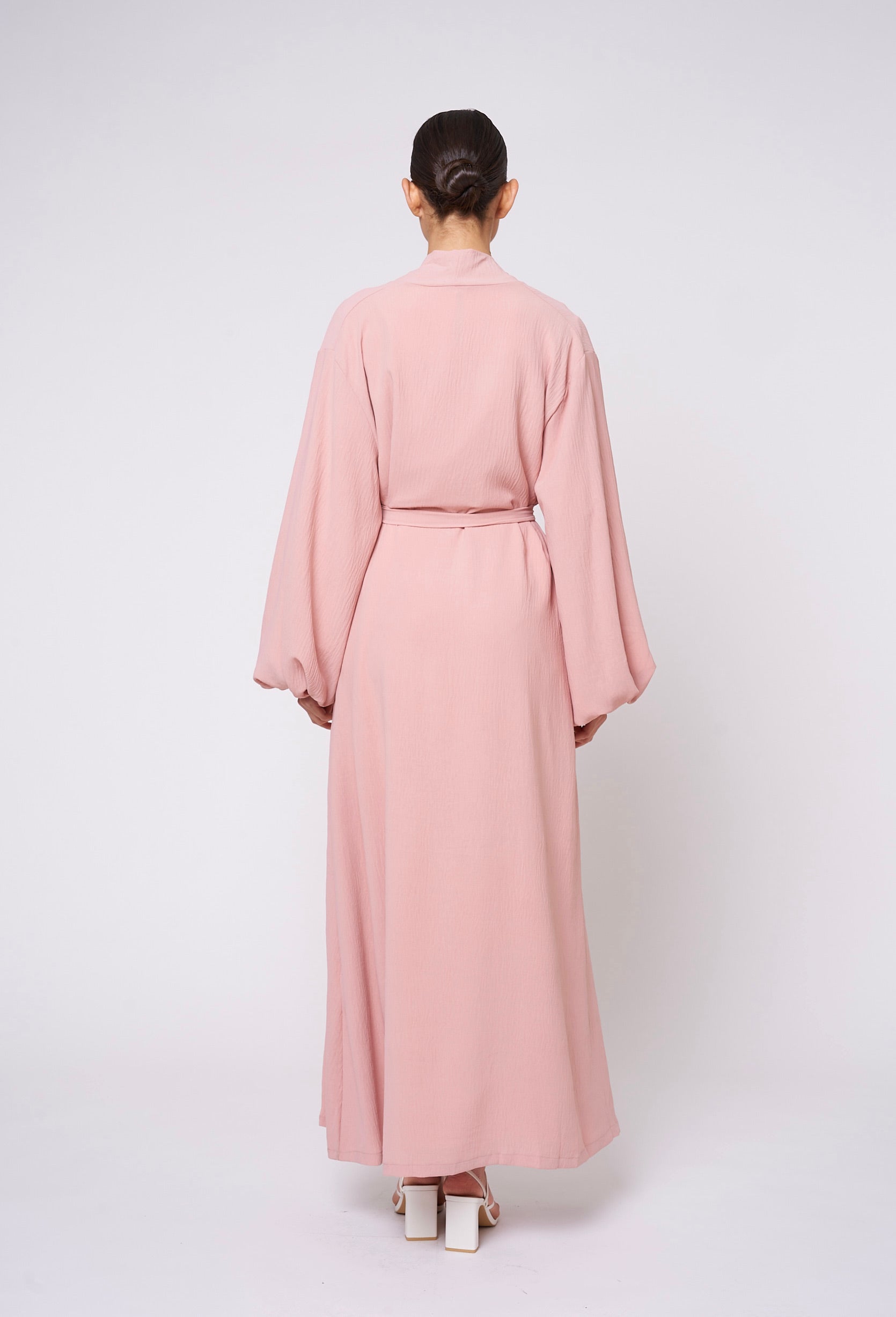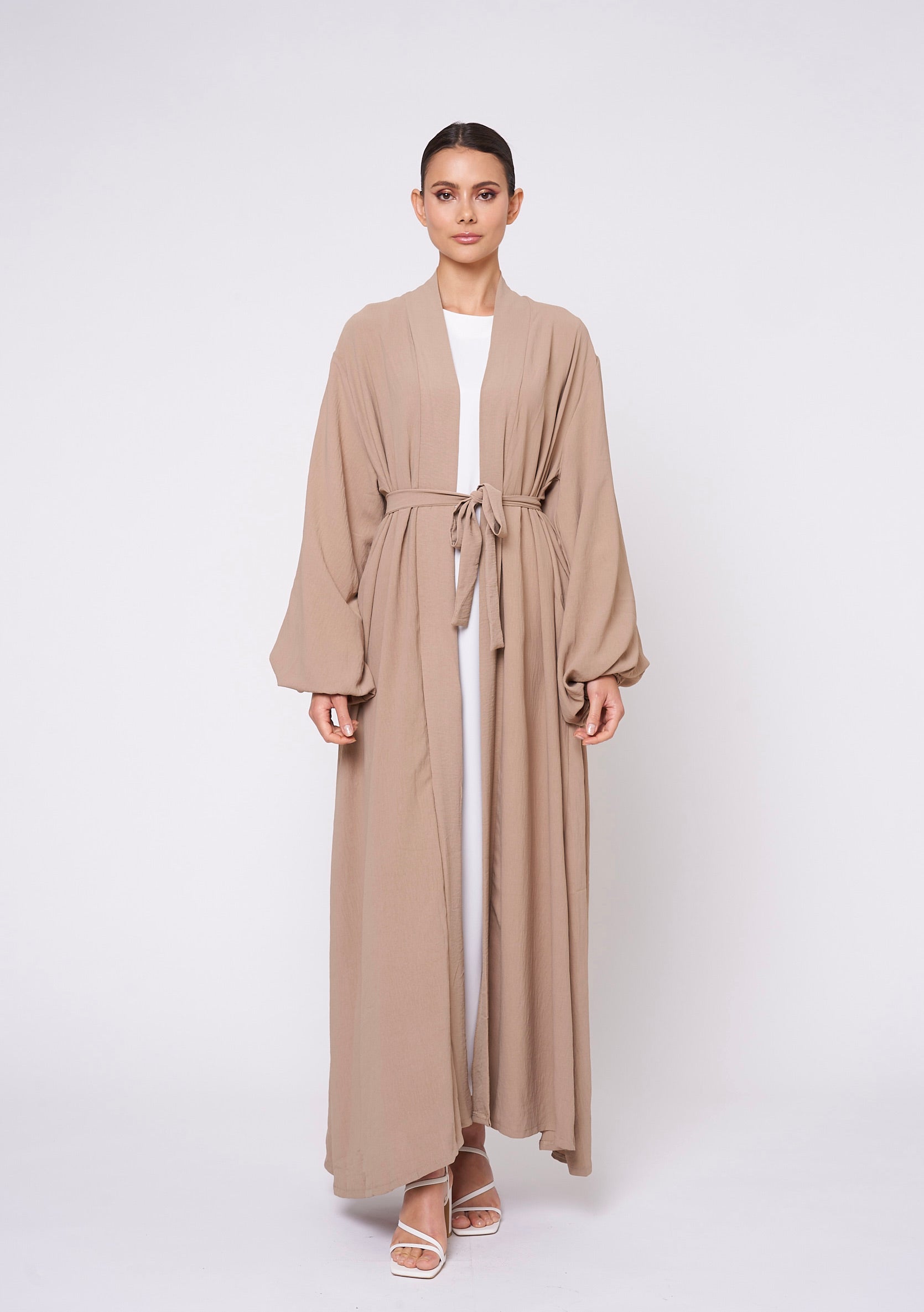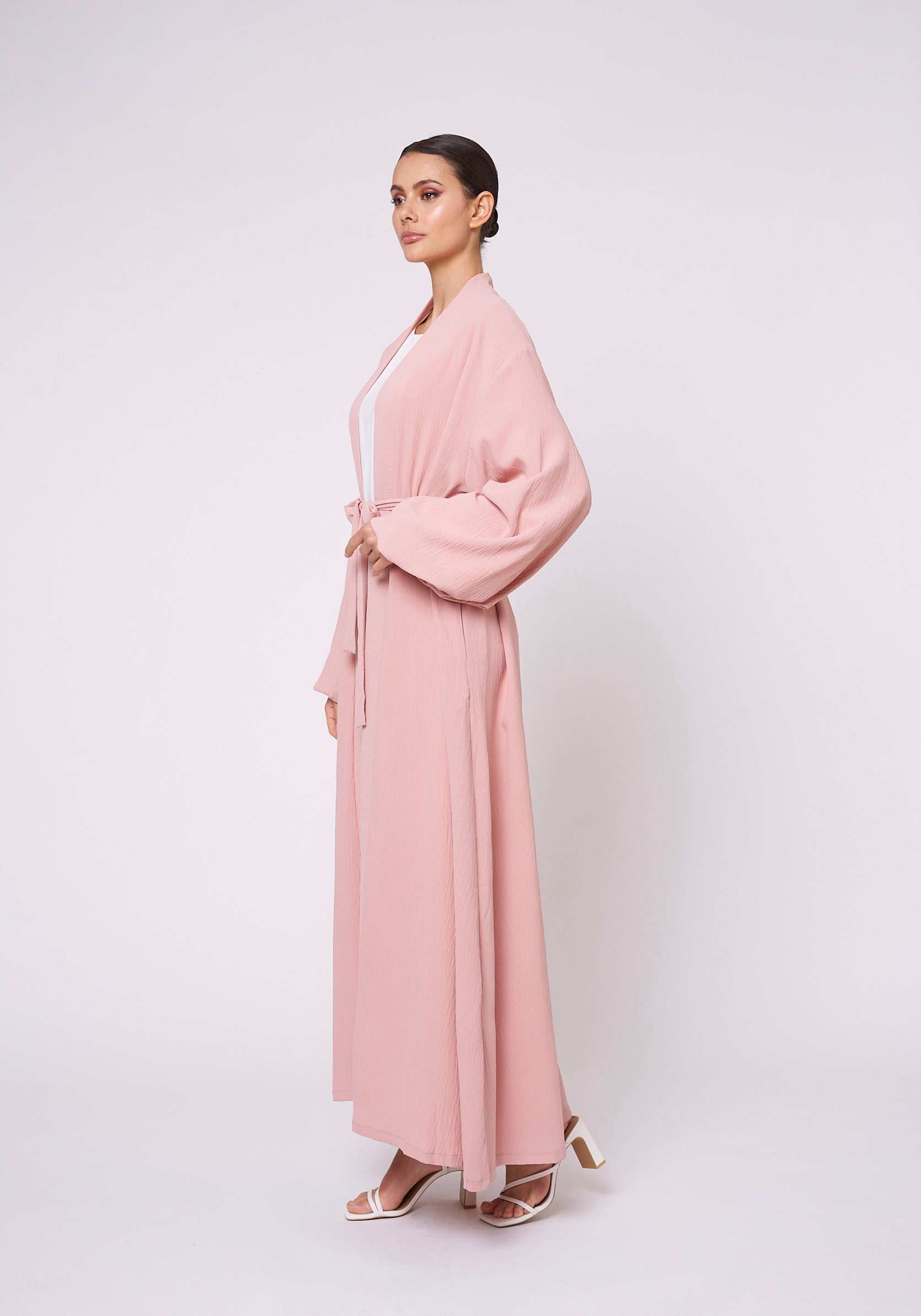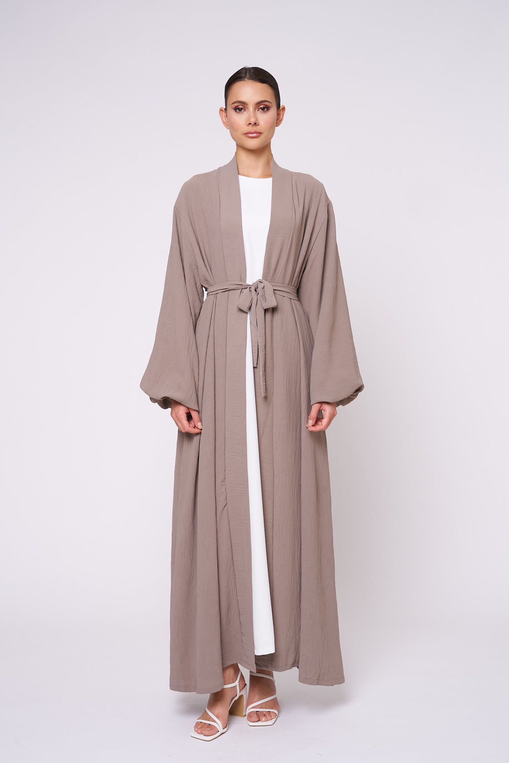 Le Kimono Jaz, une valeur sûre pour vos événements. Confectionné en tissu jazz, il mise sur une coupe droite et des manches bouffantes pour un rendu raffiné. À porter sur une abaya, de jour comme de soirée.