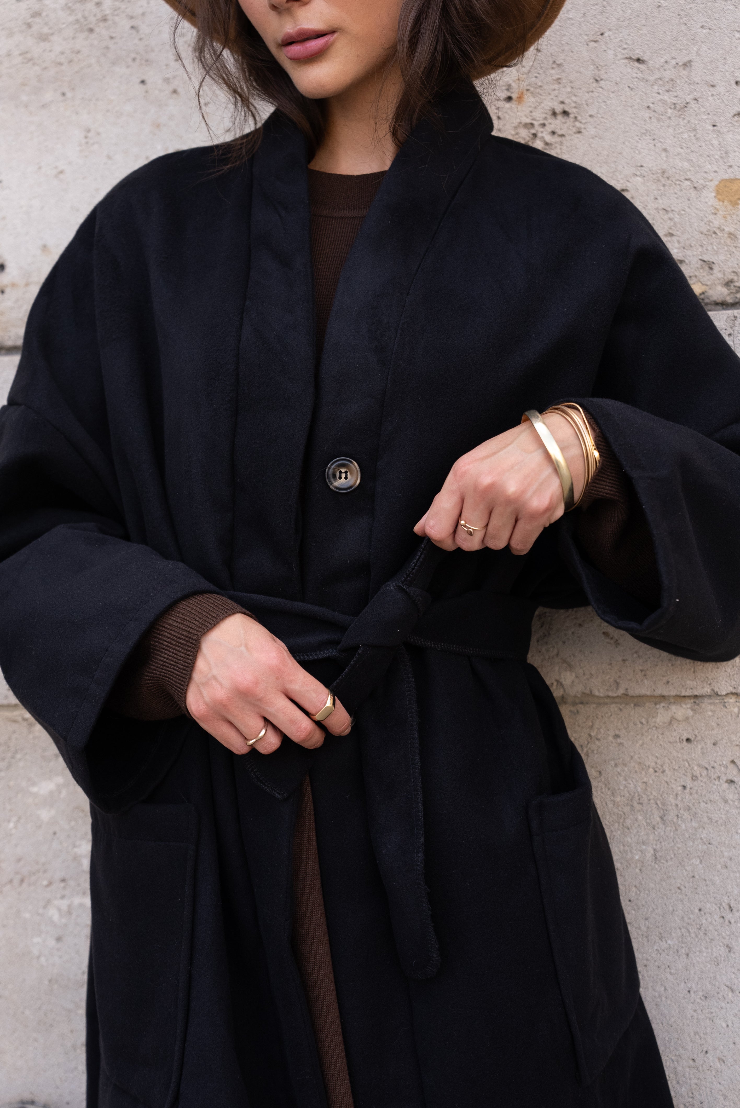 Le manteau Marine est un long manteau à coupe droite, idéal pour se réchauffer avec élégance en hiver comme en mi-saison. Parfait pour vos trajets quotidiens, notamment pour aller au travail, tout en restant stylée et couverte