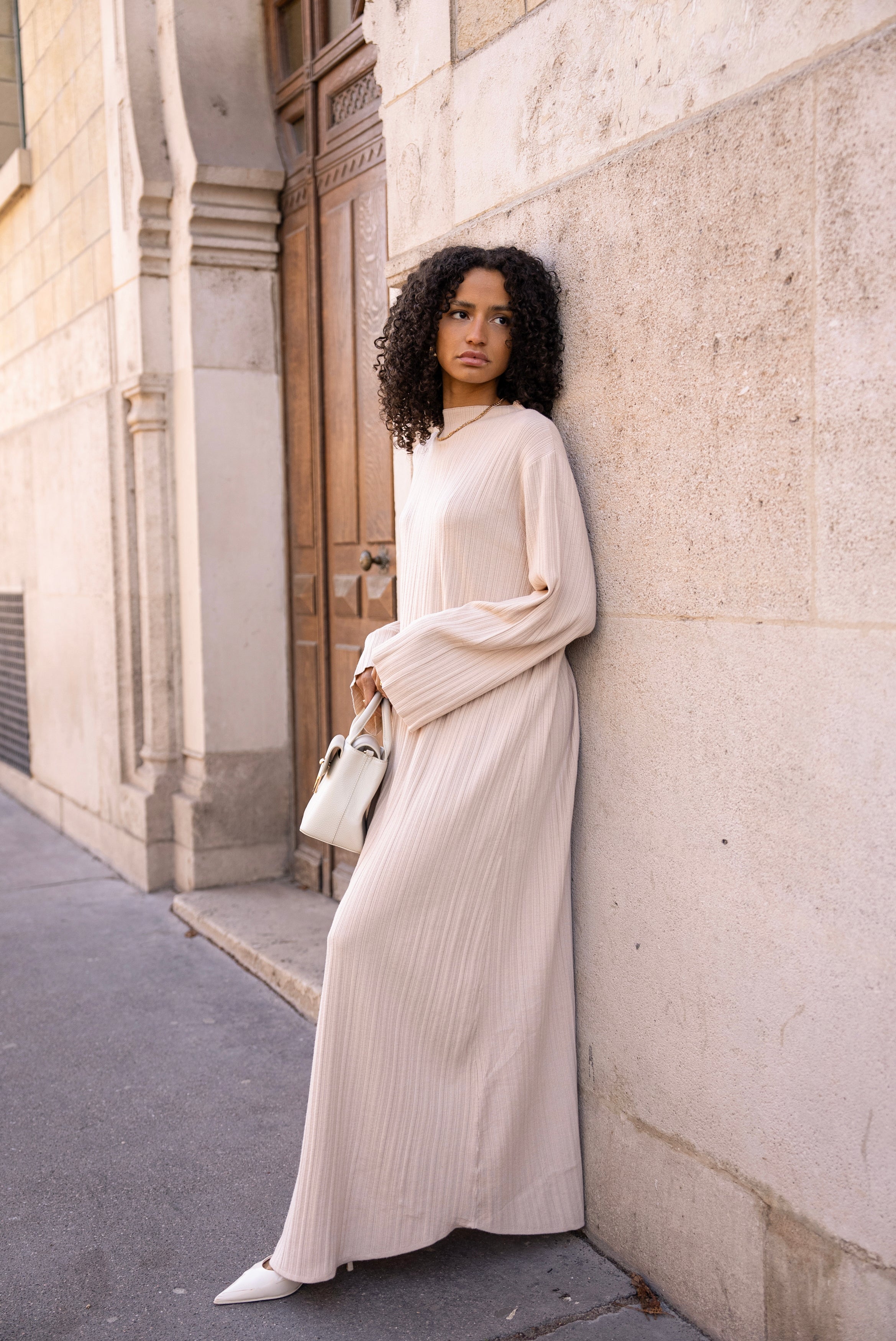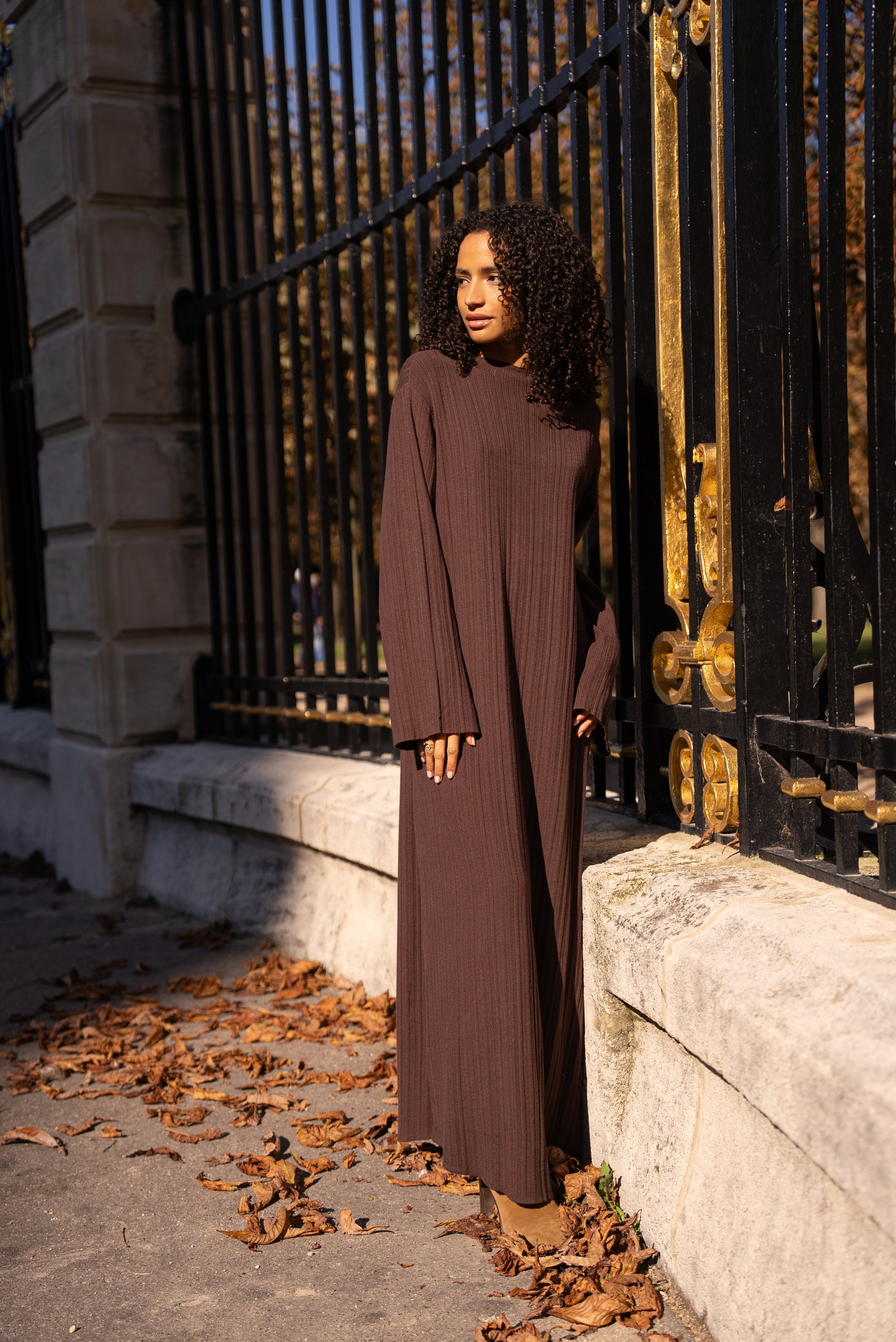 La robe Mélissa peut se porter avec des bottines et un manteau pour un look chic, ou des baskets pour un style plus décontracté.